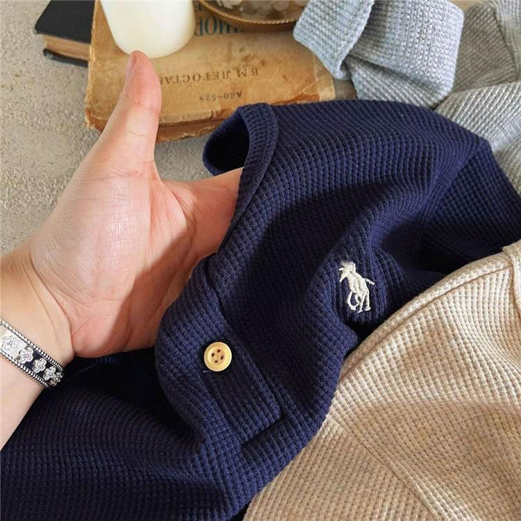 아동용 티셔츠 2025 가을 남녀 아동 자수 와플 긴팔 베이비 한국 스타일 라운드넥 트렌디 브랜드 이너웨어 상의