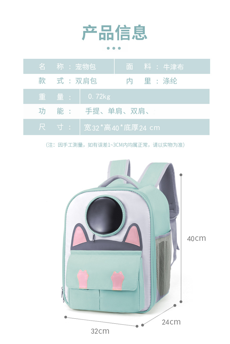 애완 동물 고양이 가방 어깨 공간 가방 새로운 색상 일치하는 애완 동물 가방 큰 공간 편안한 통기성 고양이 배낭 도매스토어 가기