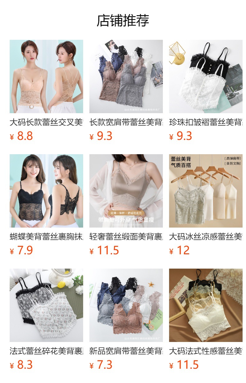 강철 링 바닥이없는 가슴 패드가있는 긴 넓은 어깨 레이스 나비 백 스트랩 조끼 V 넥 백리스 포장 가슴 튜브 탑스토어 가기