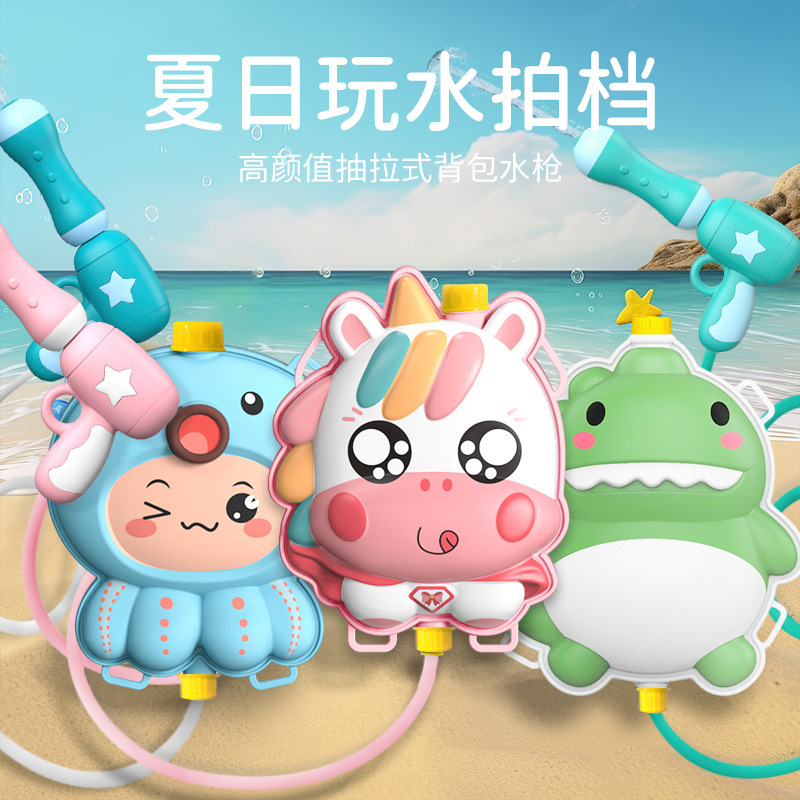 夏季儿童卡通背包水枪抽拉式呲水喷水枪户外沙滩泳池戏水玩具批发