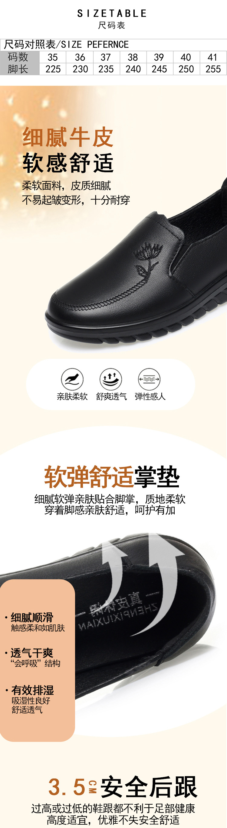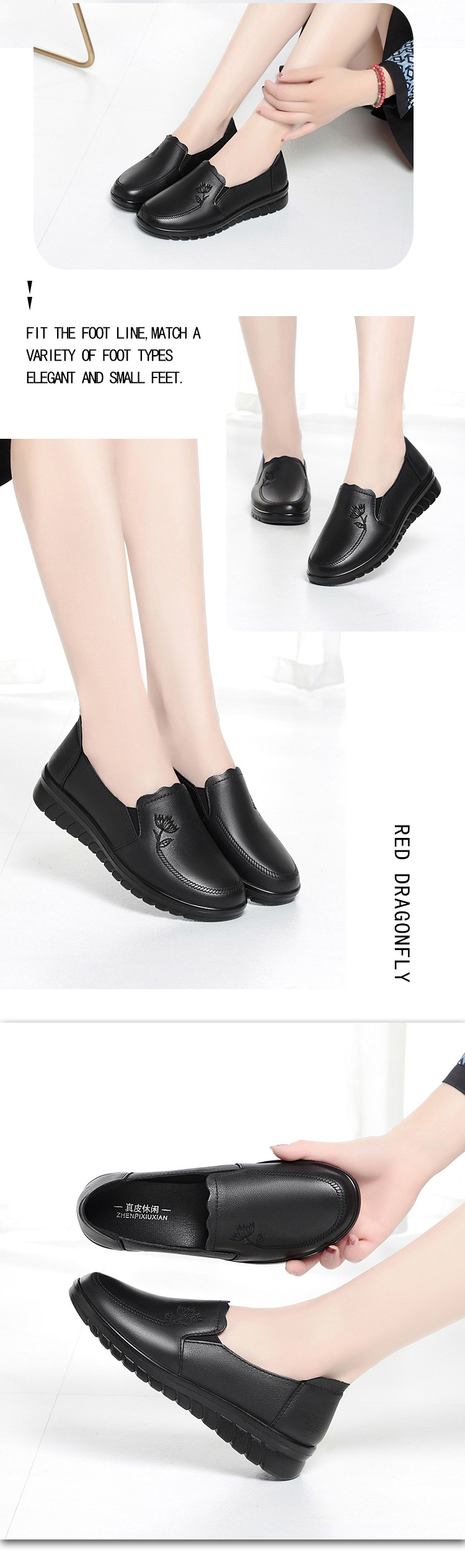 24 개의 새로운 여성 싱글 가죽 신발 로우 힐 캐주얼 신발 부드러운 바닥 부드러운 표면 임산부 운전 신발 ZYN92263 플러스 사이즈 41스토어 가기