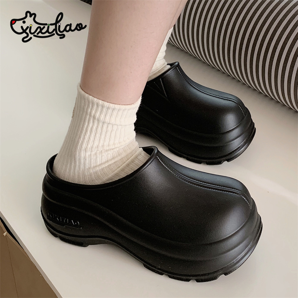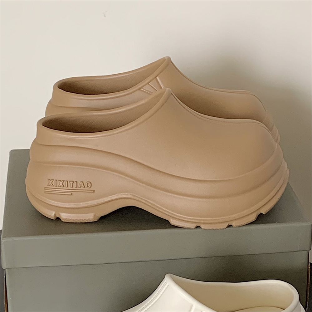 새로운 순수한 색상 간단한 한국 스타일 패션 여름 소녀 에바 느낌 야외 두꺼운 바닥 캐주얼 편안한 닫힌 발가락 슬리퍼스토어 가기