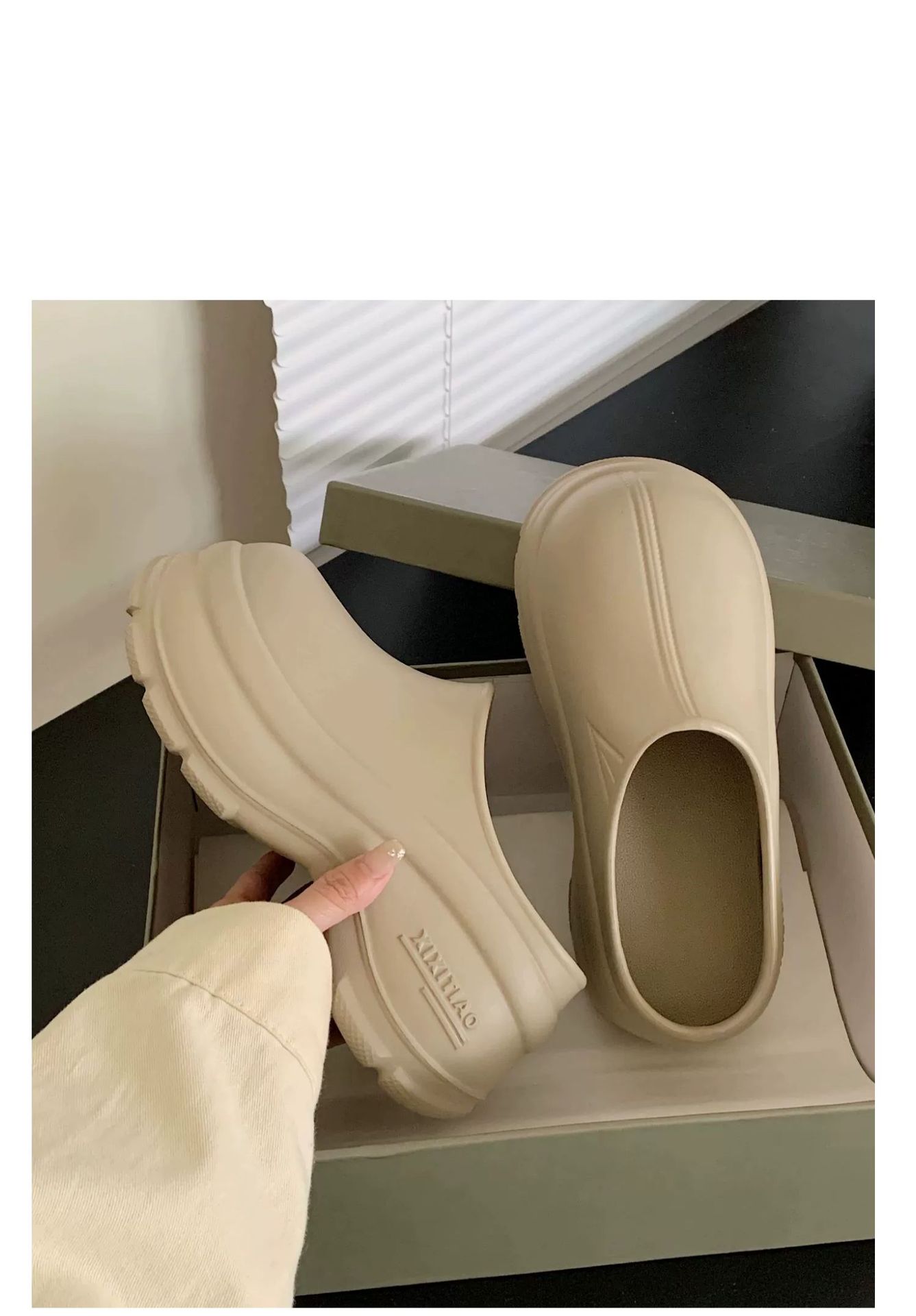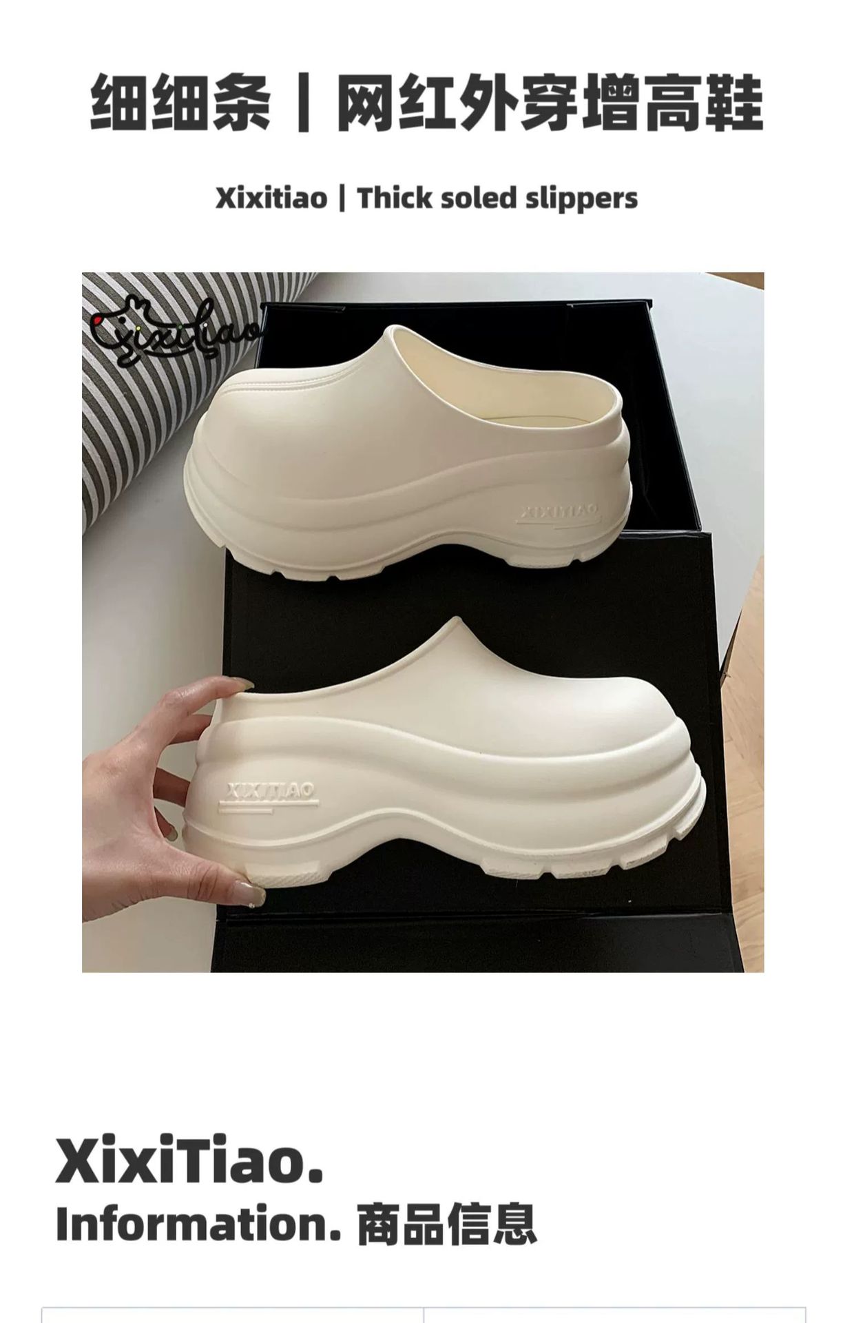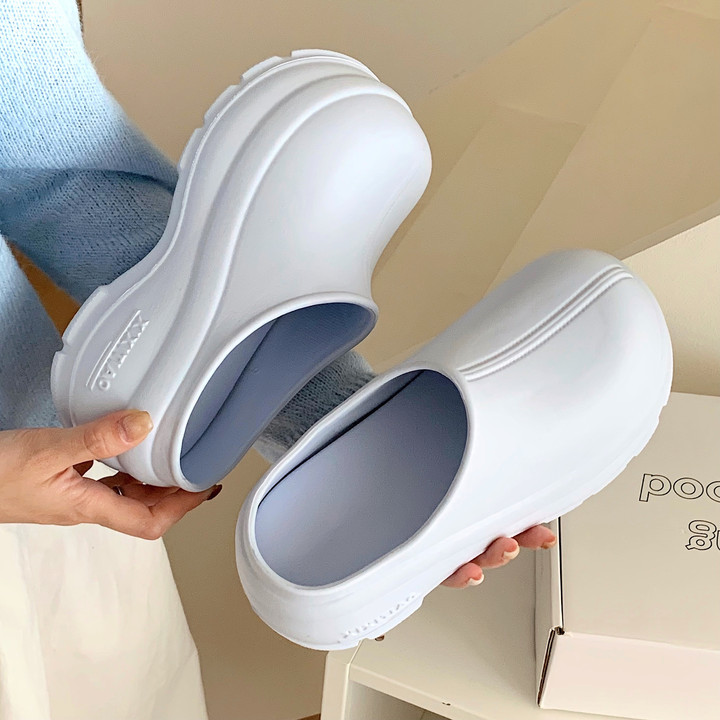 새로운 순수한 색상 간단한 한국 스타일 패션 여름 소녀 에바 느낌 야외 두꺼운 바닥 캐주얼 편안한 닫힌 발가락 슬리퍼