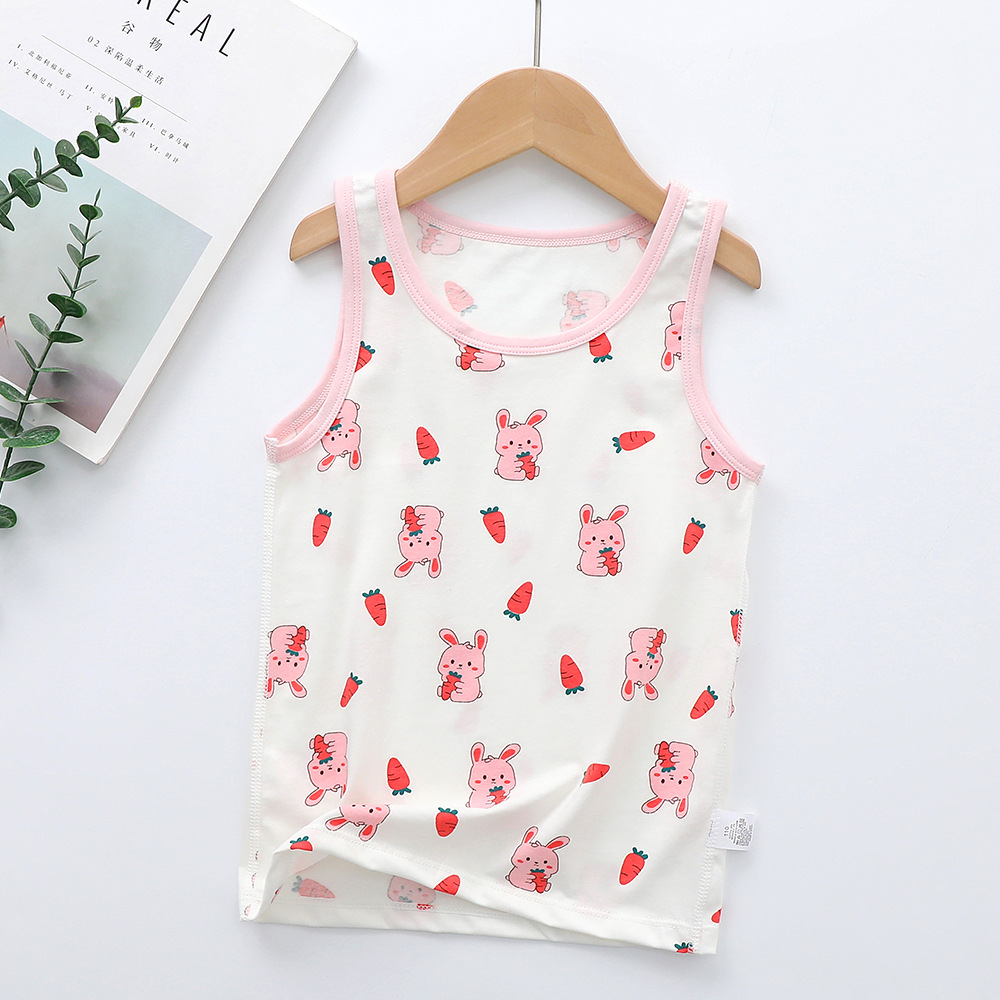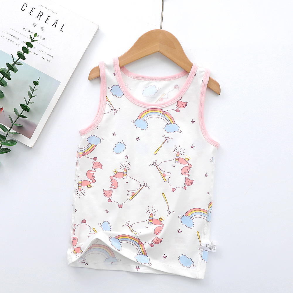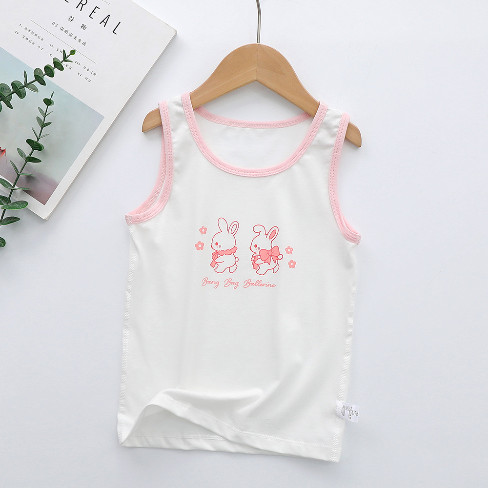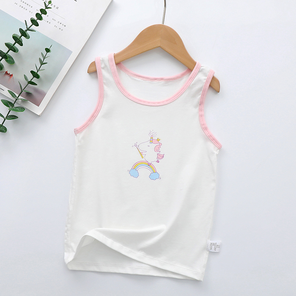 새로운 순수한면 만화 인쇄 소녀 조끼 여름 겉옷 조끼 가을 및 겨울 밑바닥없는 라운드 칼라 셔츠