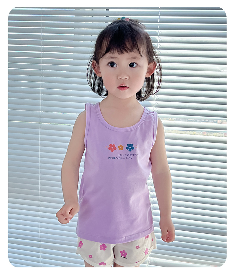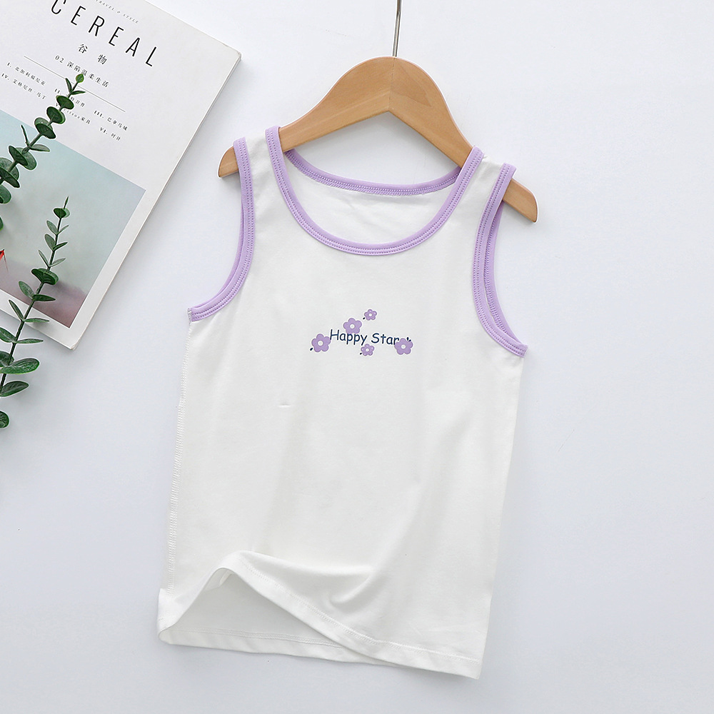 새로운 순수한면 만화 인쇄 소녀 조끼 여름 겉옷 조끼 가을 및 겨울 밑바닥없는 라운드 칼라 셔츠스토어 가기