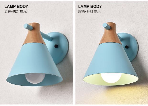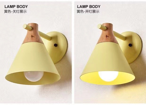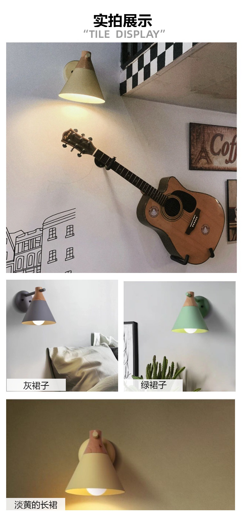 북유럽 단단한 나무 침실 벽 램프 현대 미니멀 마카롱 배경 벽 거실 창조적 인 통로 침대 옆 치마 벽 램프스토어 가기
