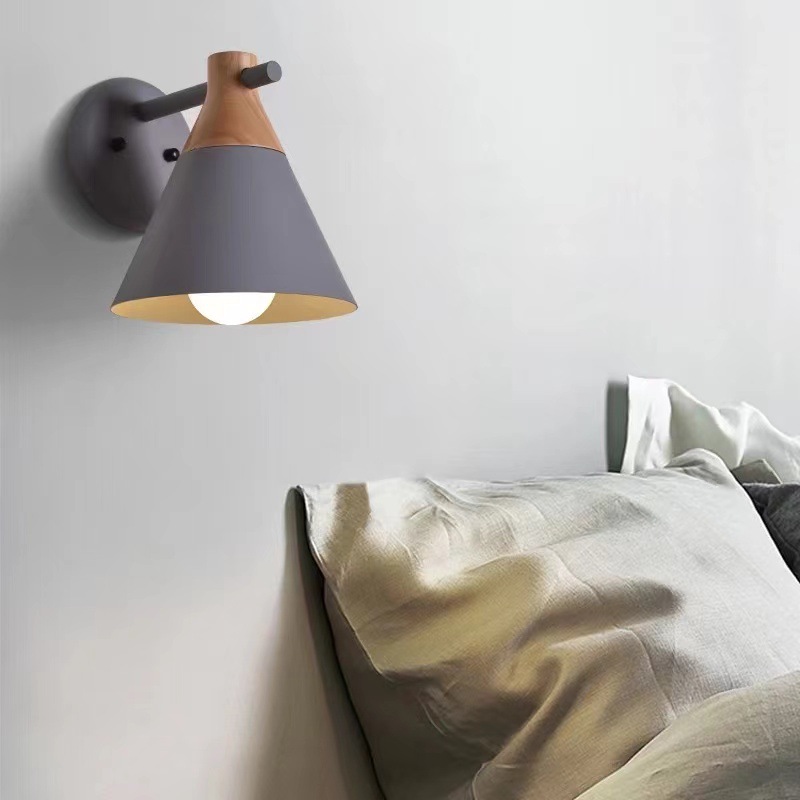 북유럽 단단한 나무 침실 벽 램프 현대 미니멀 마카롱 배경 벽 거실 창조적 인 통로 침대 옆 치마 벽 램프