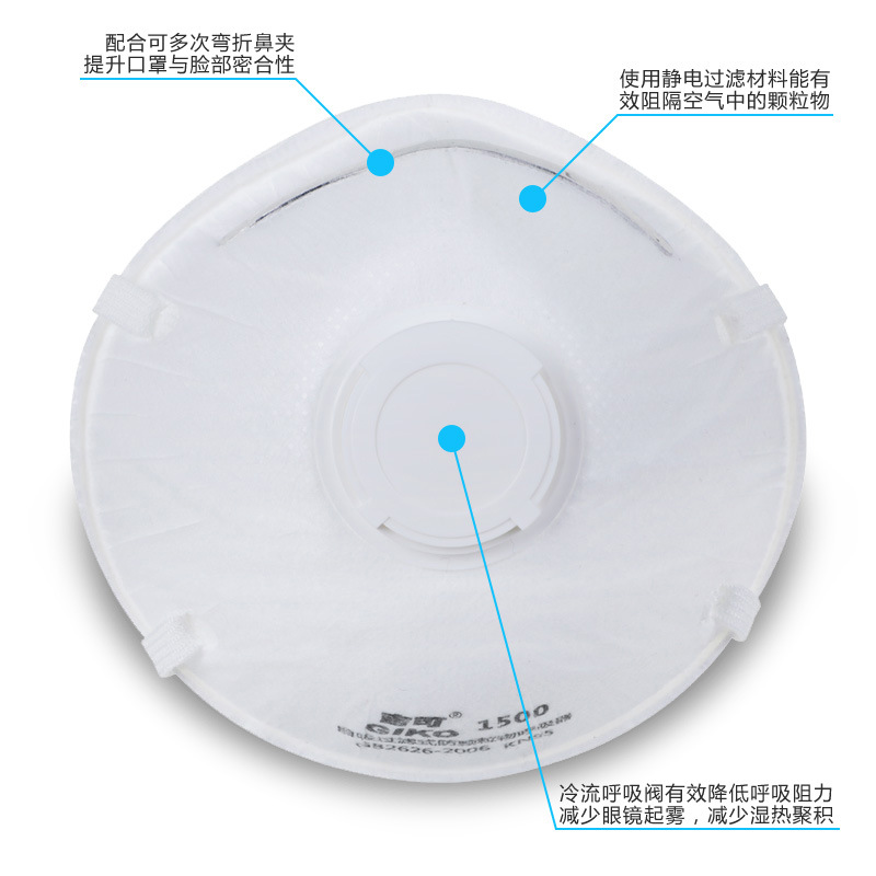 GIKO Jike KN95 마스크 1500 호흡 밸브 연마 광산 헤드 장착이있는 반 산업 먼지 입자