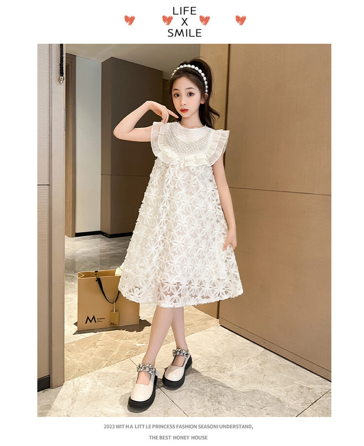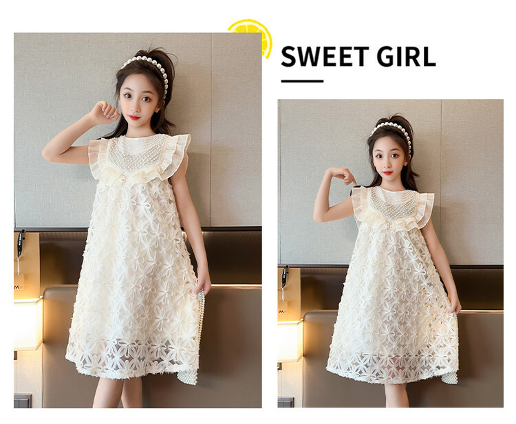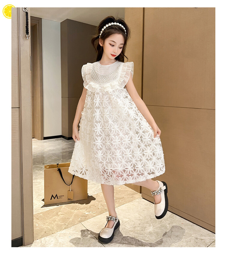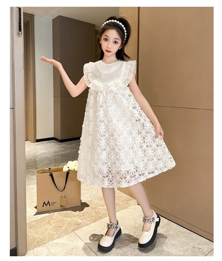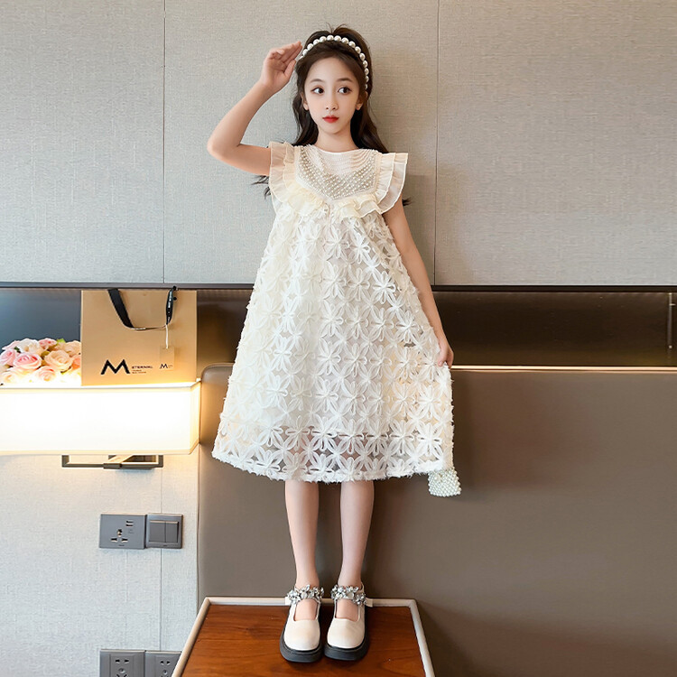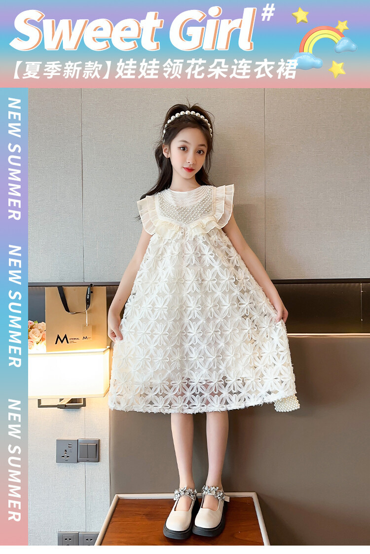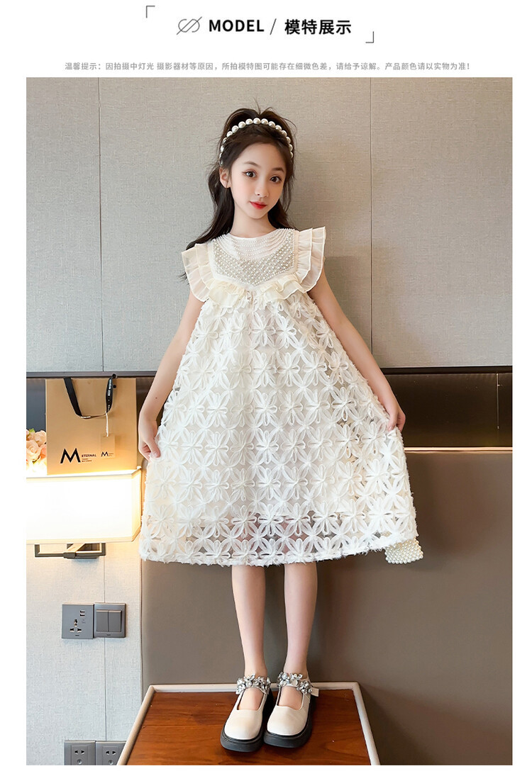 소녀 공주 원피스 여름 2024 어린이 프랑스 스타일 원피스 소녀 진주 원피스 레이스 민소매 조끼 원피스 아동복스토어 가기