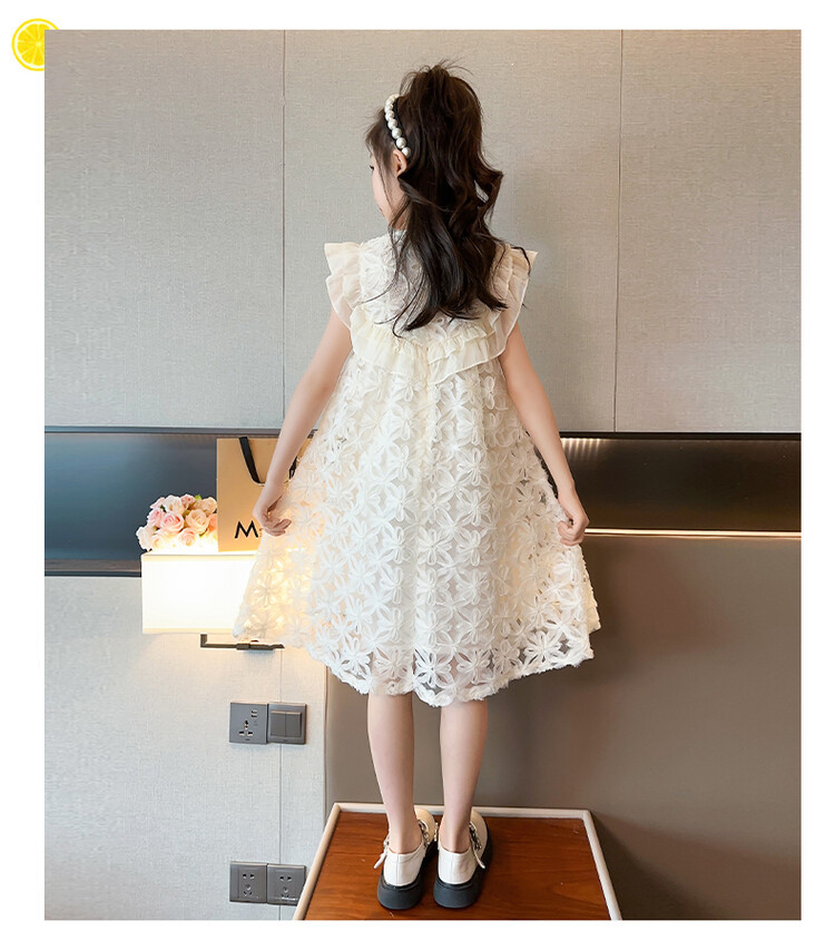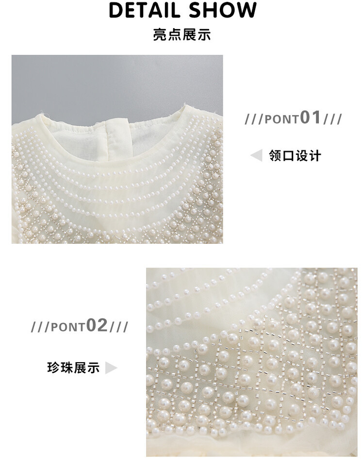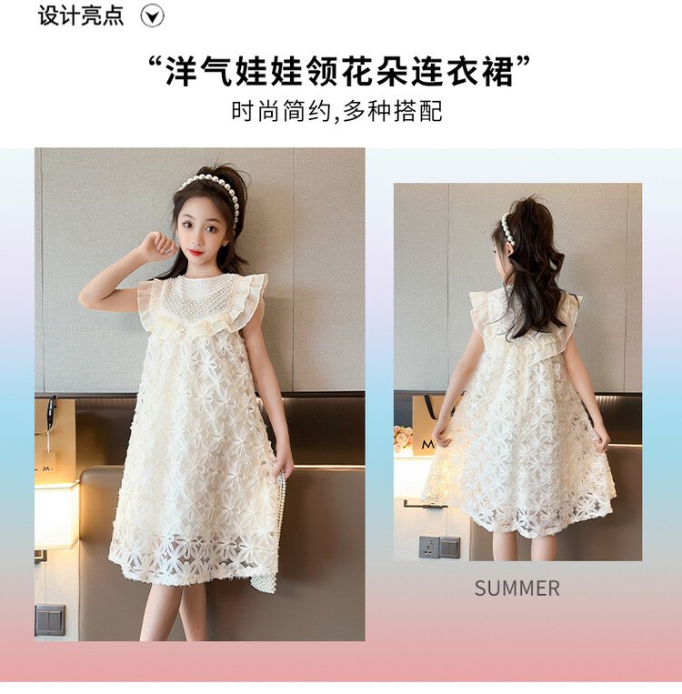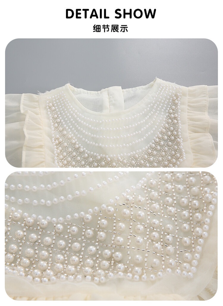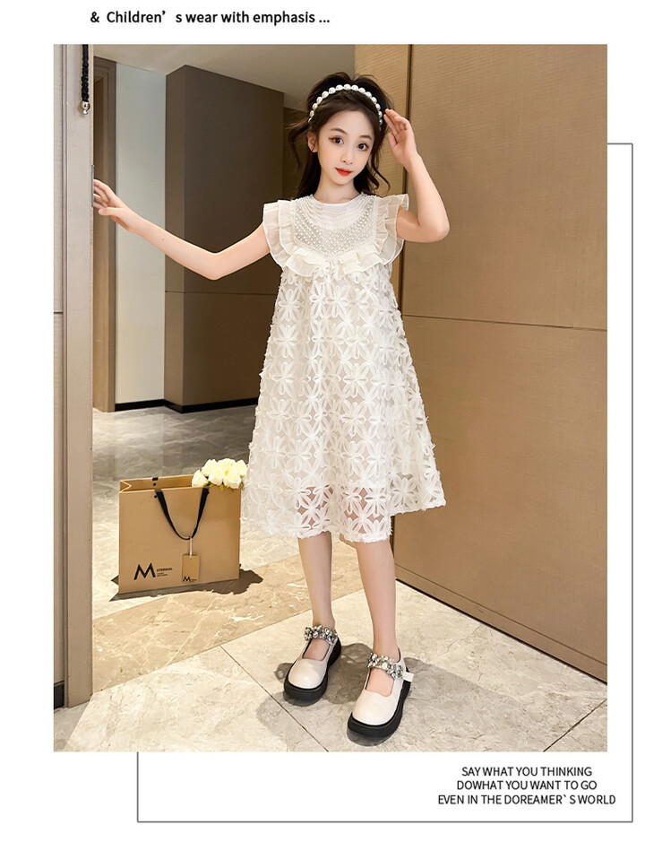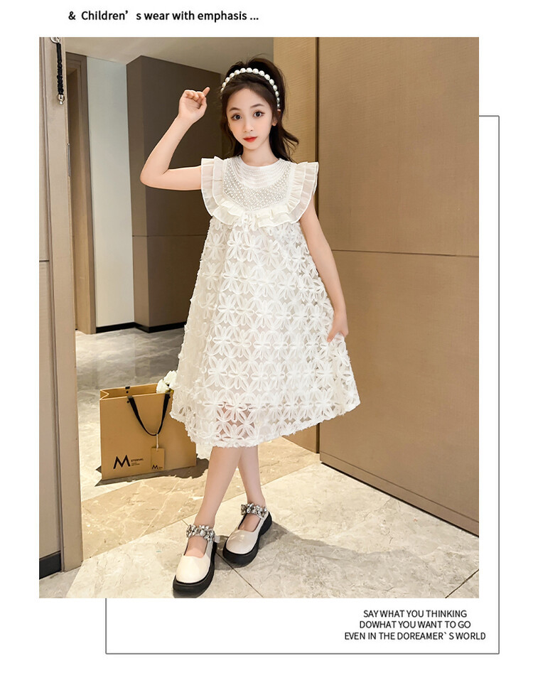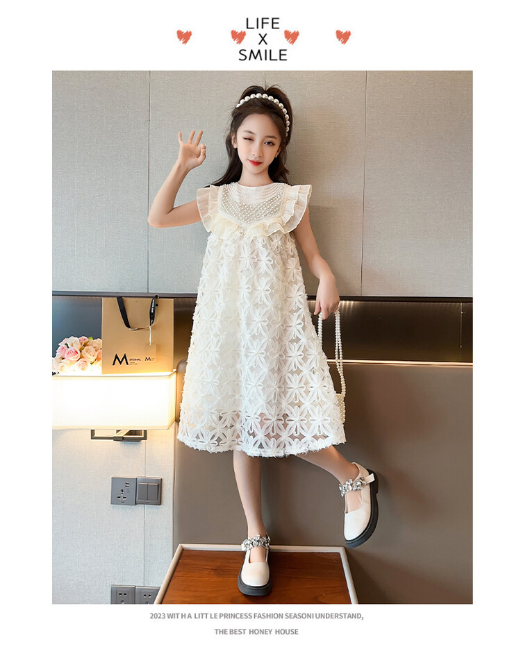 소녀 공주 원피스 여름 2024 어린이 프랑스 스타일 원피스 소녀 진주 원피스 레이스 민소매 조끼 원피스 아동복스토어 가기