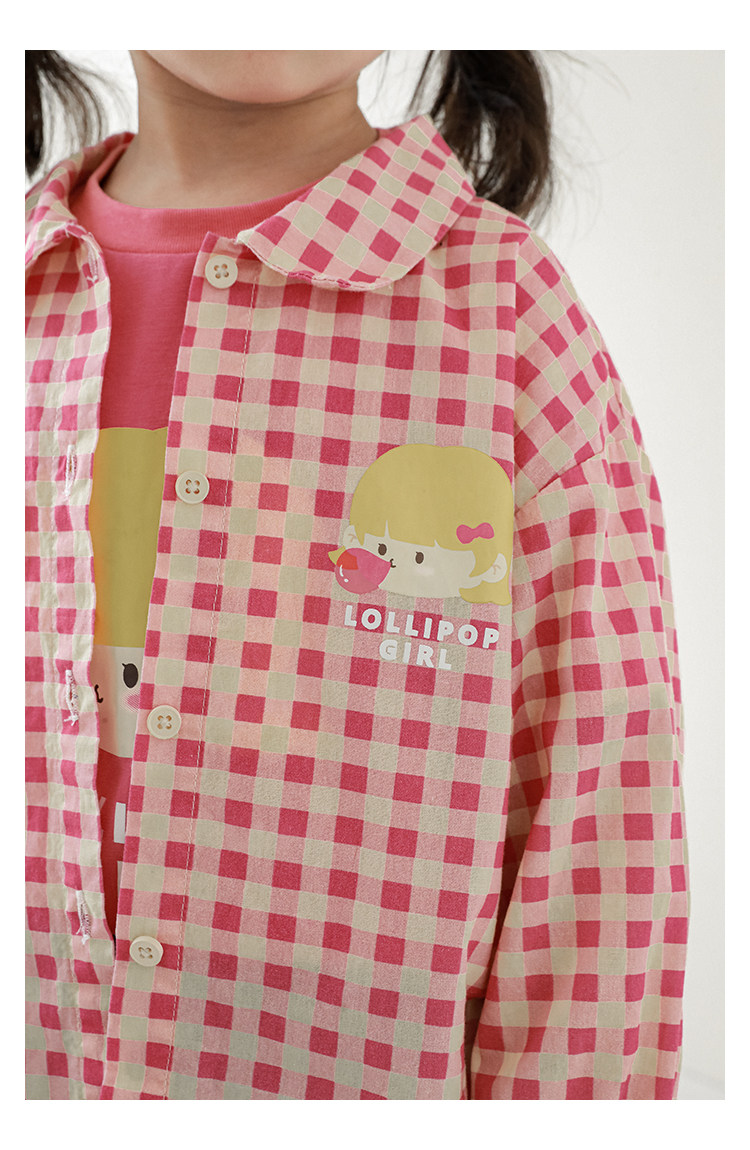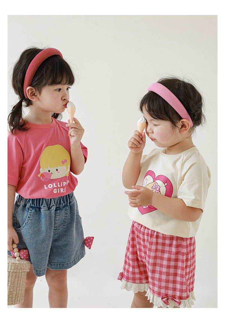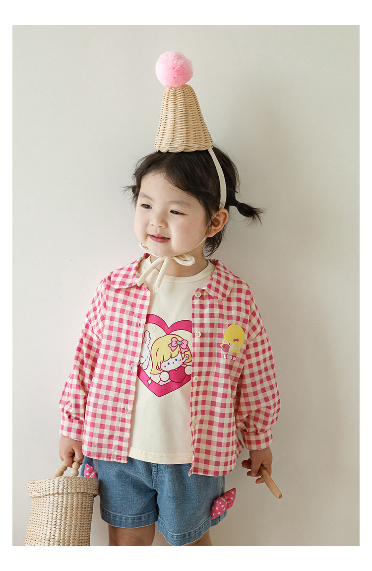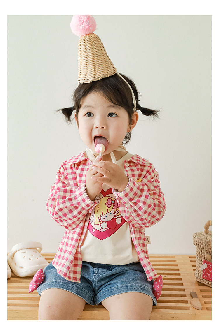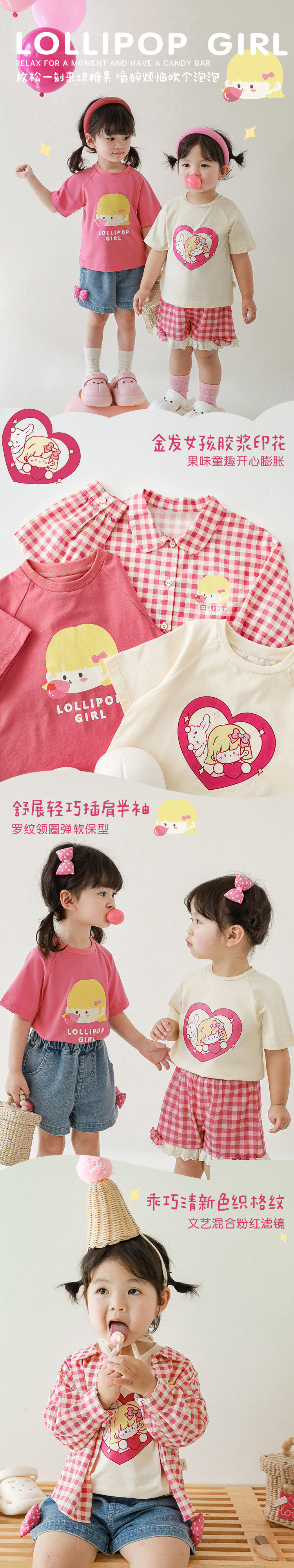 Wulibuyi 여자 격자 무늬 셔츠 티셔츠 여름 새로운 만화 사랑 반팔 티셔츠 베이비 탑