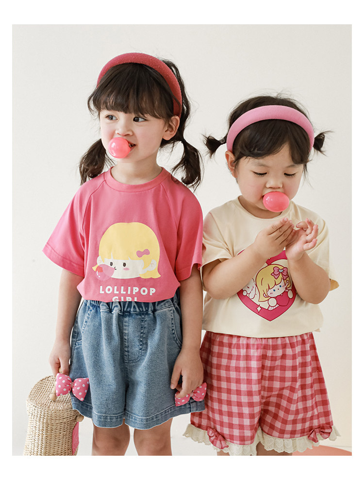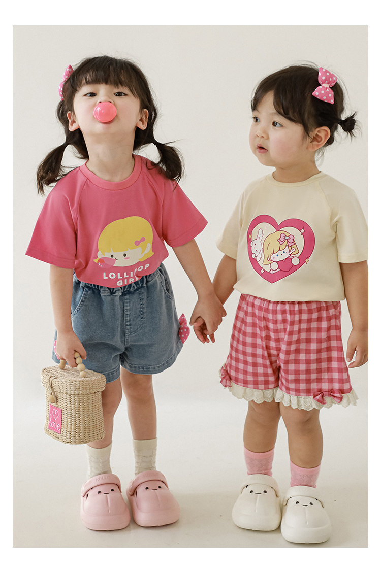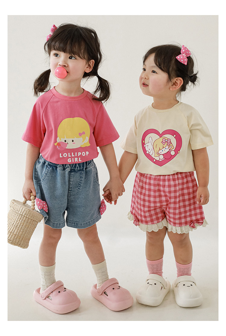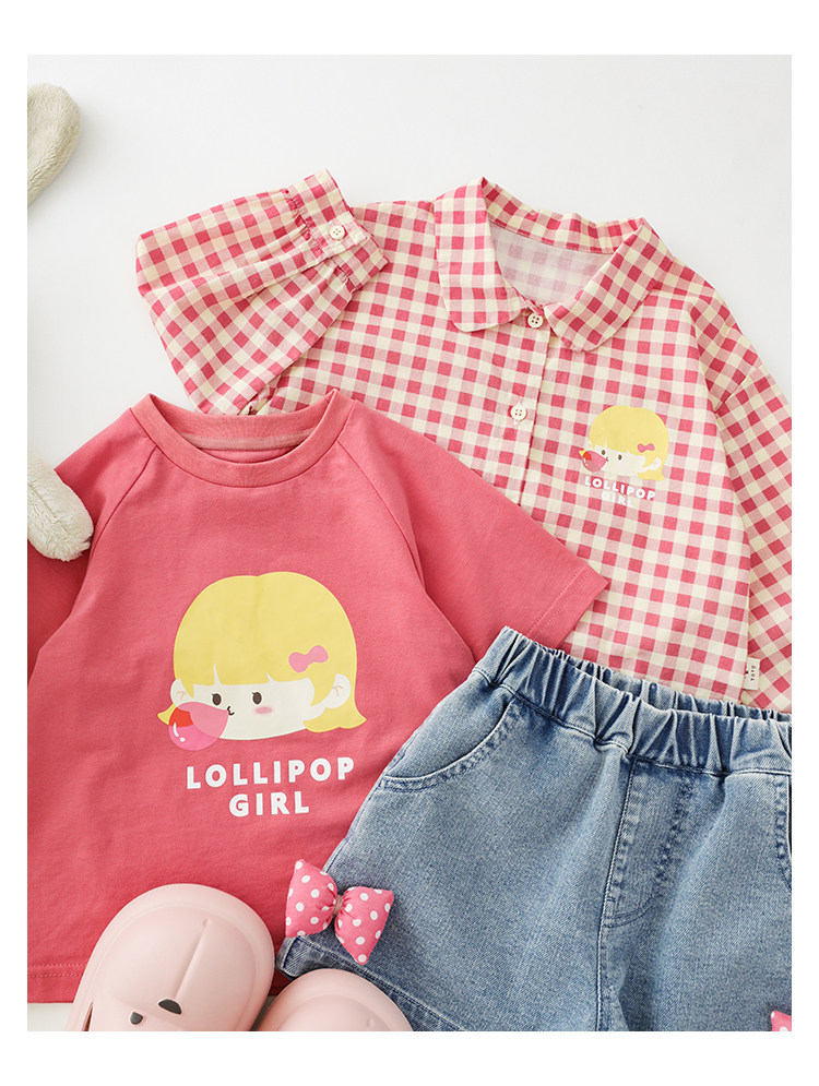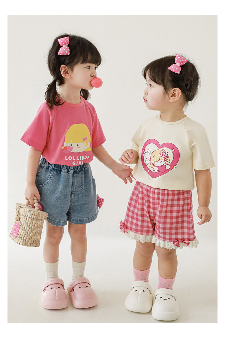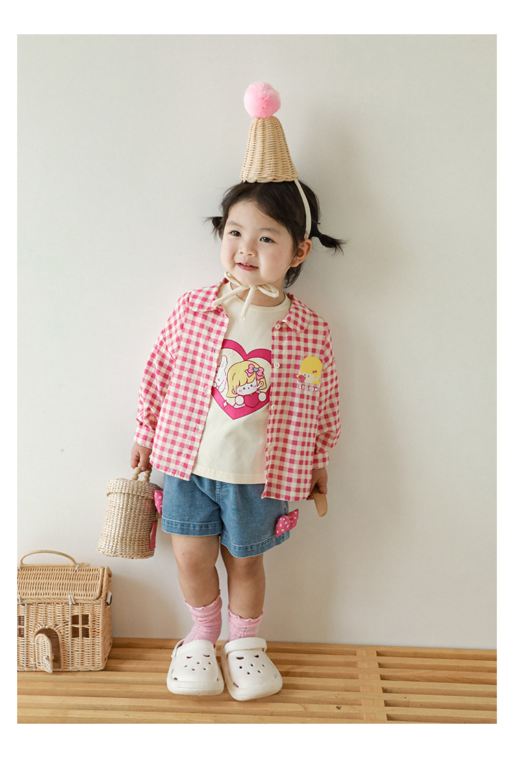 Wulibuyi 여자 격자 무늬 셔츠 티셔츠 여름 새로운 만화 사랑 반팔 티셔츠 베이비 탑스토어 가기