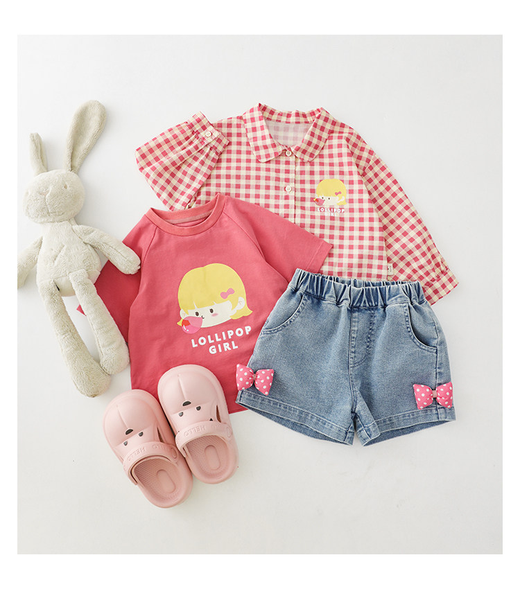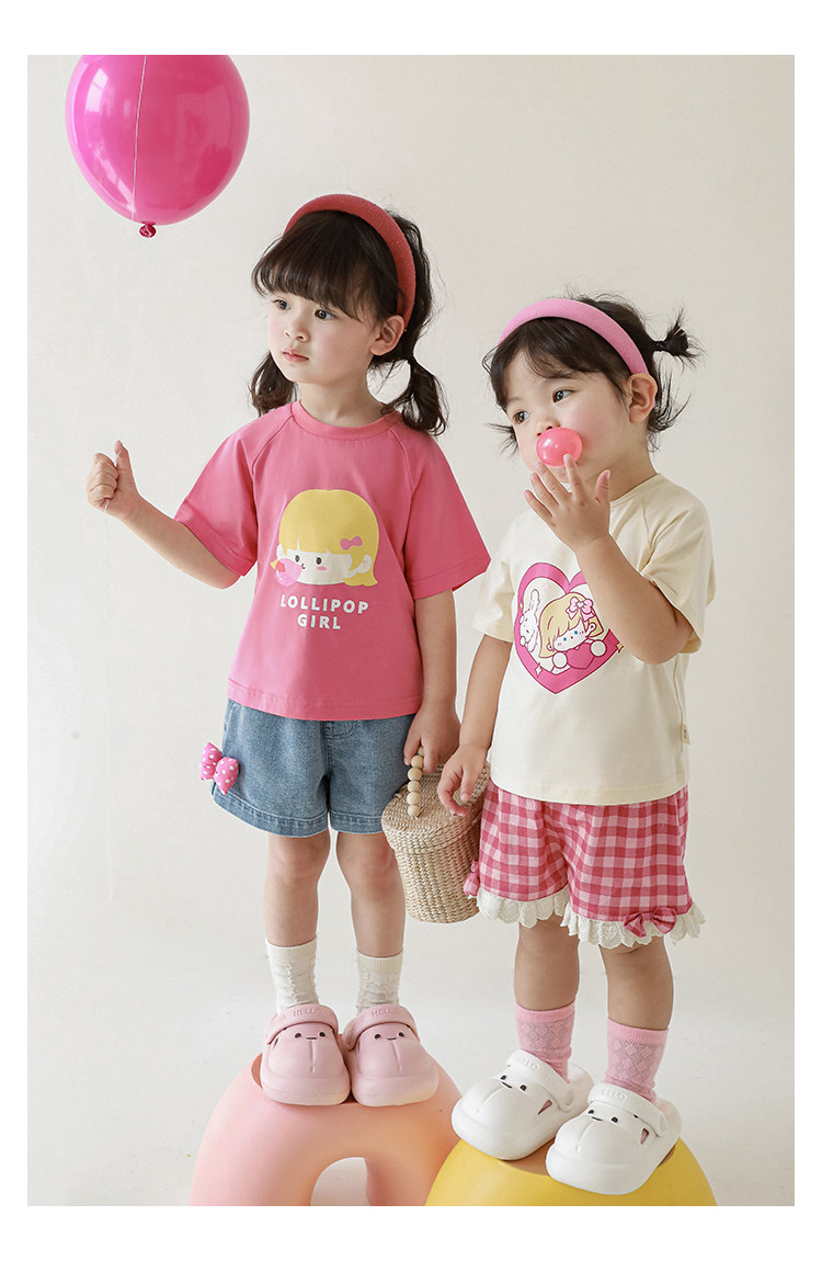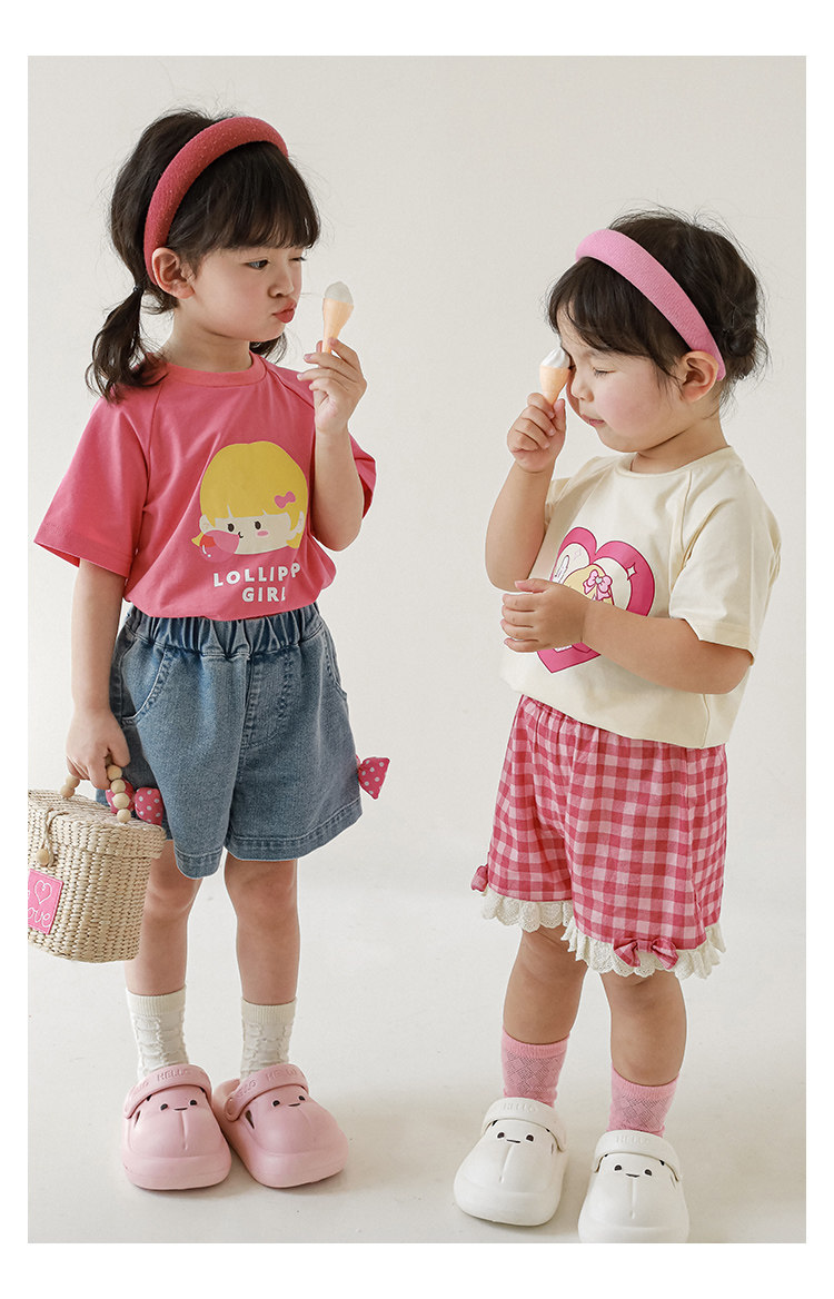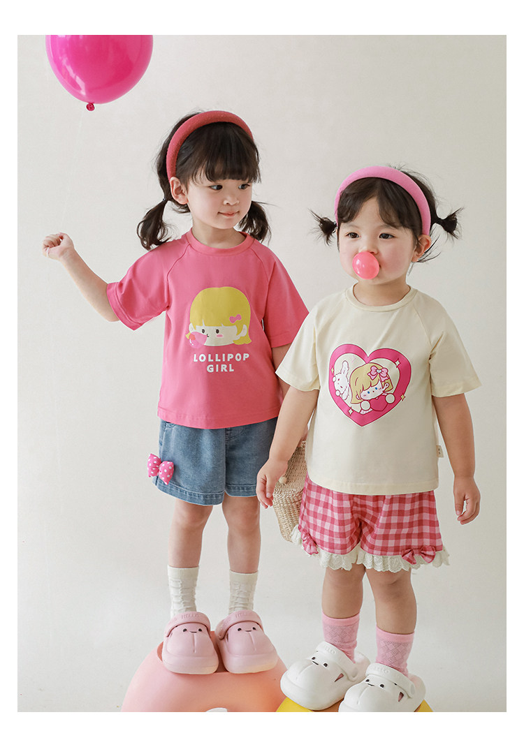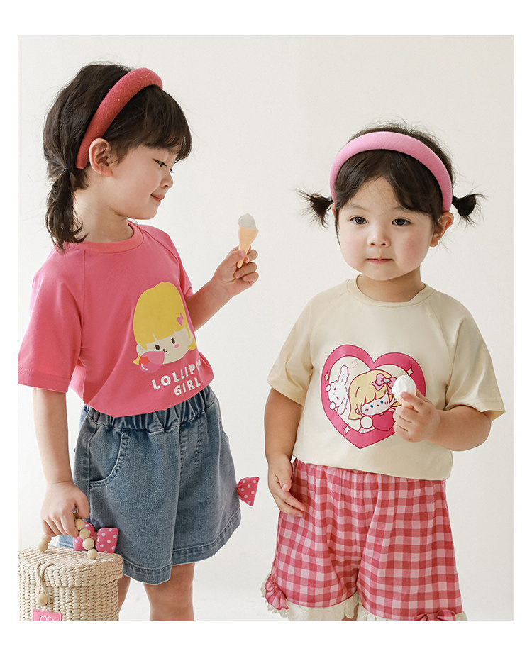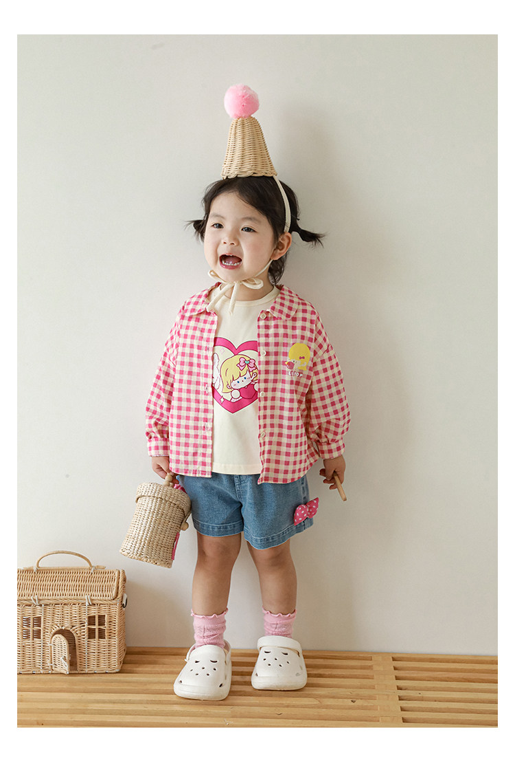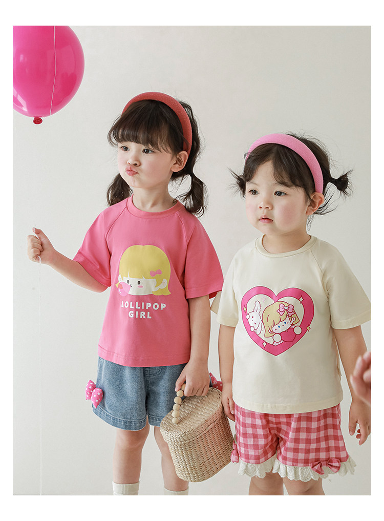 Wulibuyi 여자 격자 무늬 셔츠 티셔츠 여름 새로운 만화 사랑 반팔 티셔츠 베이비 탑스토어 가기
