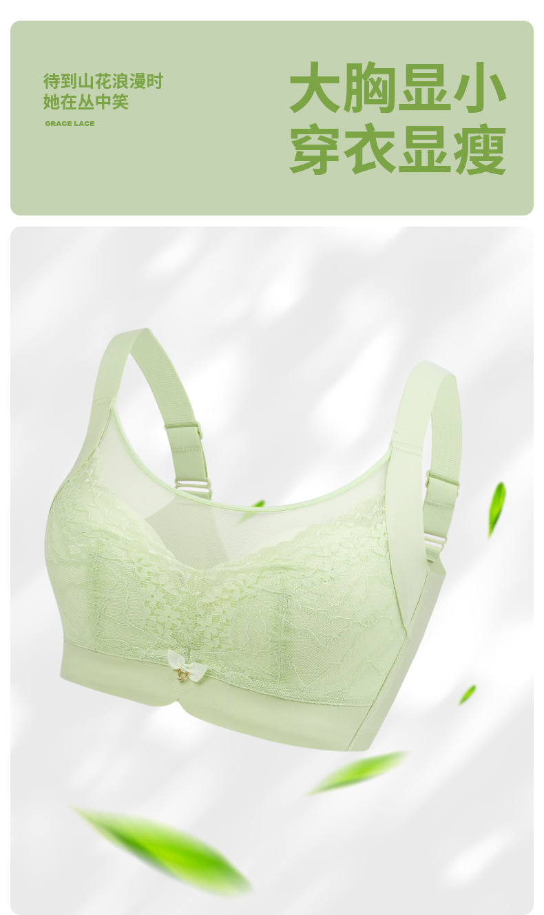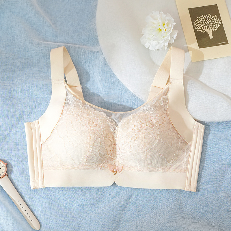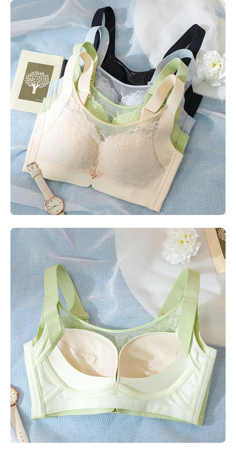 1072 레이스 넓은 어깨 끈 조정 가능한 무선 큰 가슴 슬리밍 속옷 얇은 푸시 업 사이드 컬렉션 처짐 브래지어