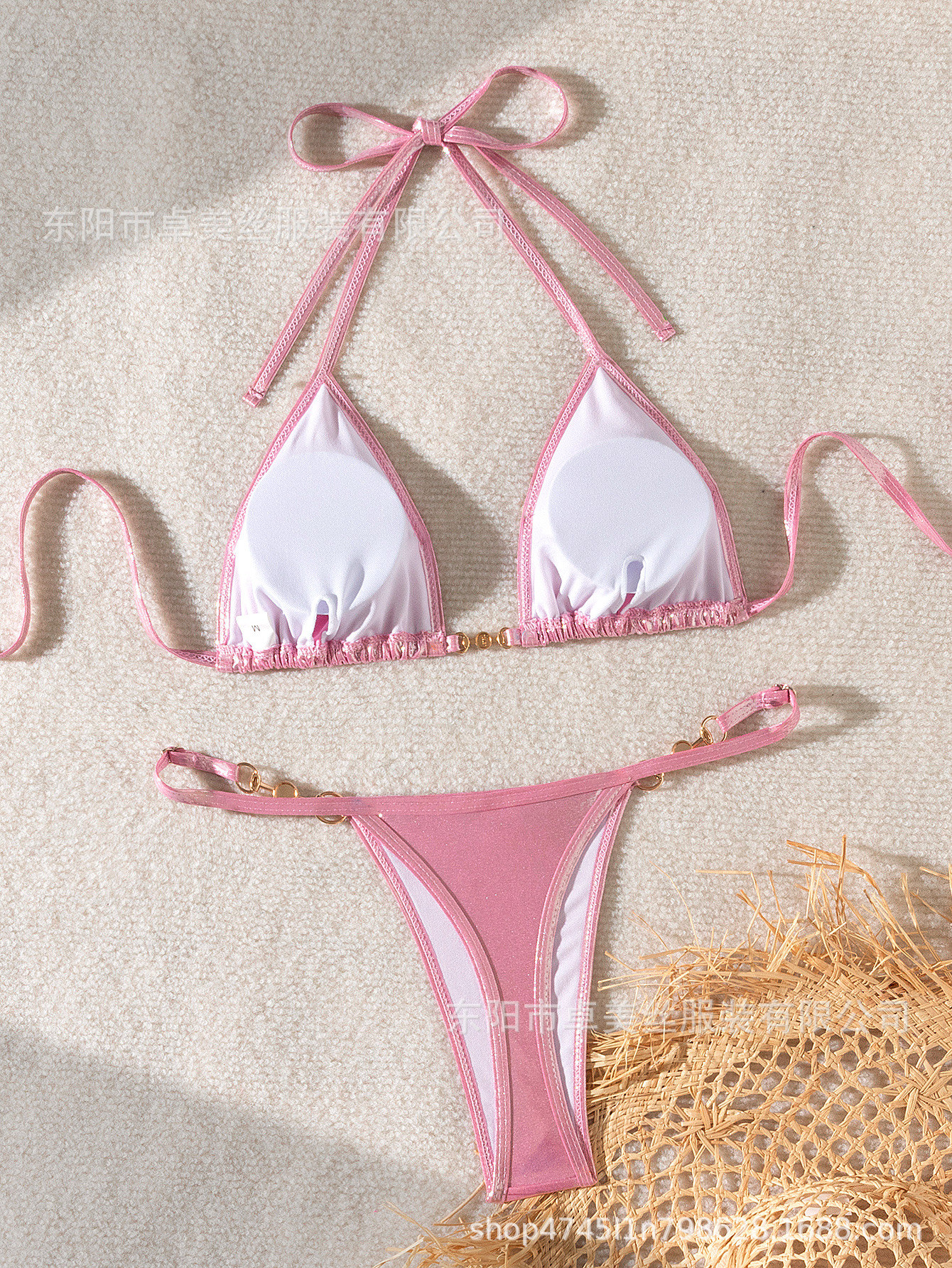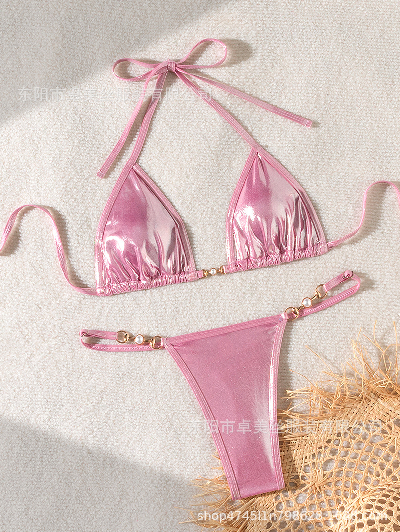 2024 유럽과 미국의 새로운 섹시한 밝은 진주 T 자형 비키니 수영복 비키니 국경 대외 무역스토어 가기