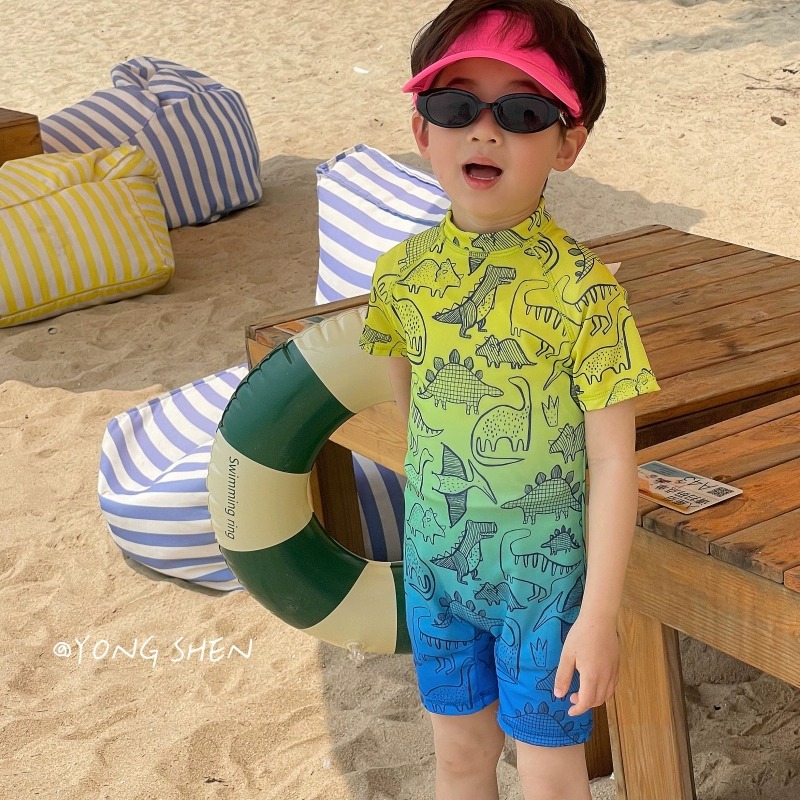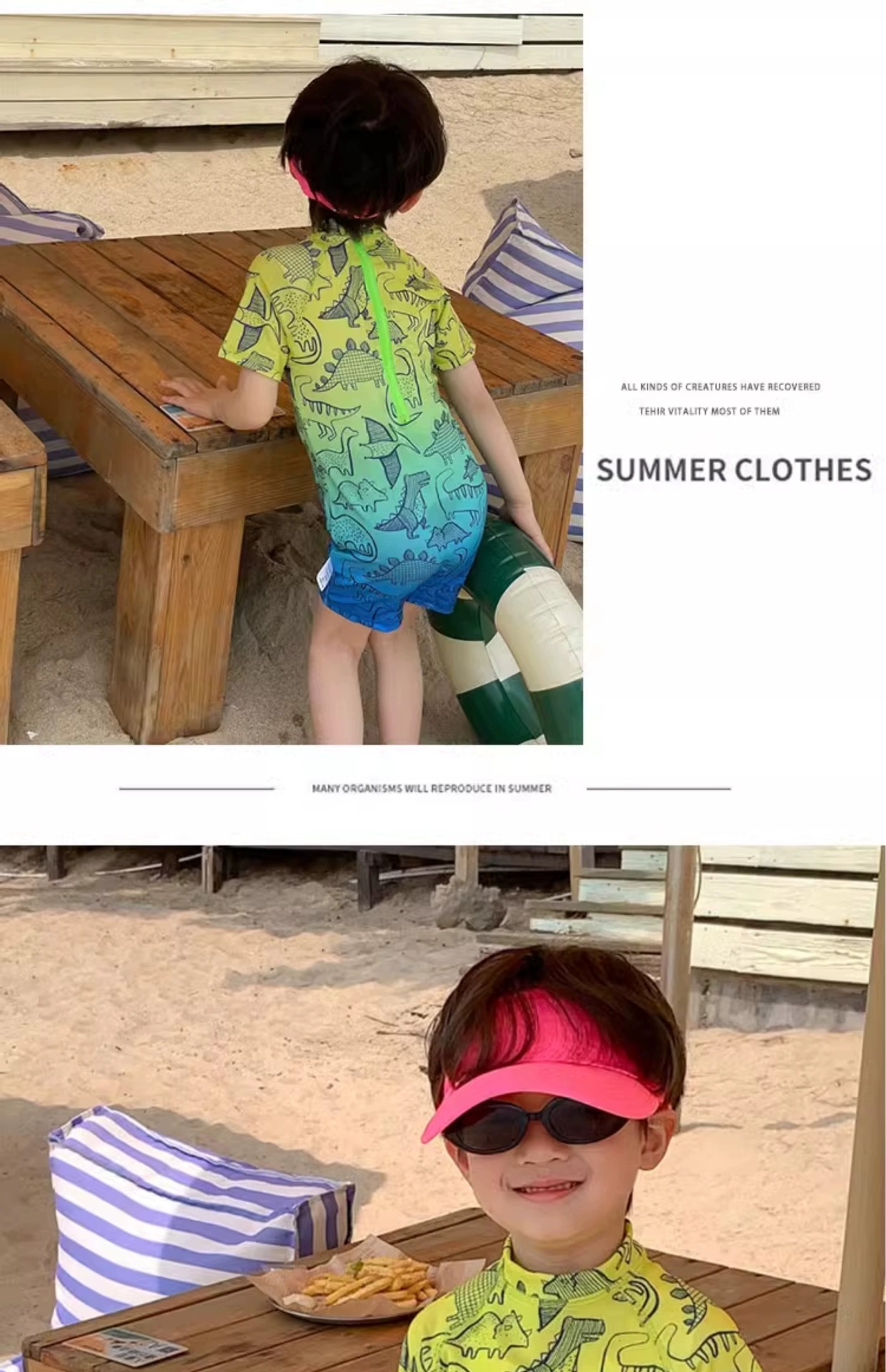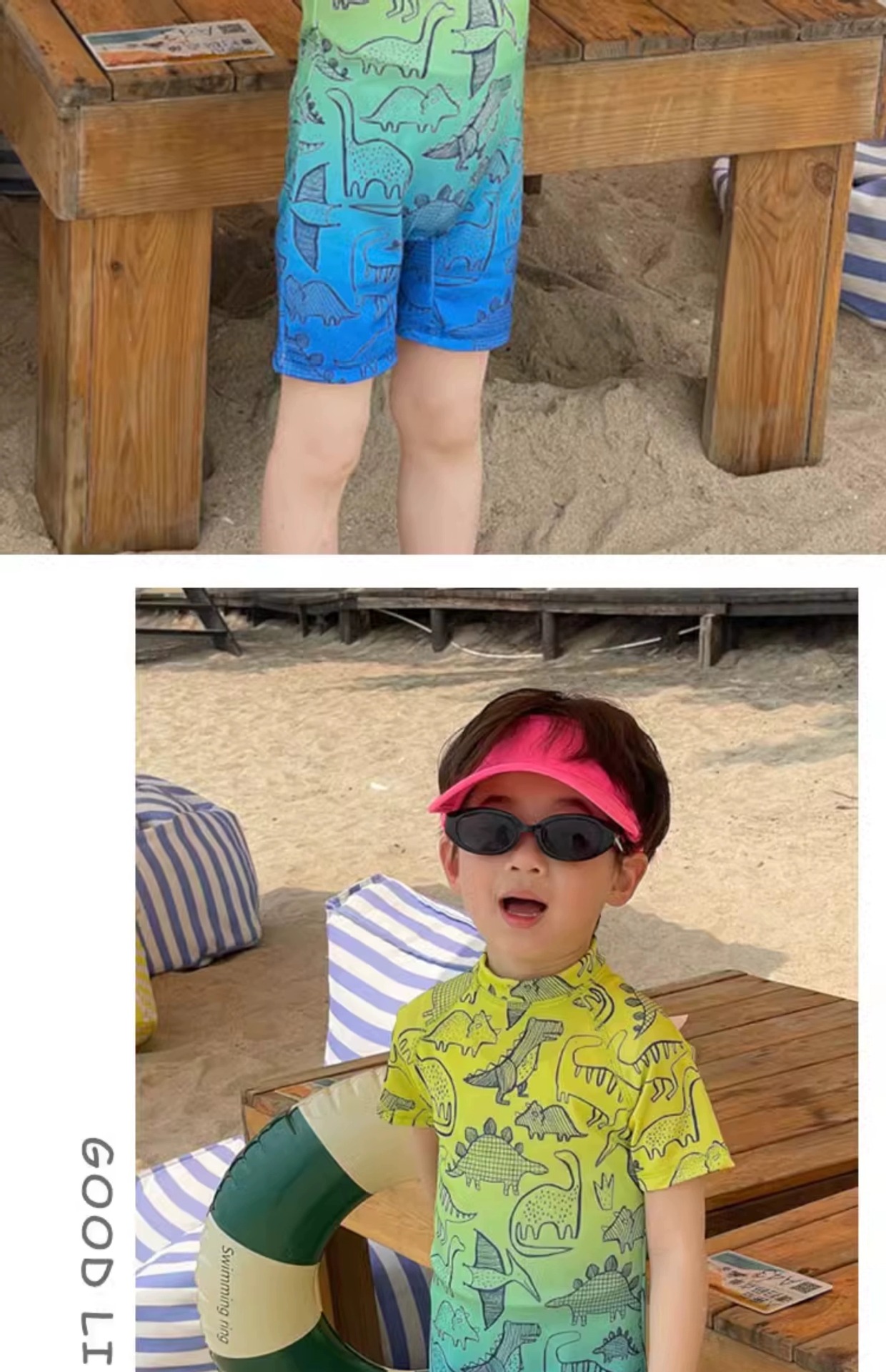 어린이 수영복 원피스 소년 공룡 여름 아기 휴가 빠른 건조 새로운 아기 귀여운 태양 보호 수영복