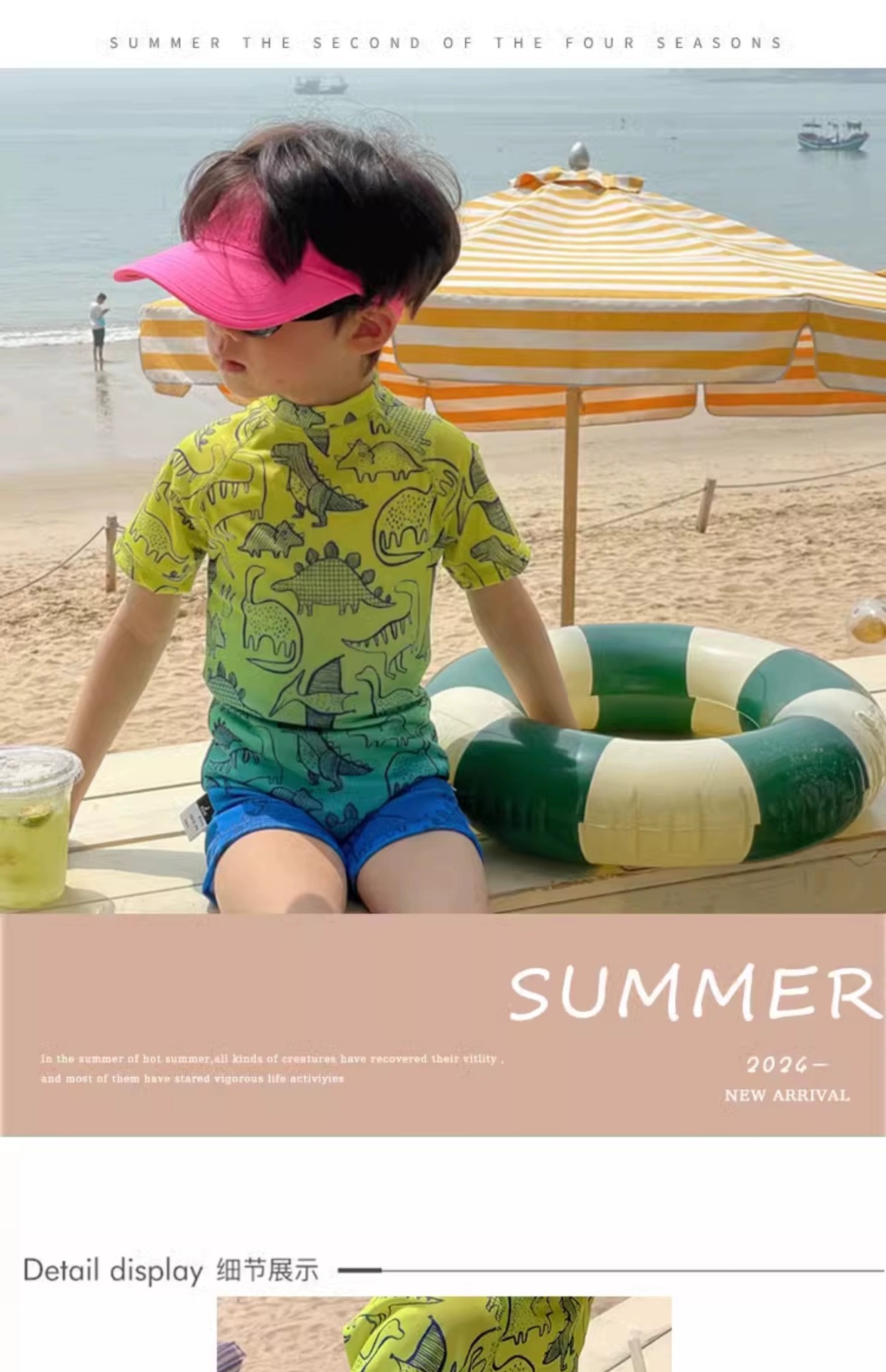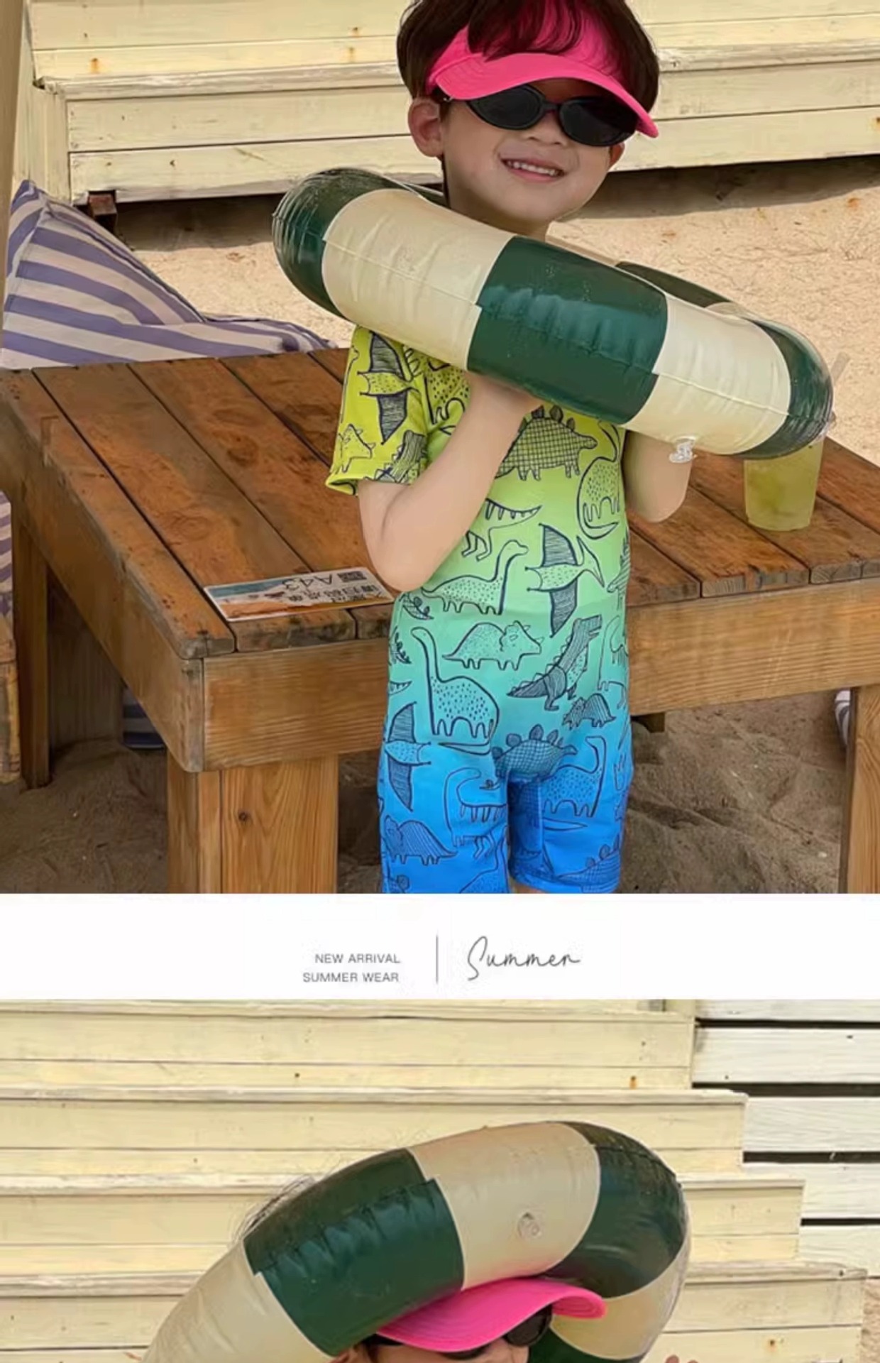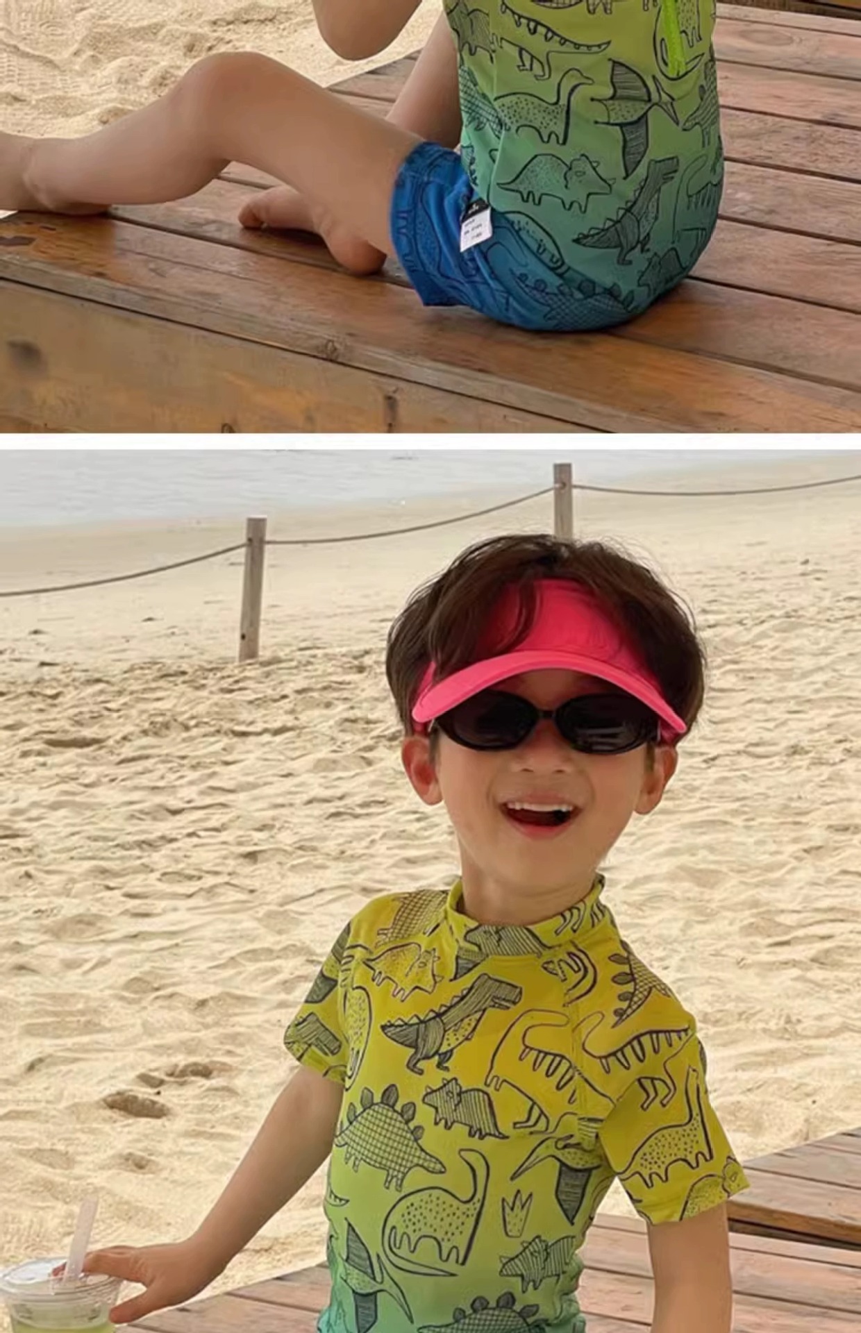 어린이 수영복 원피스 소년 공룡 여름 아기 휴가 빠른 건조 새로운 아기 귀여운 태양 보호 수영복