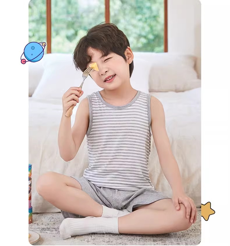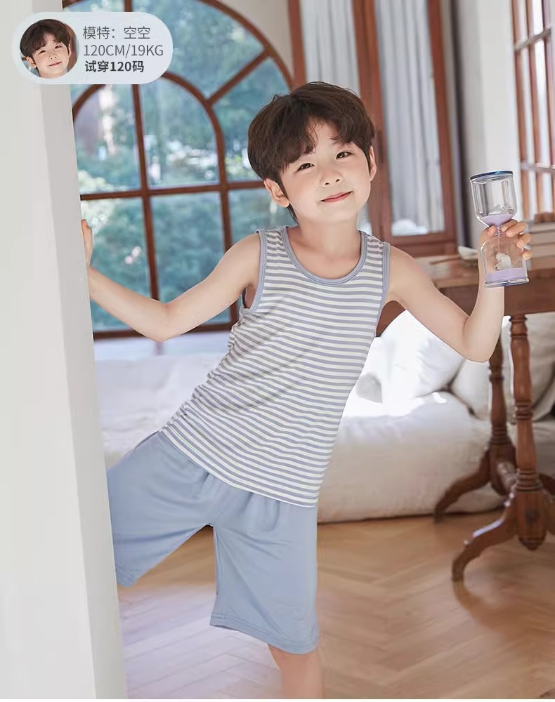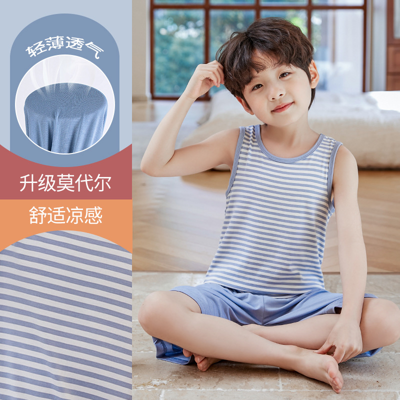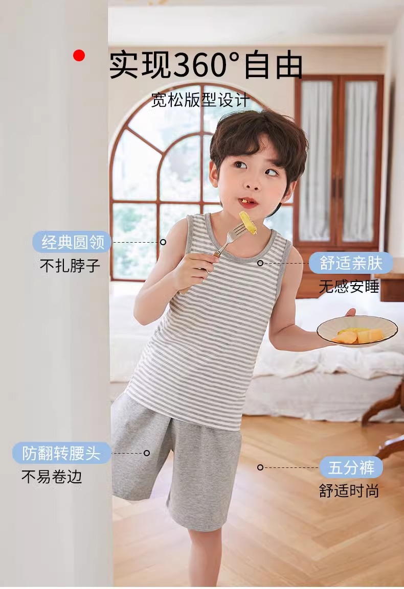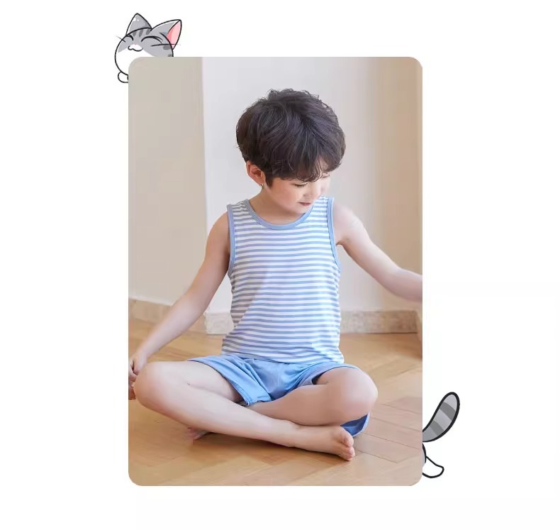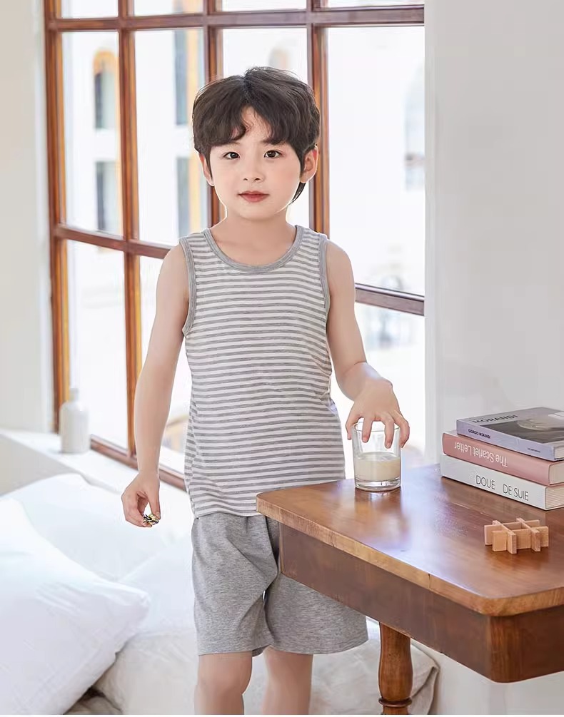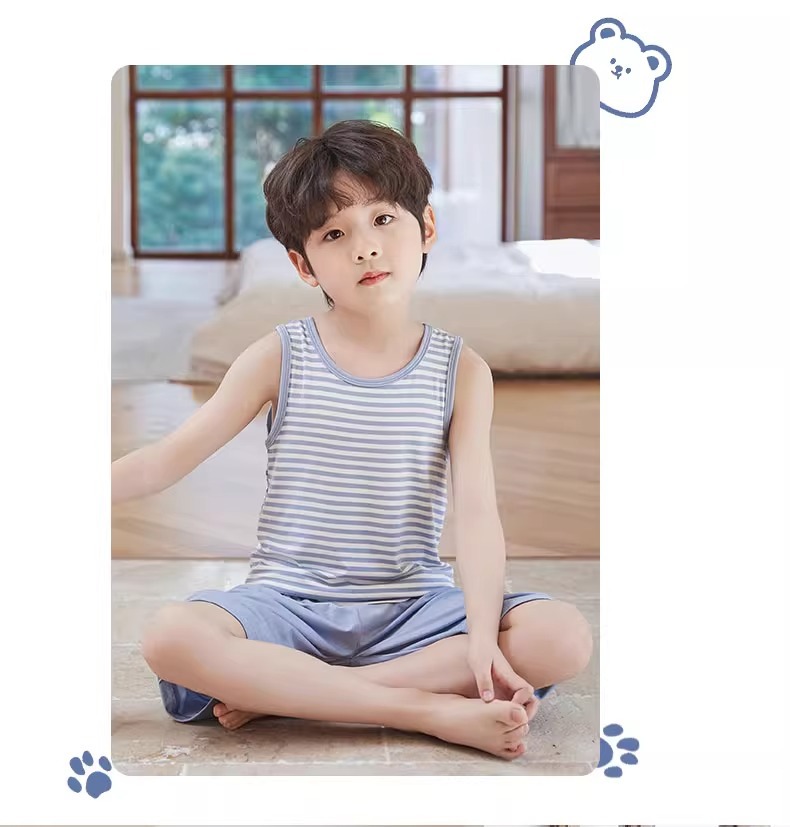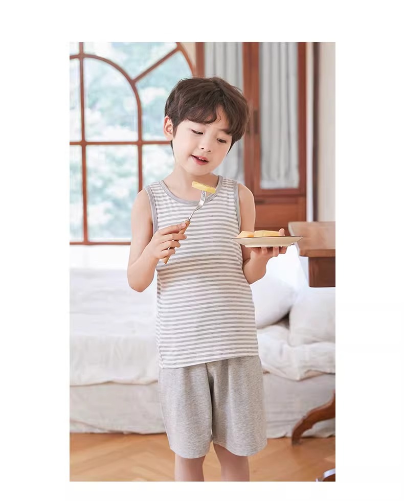 줄무늬 남아 조끼 잠옷 세트 2026 아동 민소매 홈웨어 세트 여름 스타일 청소년 잠옷 트렌드