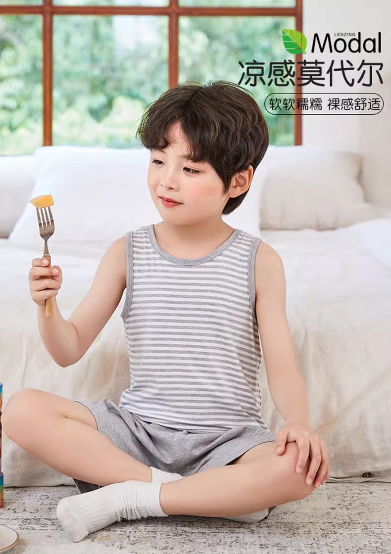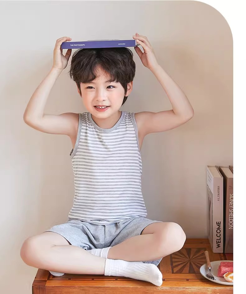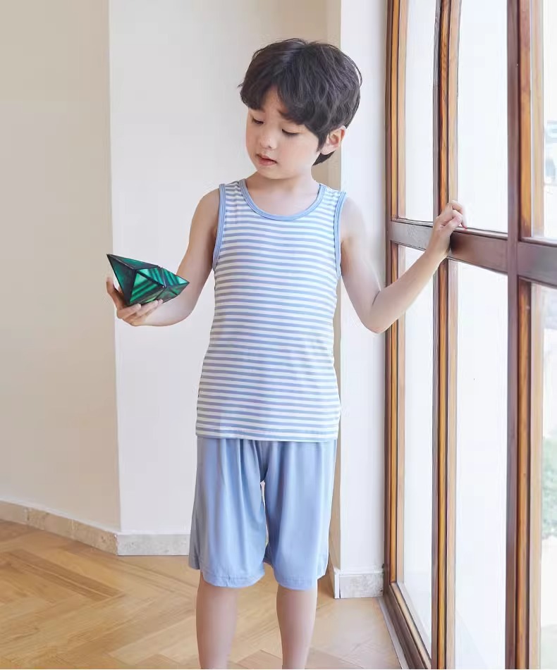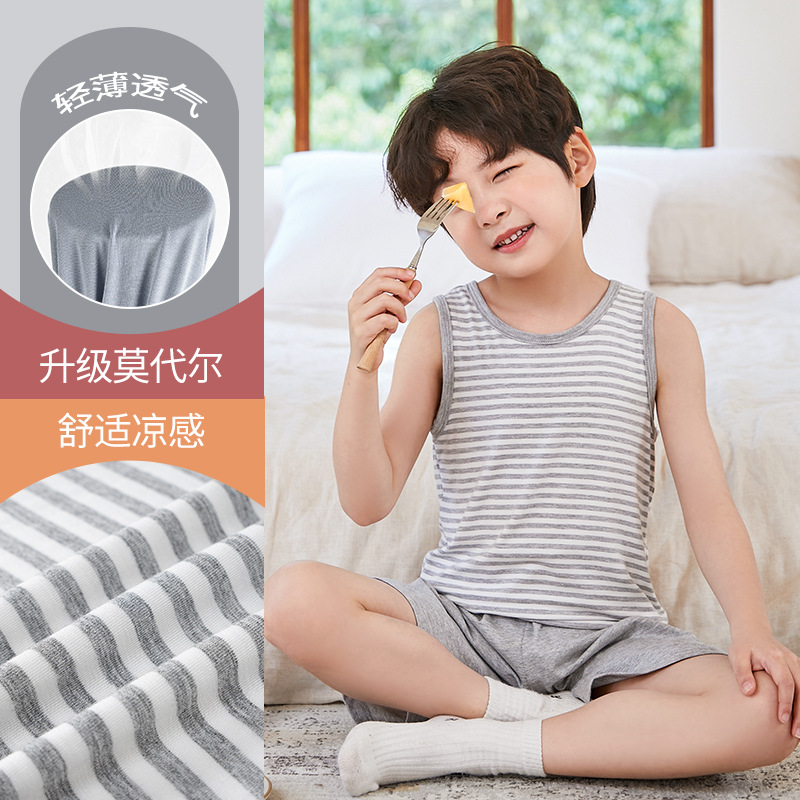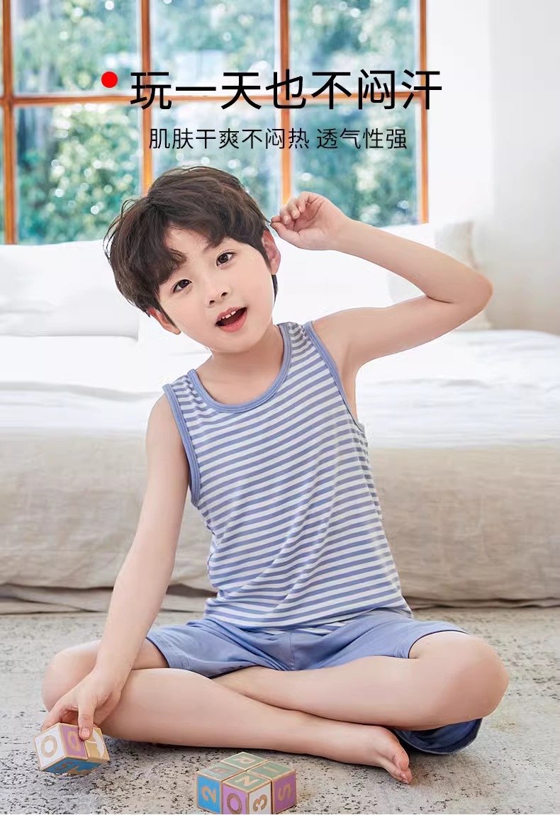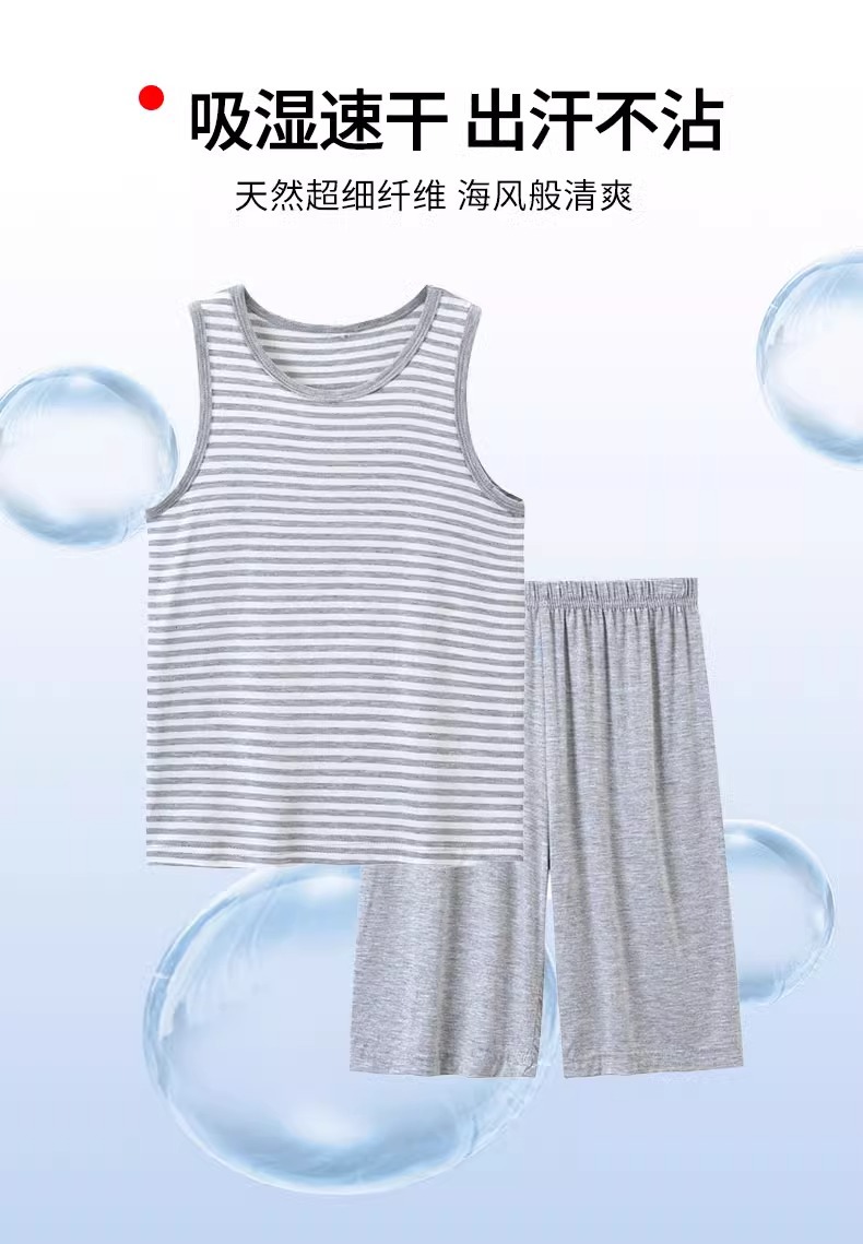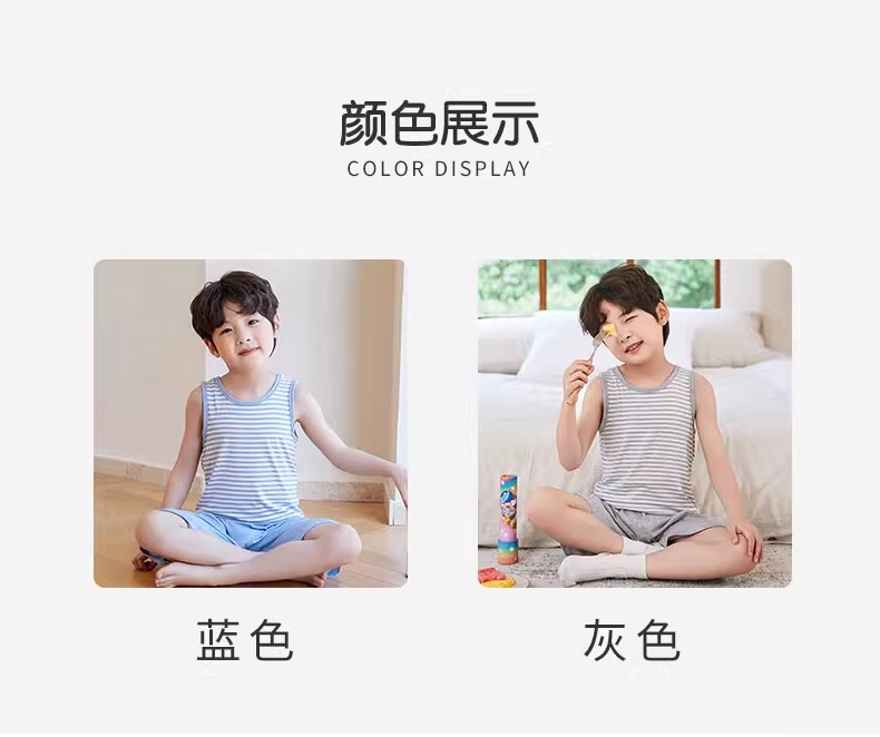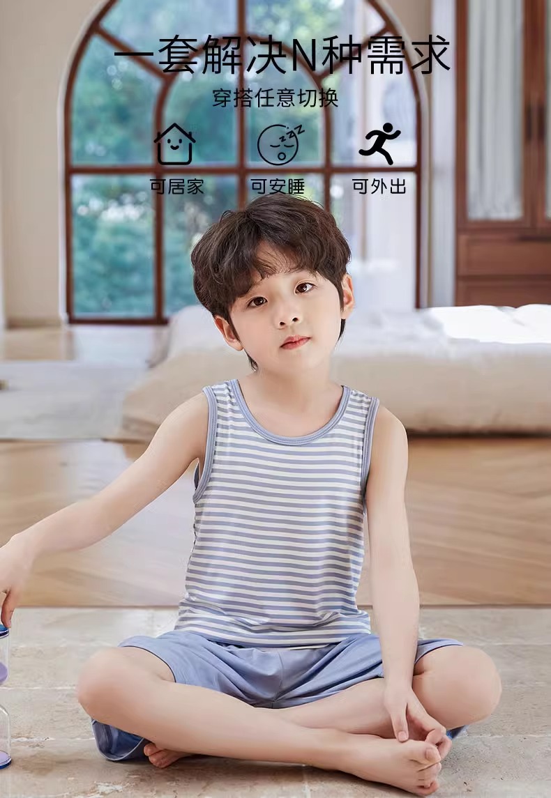 줄무늬 남아 조끼 잠옷 세트 2026 아동 민소매 홈웨어 세트 여름 스타일 청소년 잠옷 트렌드