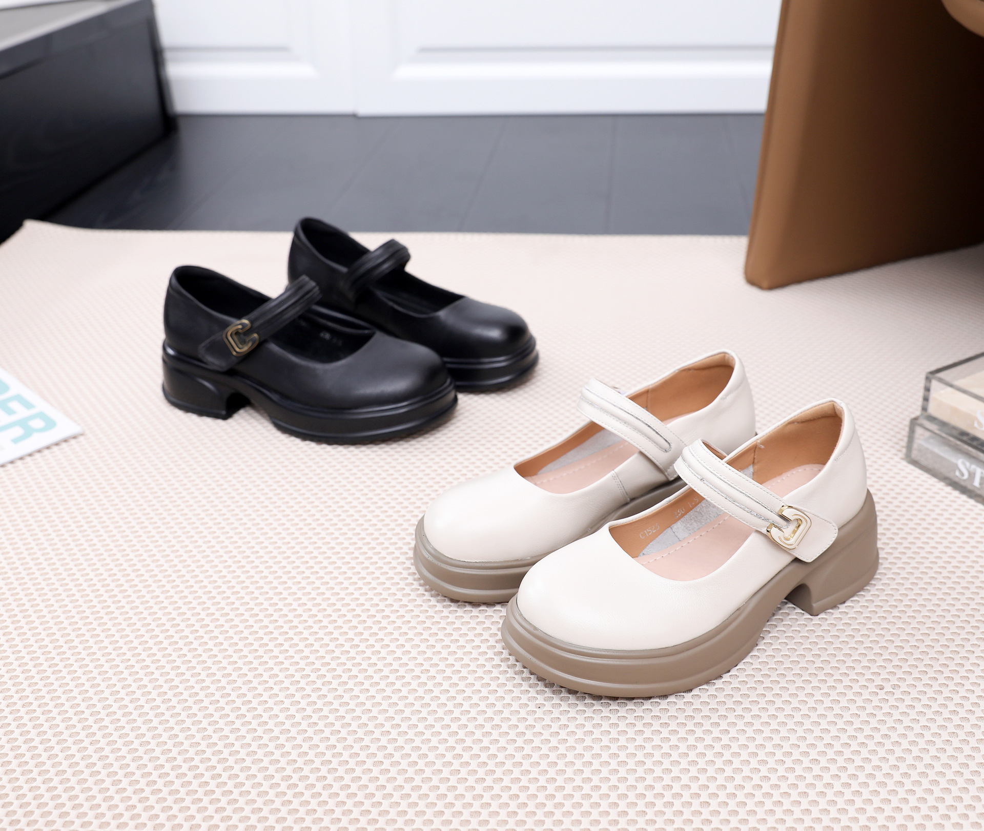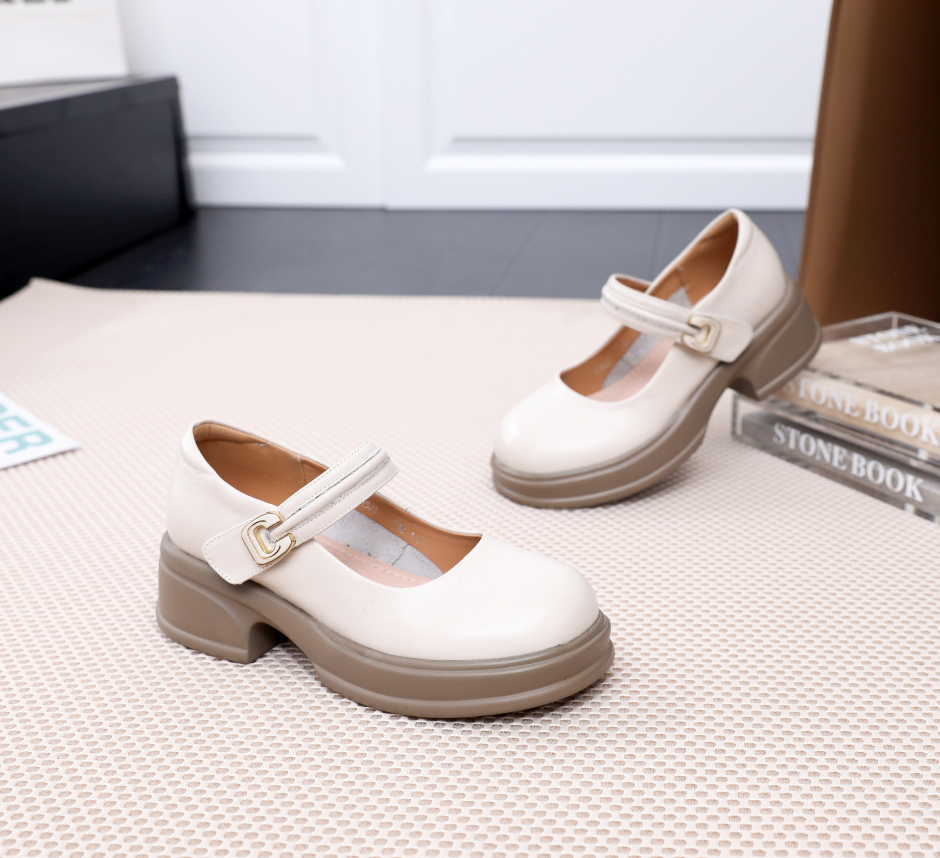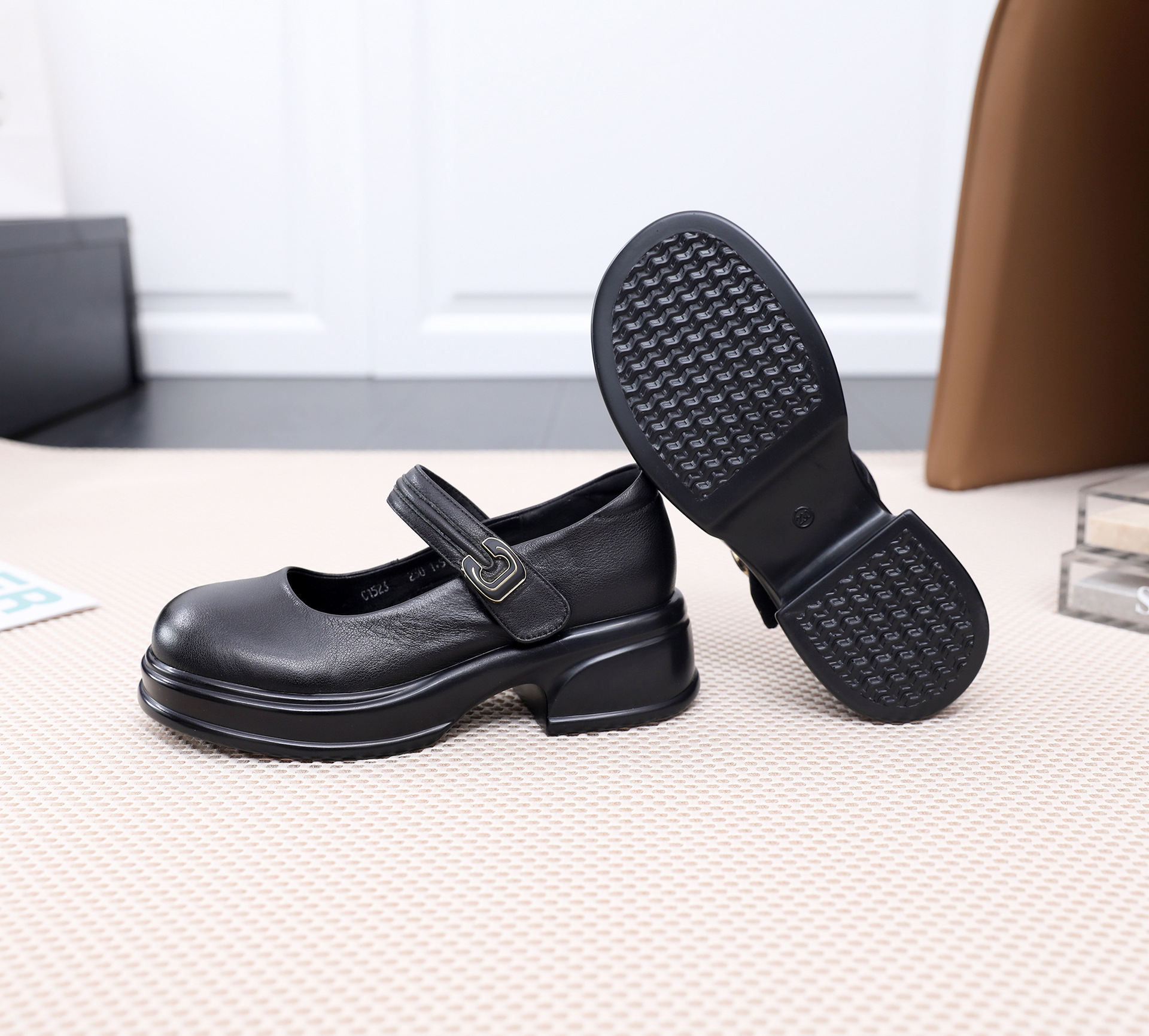 2024 새로운 두꺼운 가죽 신발 여성 플랫폼 플러스 사이즈 청키 한 힐 로퍼 로우 컷 Mary Jane 여성 신발스토어 가기