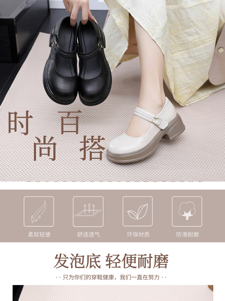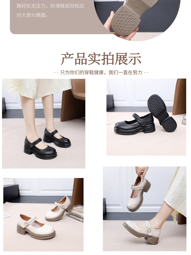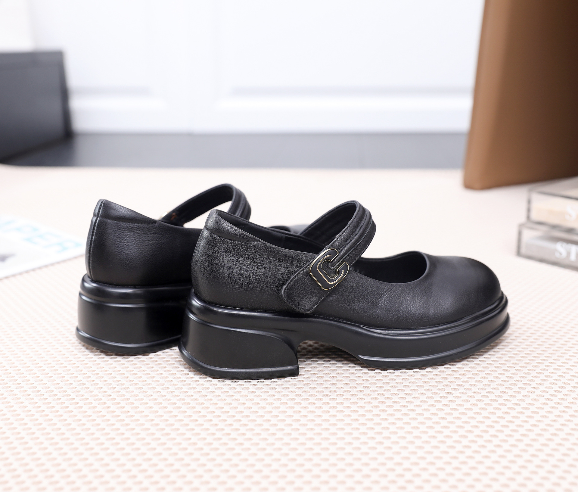 2024 새로운 두꺼운 가죽 신발 여성 플랫폼 플러스 사이즈 청키 한 힐 로퍼 로우 컷 Mary Jane 여성 신발스토어 가기