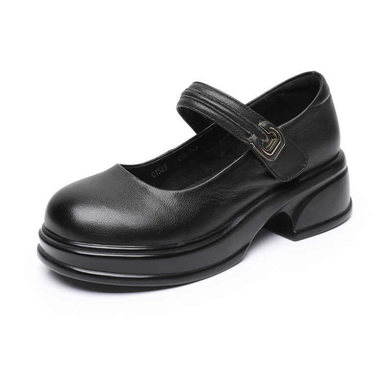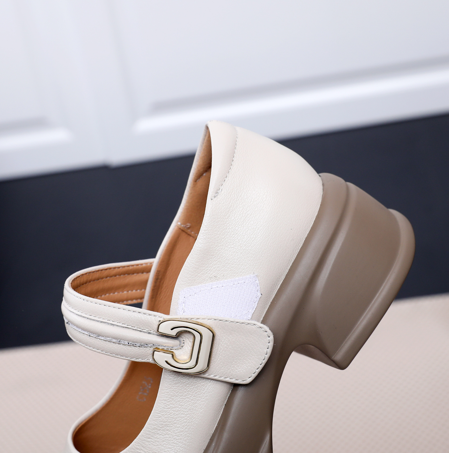 2024 새로운 두꺼운 가죽 신발 여성 플랫폼 플러스 사이즈 청키 한 힐 로퍼 로우 컷 Mary Jane 여성 신발