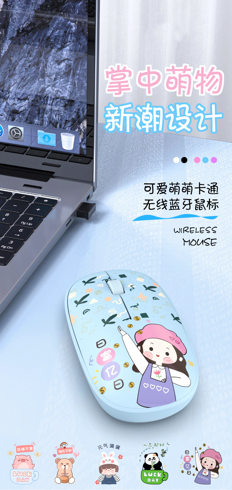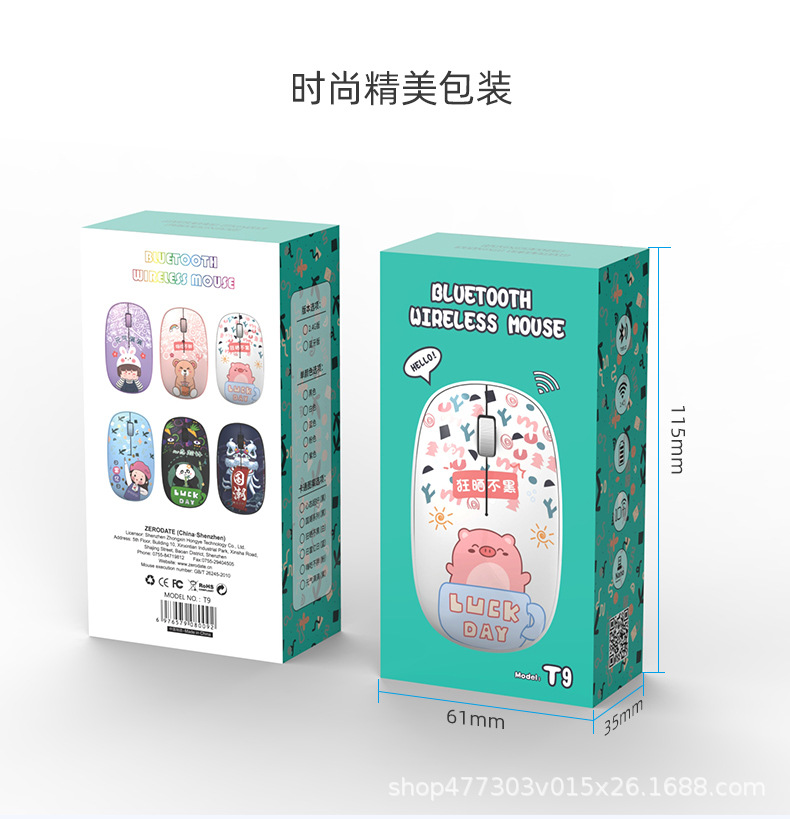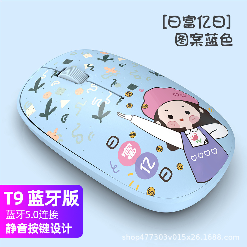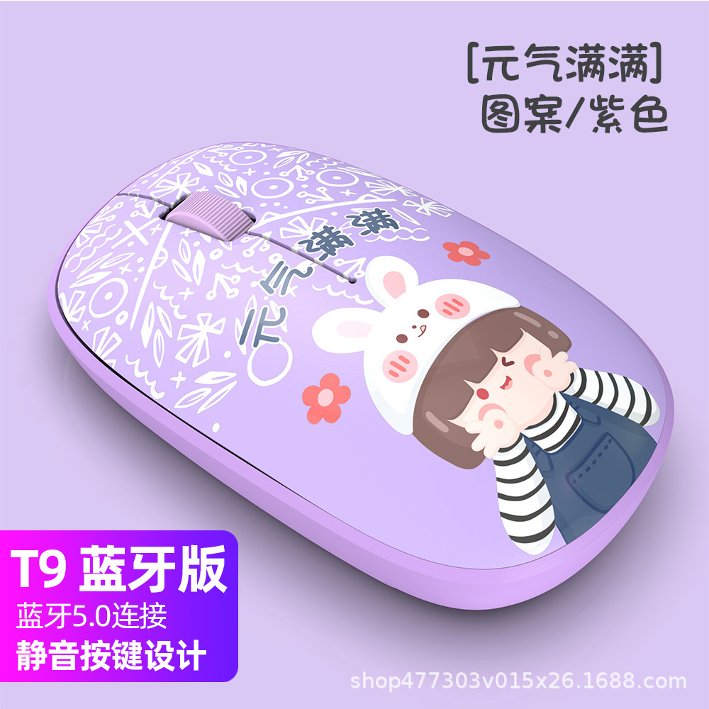공장 스팟 2.4G 무선 블루투스 마우스 T9 그린 만화 1200DPI 음소거 비즈니스 오피스 마우스스토어 가기