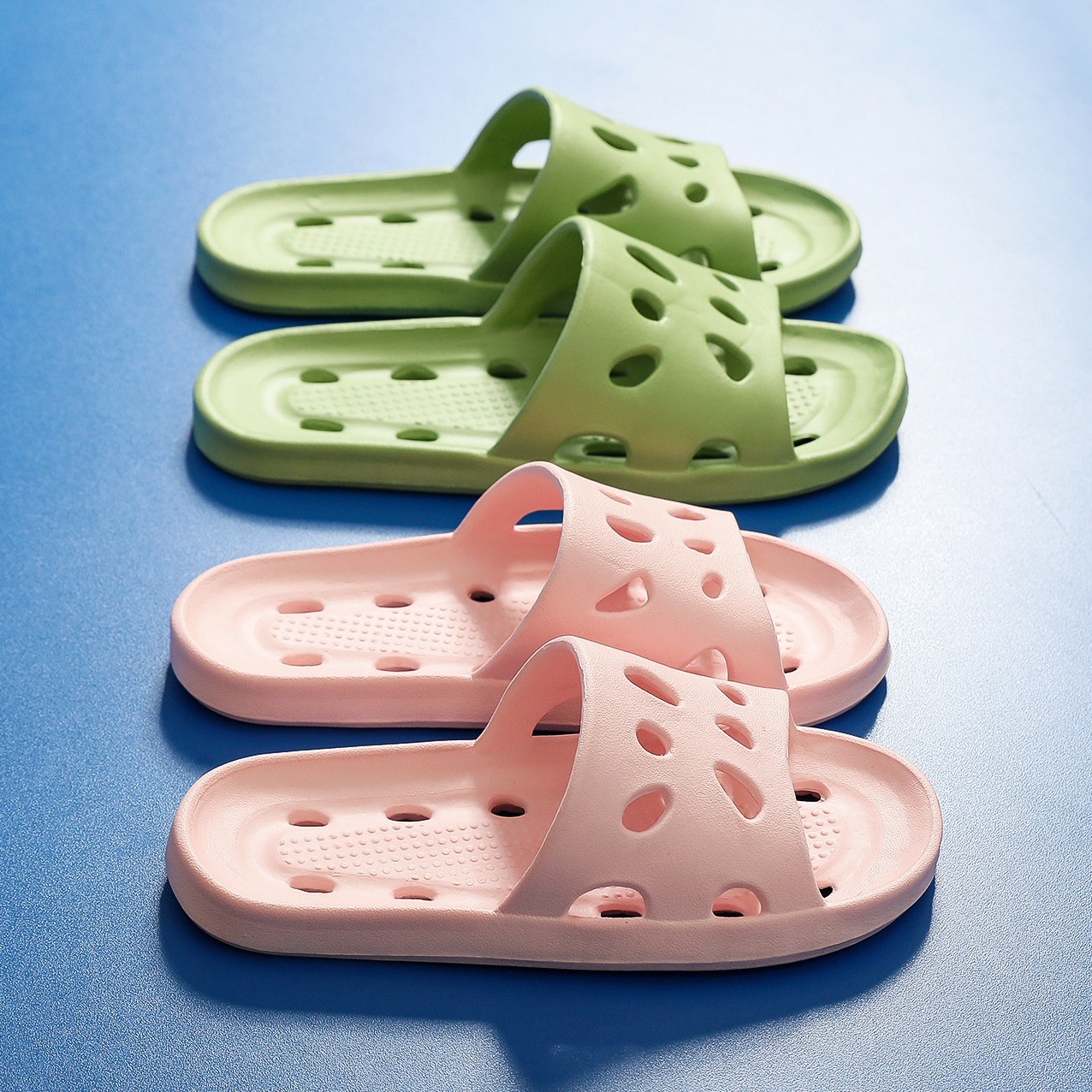 여름 치즈 새는 슬리퍼, 목욕용 구멍, 여성용 미끄럼 방지 중공 욕실 신발, 남성용 가정용 부드러운 밑창 슬리퍼, 에바스토어 가기