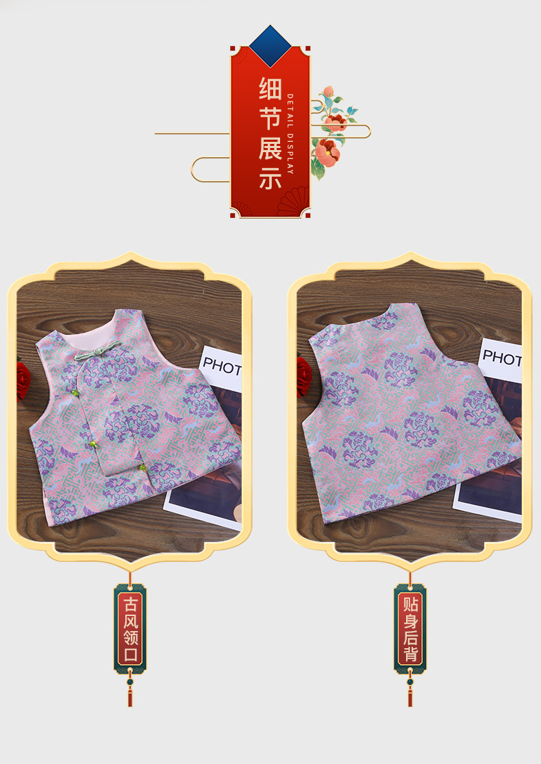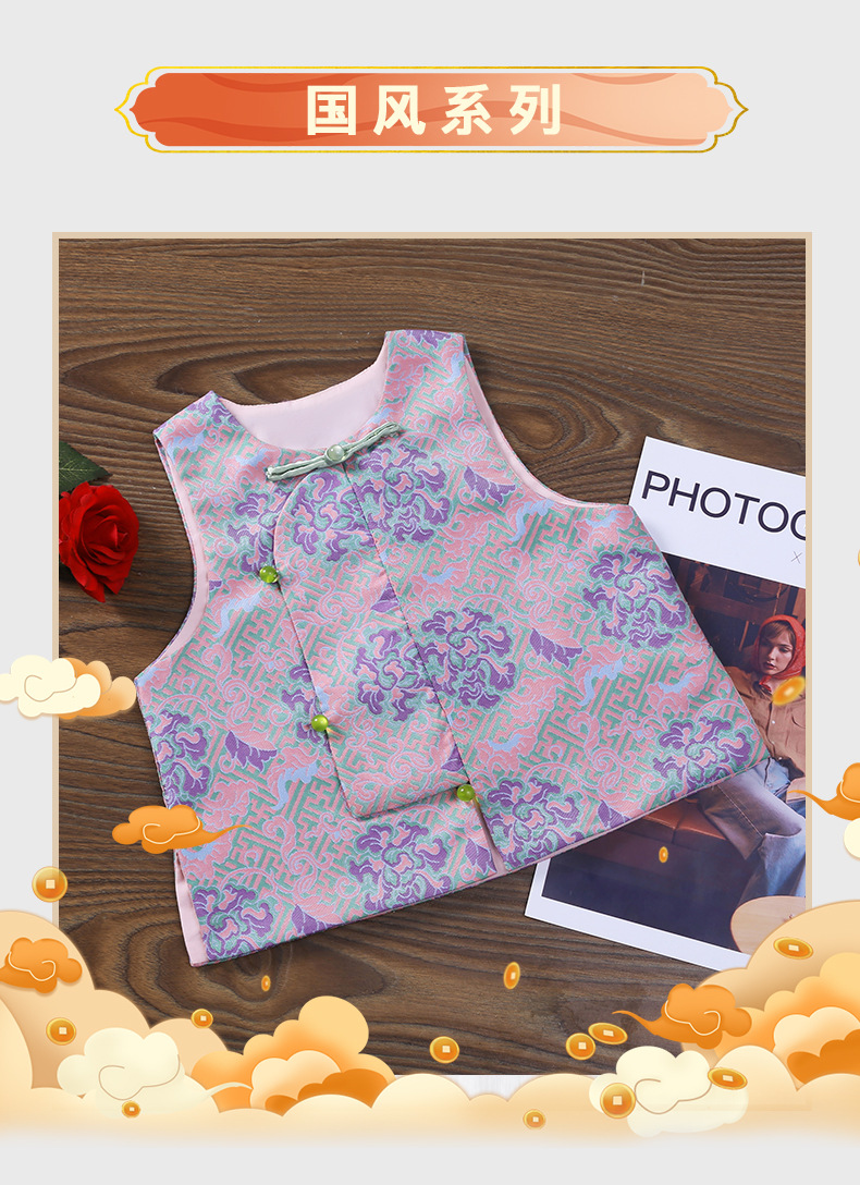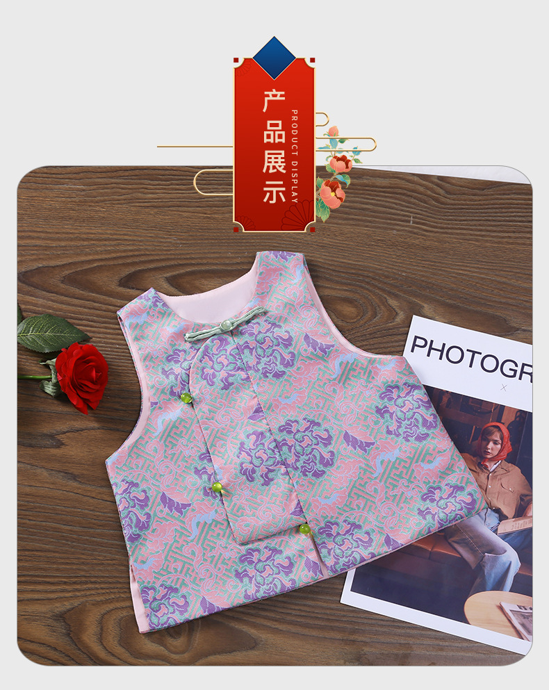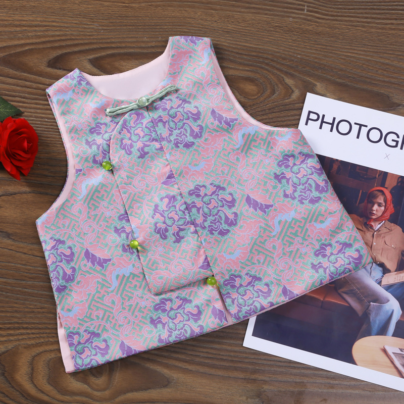 새로운 중국 스타일 어린이 고급 조끼 2024 새로운 야외 조끼 민소매 버클 어린이 조끼스토어 가기