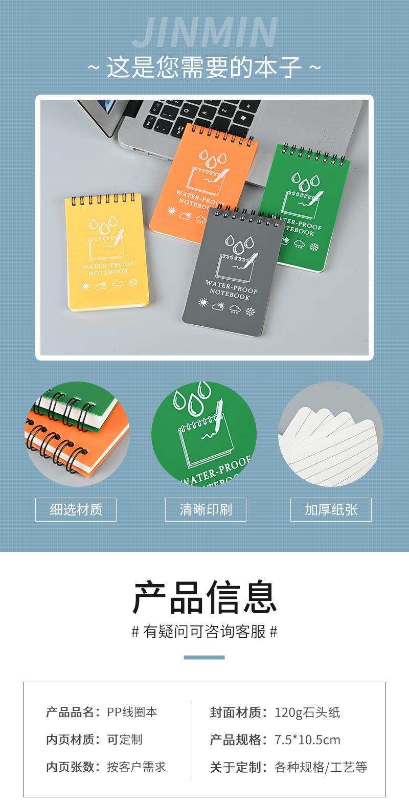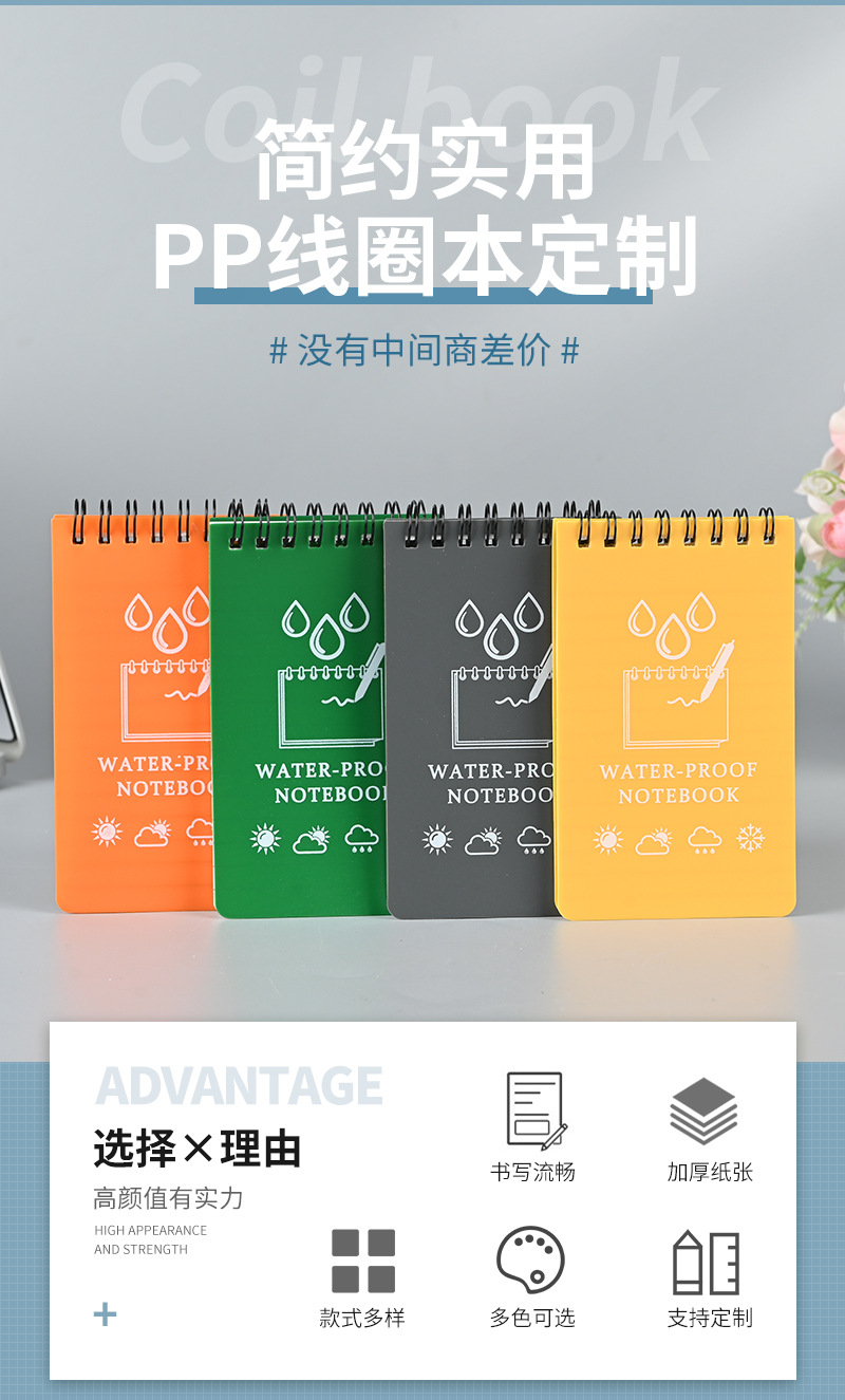 국경 간 A7PP 코일 노트 맞춤형 메모장 돌 종이 방수 및 내부 페이지가 찢어지기 쉽지 않음 로고가 인쇄된 휴대용 포켓 노트스토어 가기