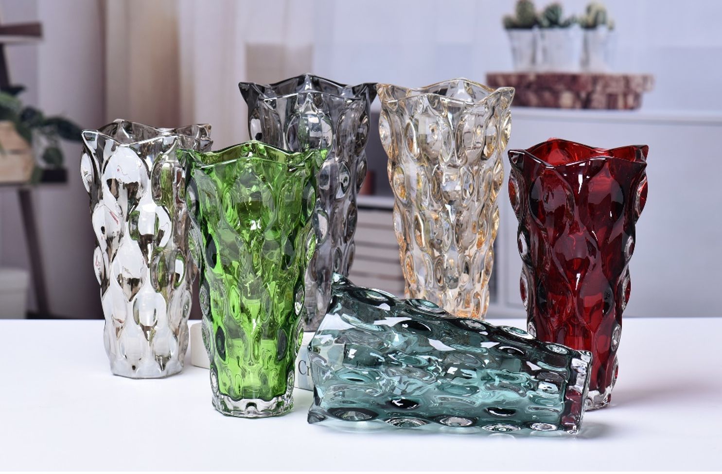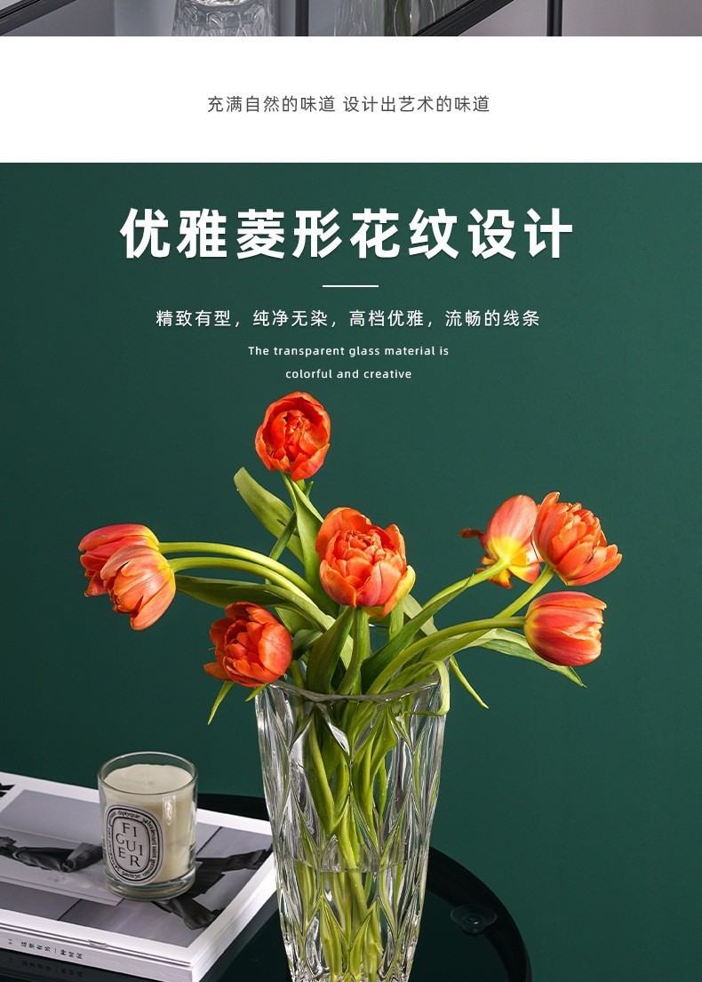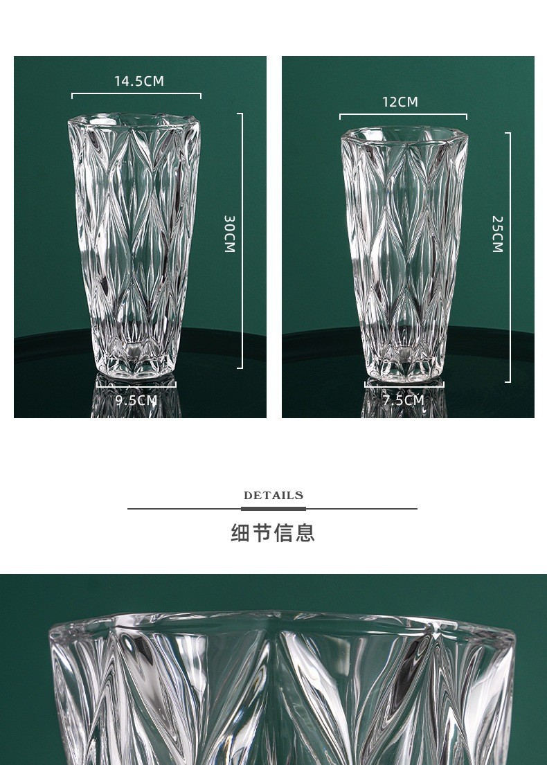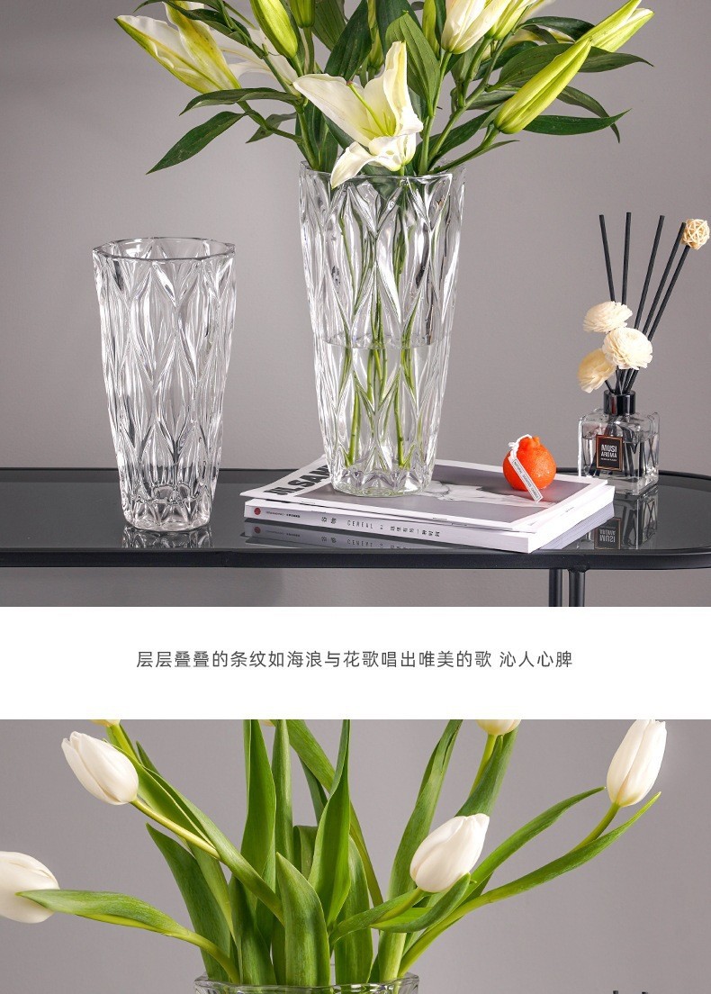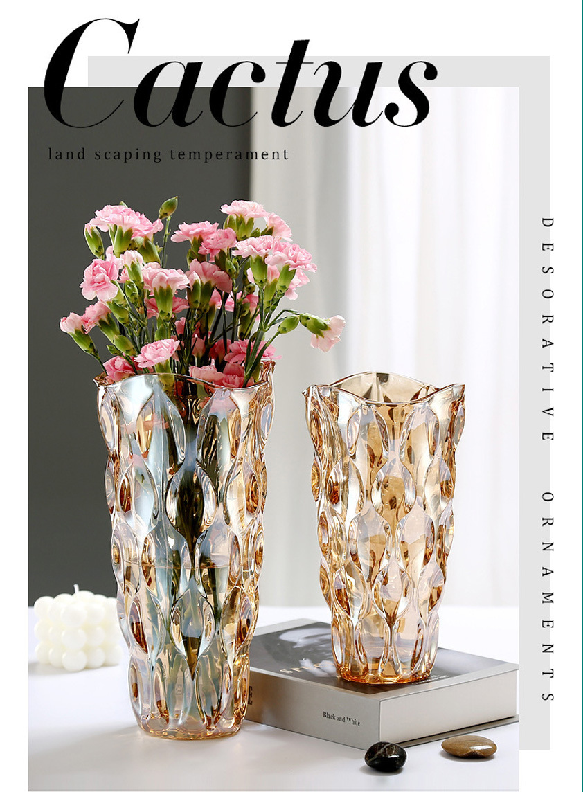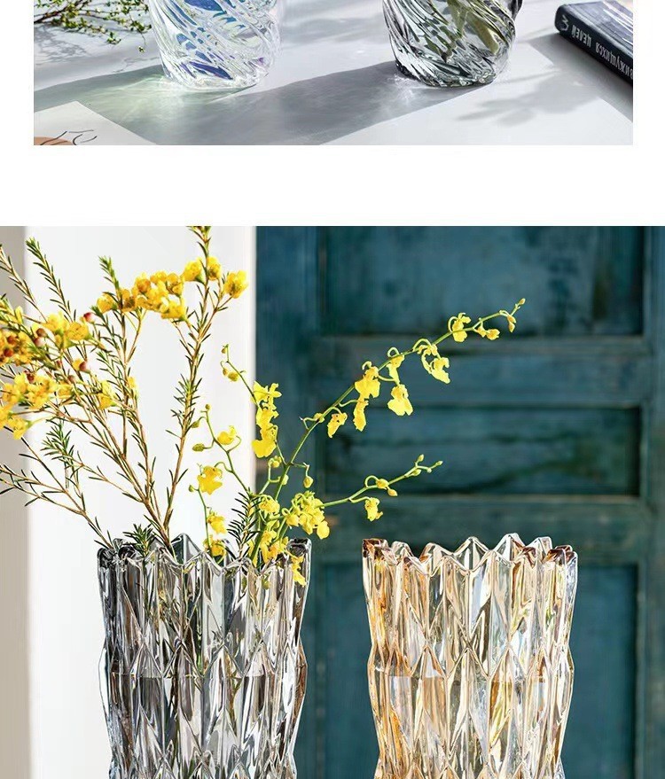 보헤미안 현대 크리스탈 투명 유리 꽃병 장식 홈 데스크탑 거실 수경 꽃꽂이 장식품 도매