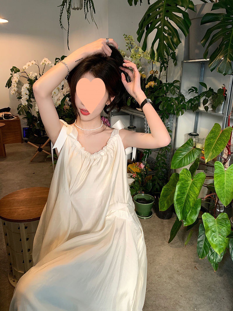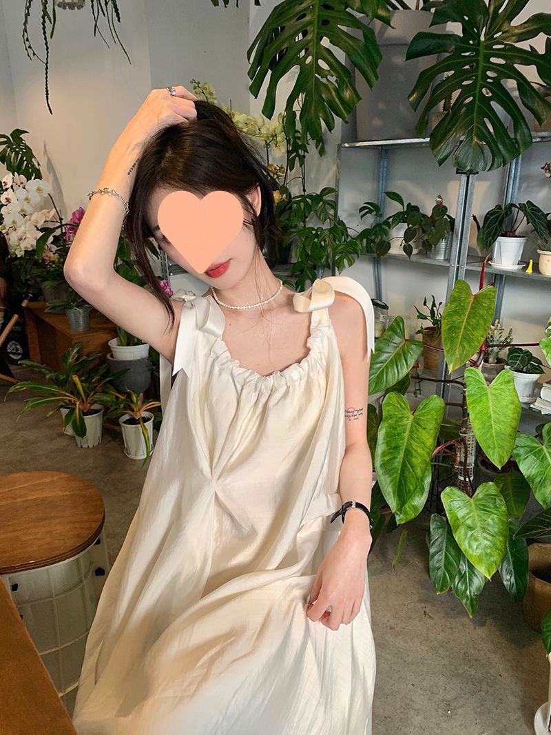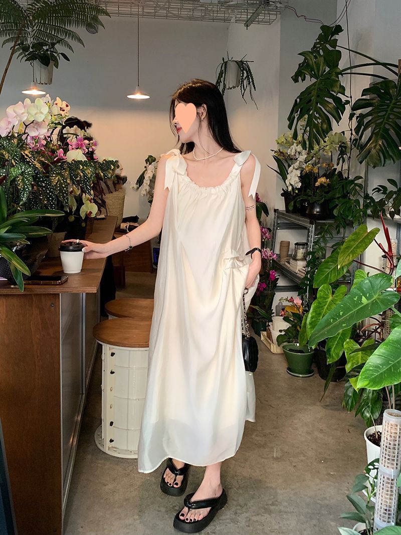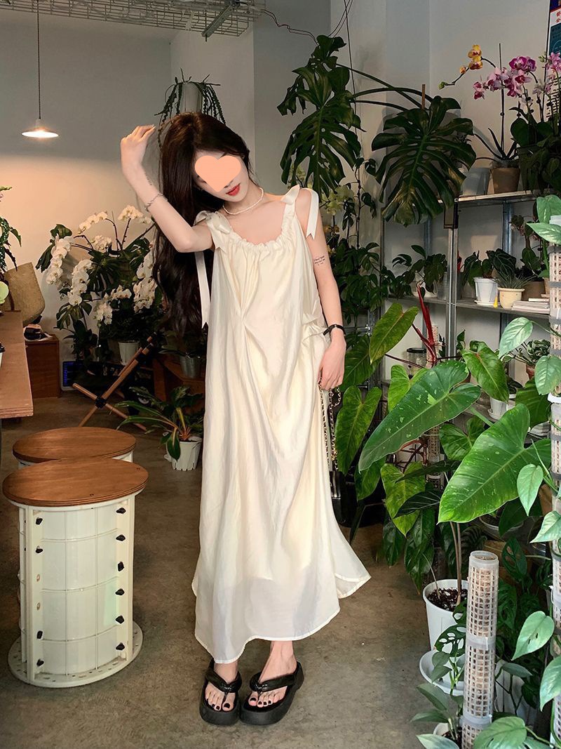 프랑스의 부드럽고 게으른 휴가 스타일 루즈한 서스펜더 드레스 여성 여름 2024 디자인 중간 길이 스커트스토어 가기