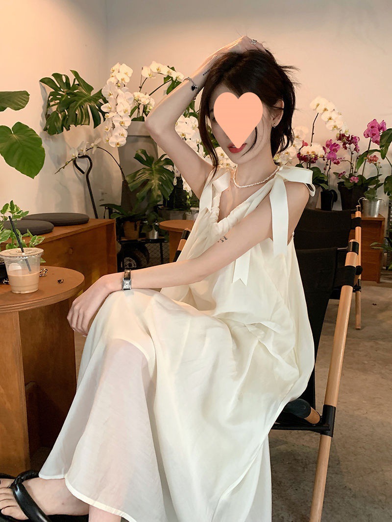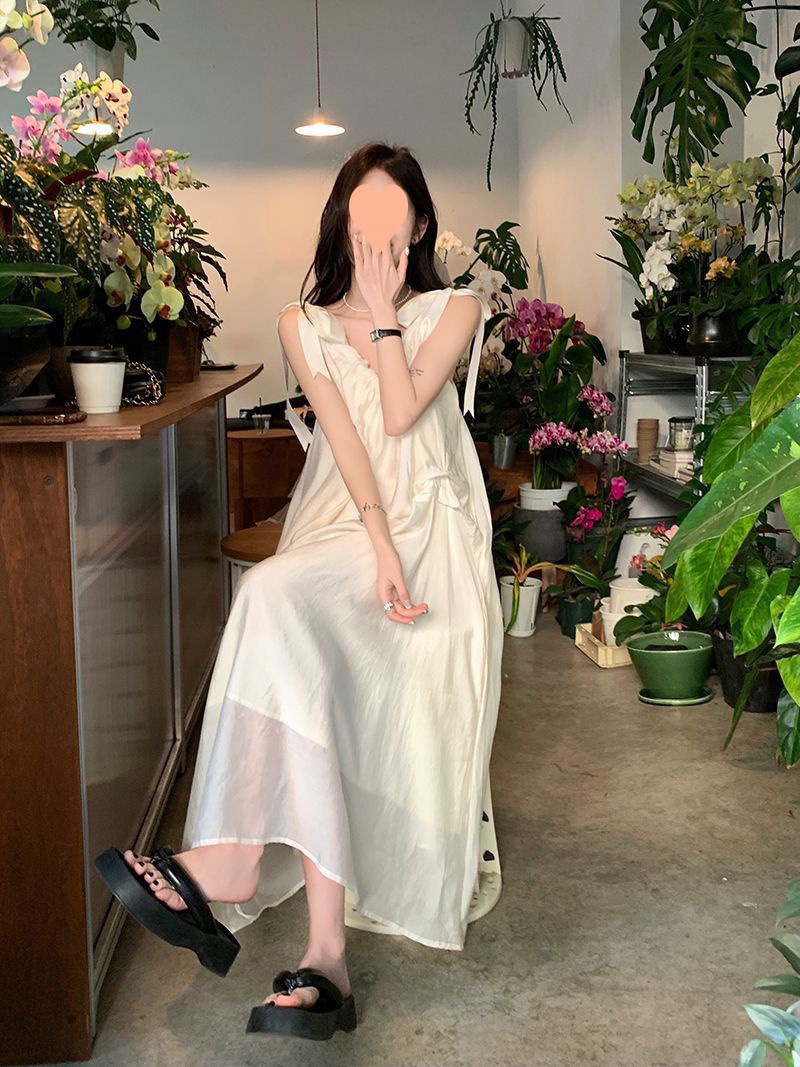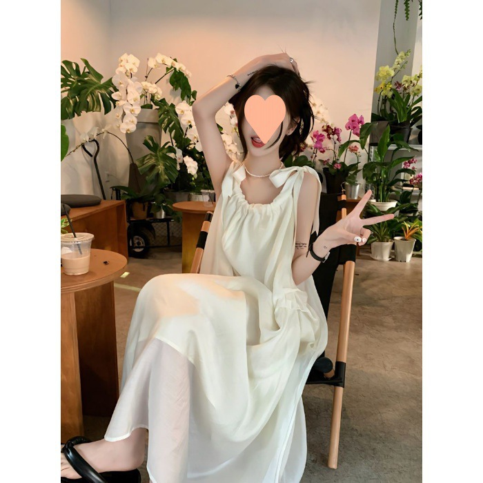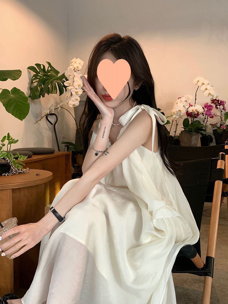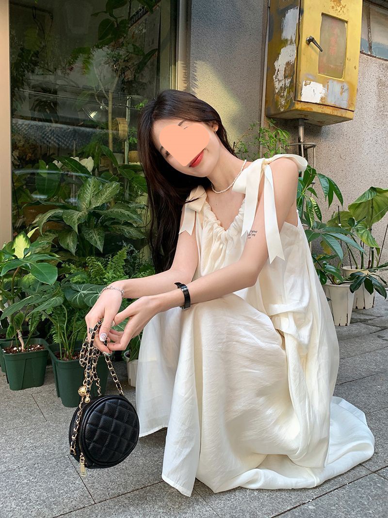프랑스의 부드럽고 게으른 휴가 스타일 루즈한 서스펜더 드레스 여성 여름 2024 디자인 중간 길이 스커트스토어 가기