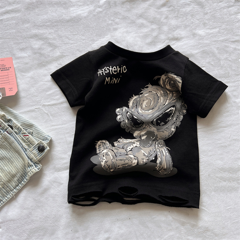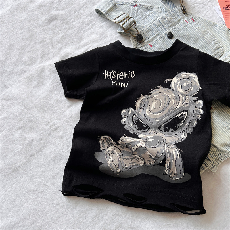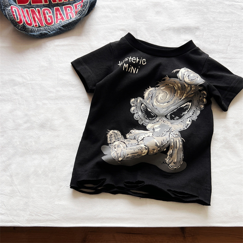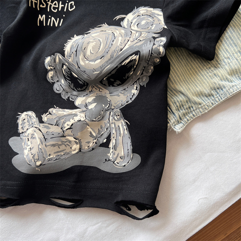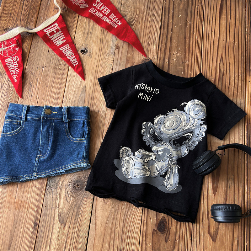 [재고] 일본 아동복 중 · 고대 어린이 검은 슈퍼 찢어진 티셔츠는 데님 허리 씰과 일치 할 수 있습니다.스토어 가기
