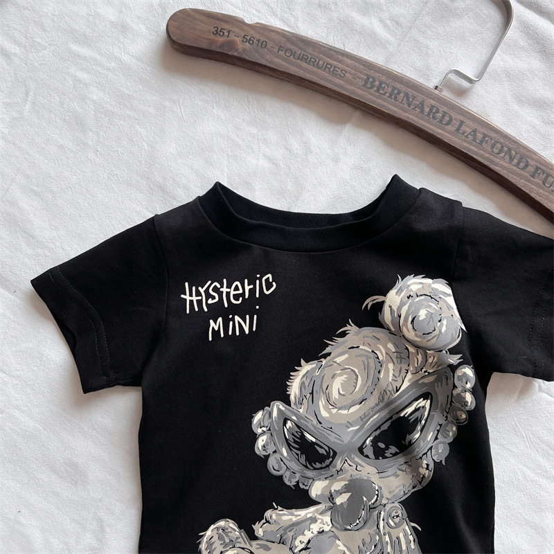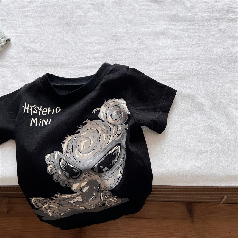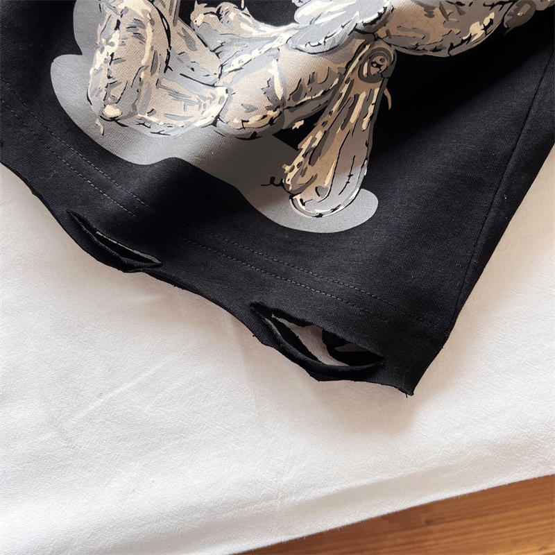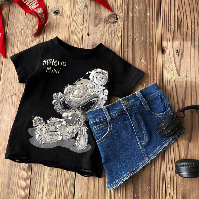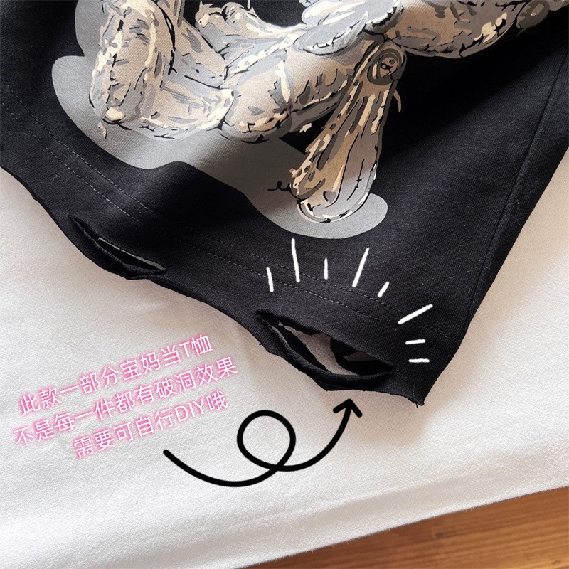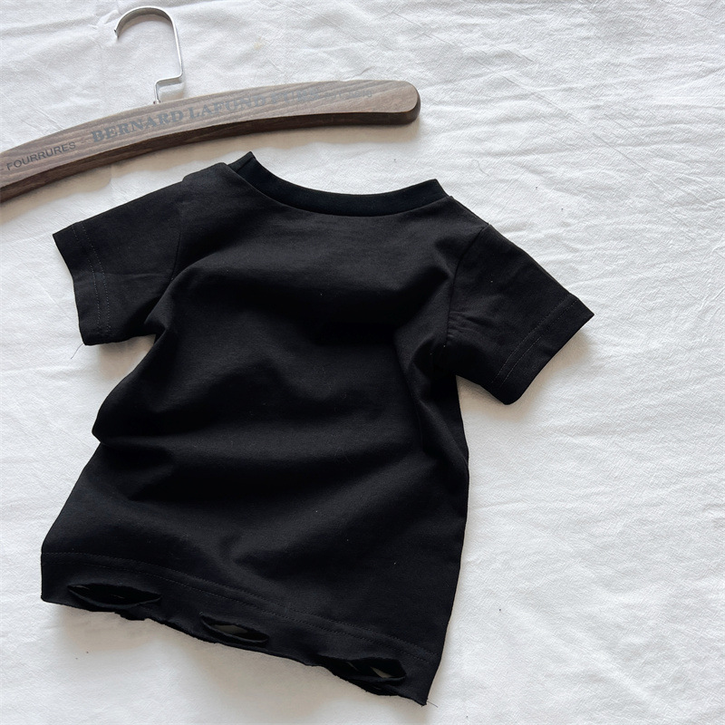 [재고] 일본 아동복 중 · 고대 어린이 검은 슈퍼 찢어진 티셔츠는 데님 허리 씰과 일치 할 수 있습니다.스토어 가기