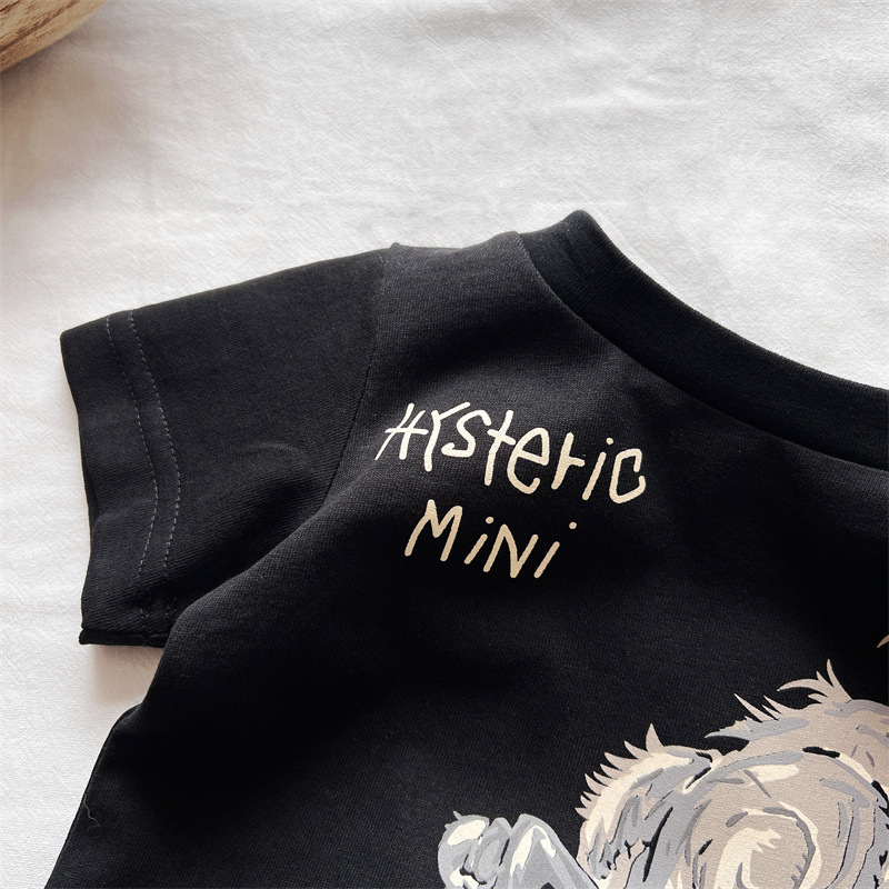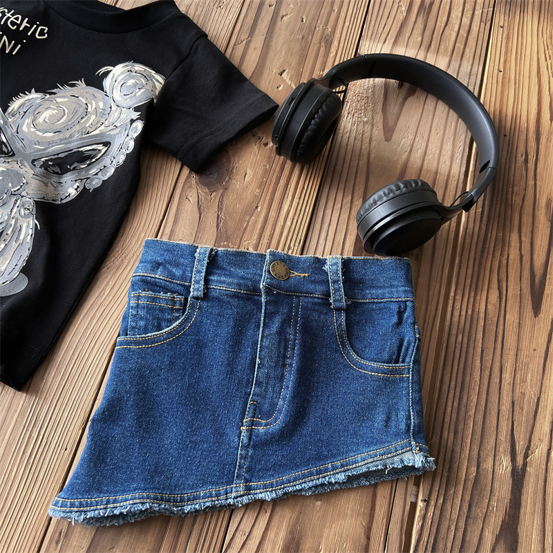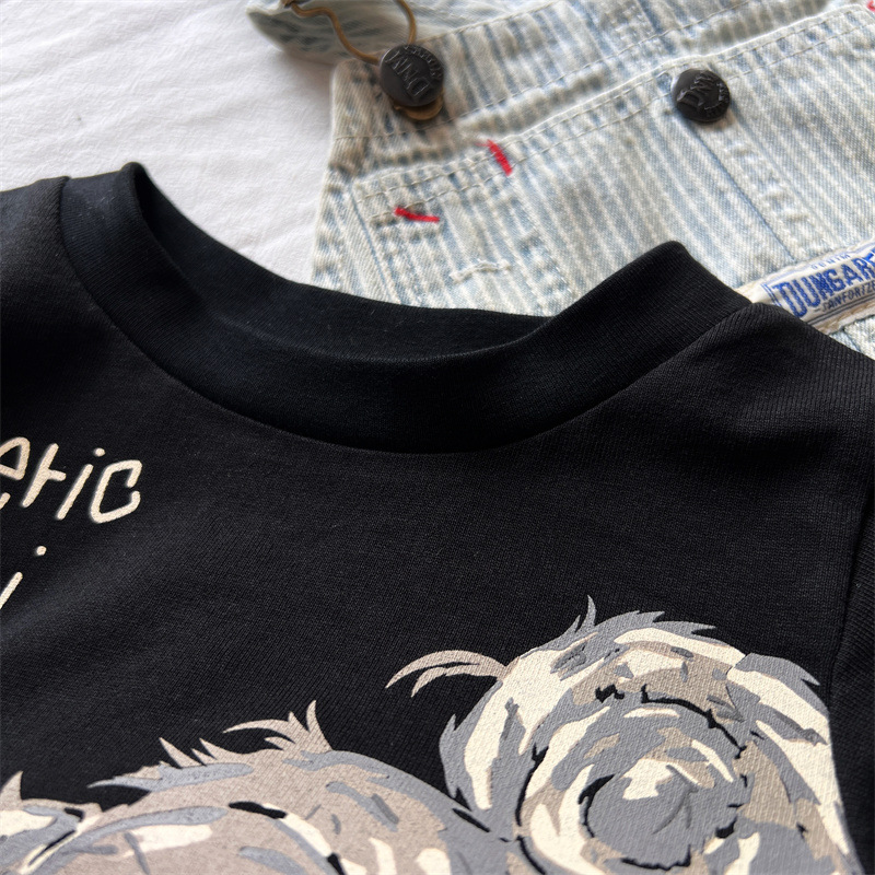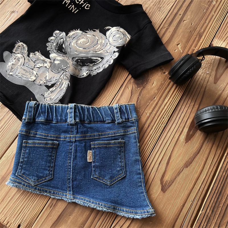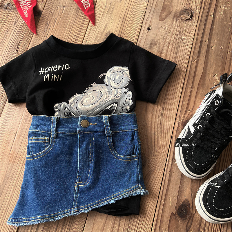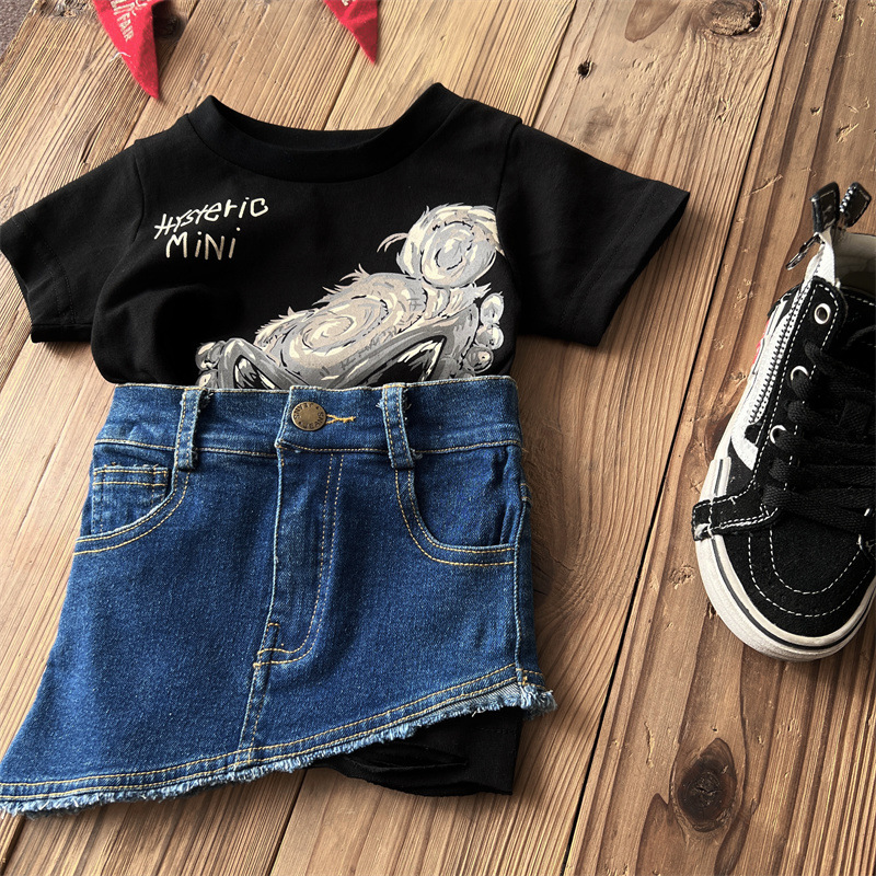 [재고] 일본 아동복 중 · 고대 어린이 검은 슈퍼 찢어진 티셔츠는 데님 허리 씰과 일치 할 수 있습니다.