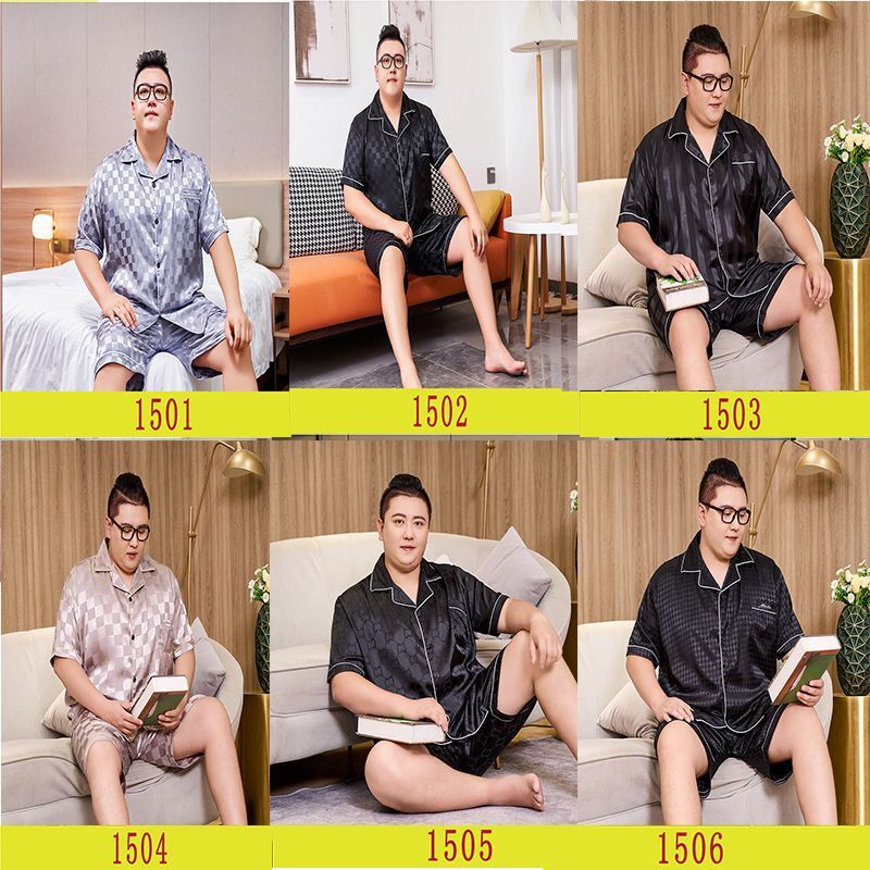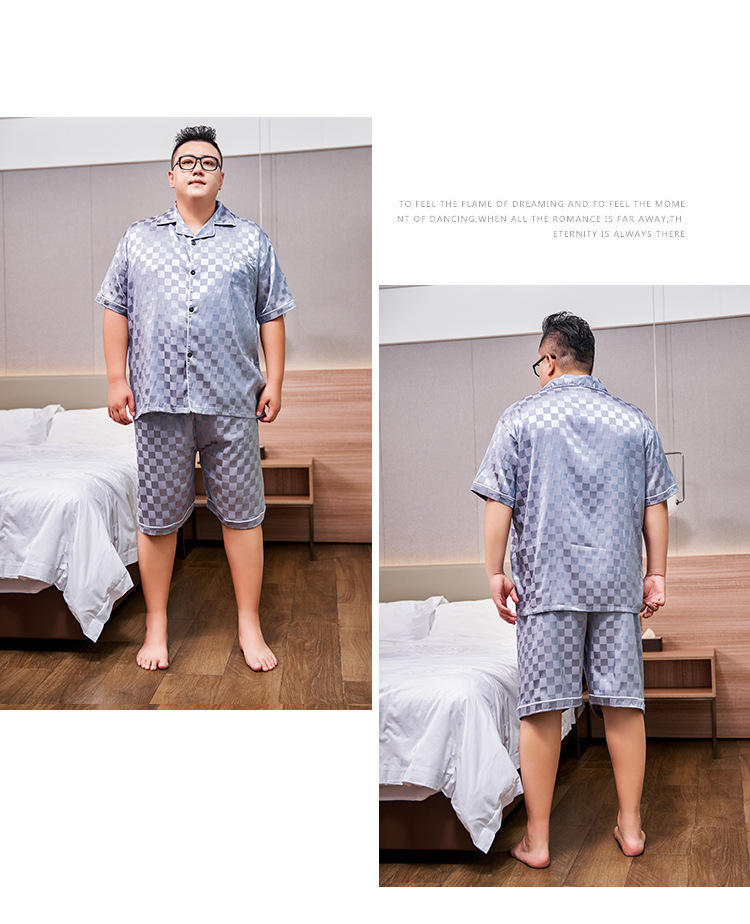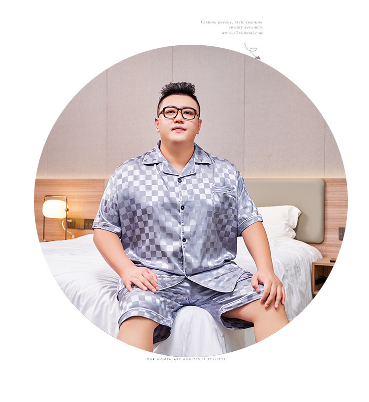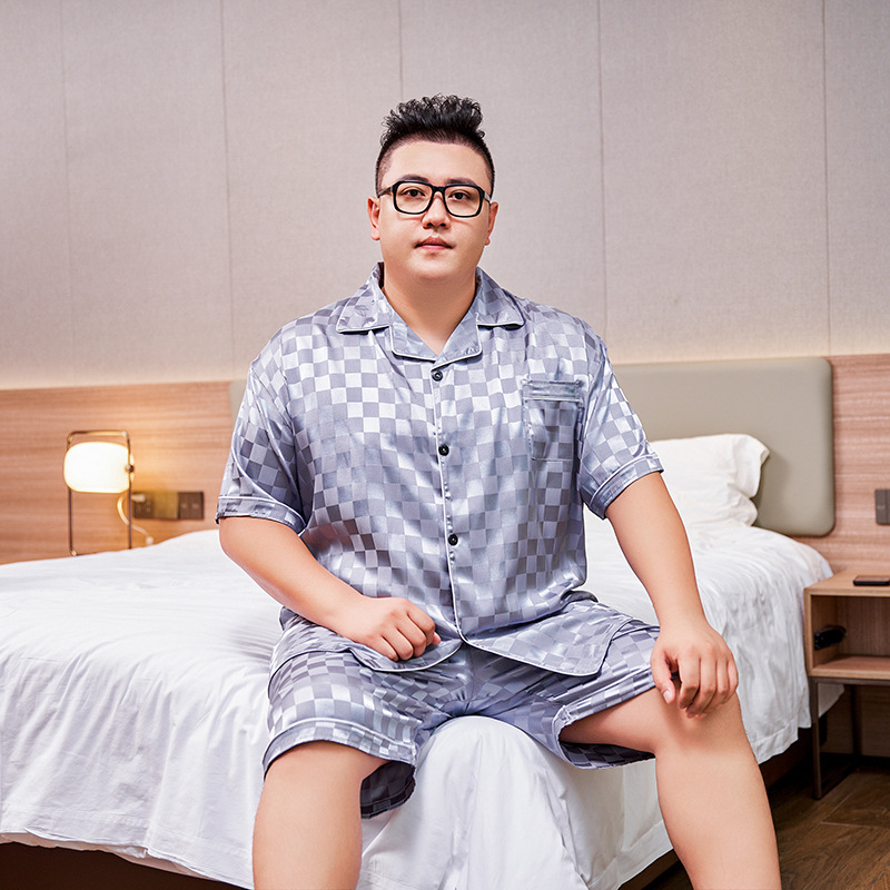 크로스 미러 대외 무역 플러스 사이즈 인공 실크 잠옷 남성 여름 반팔 반바지 실크 홈 착용 투피스 세트스토어 가기