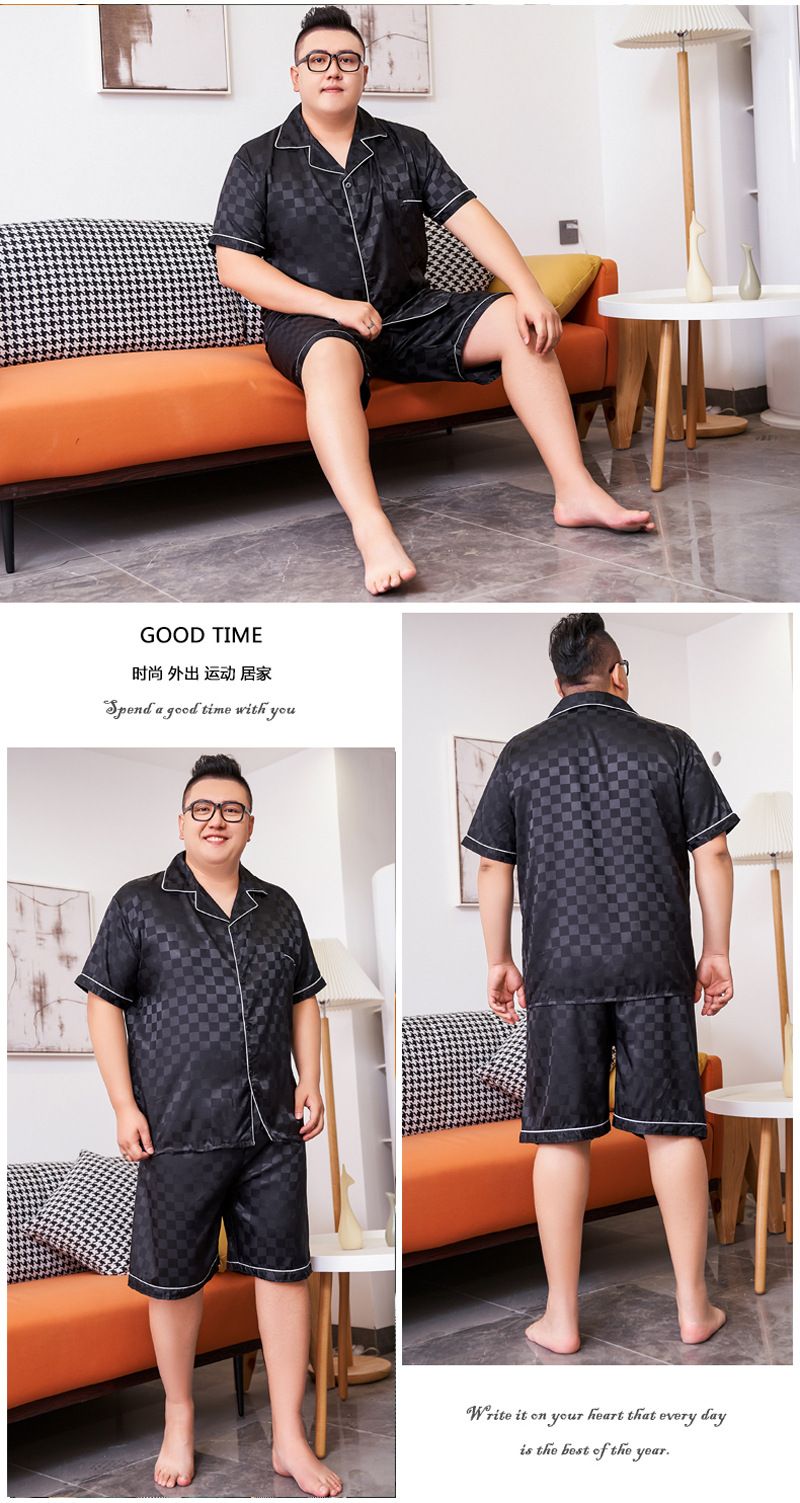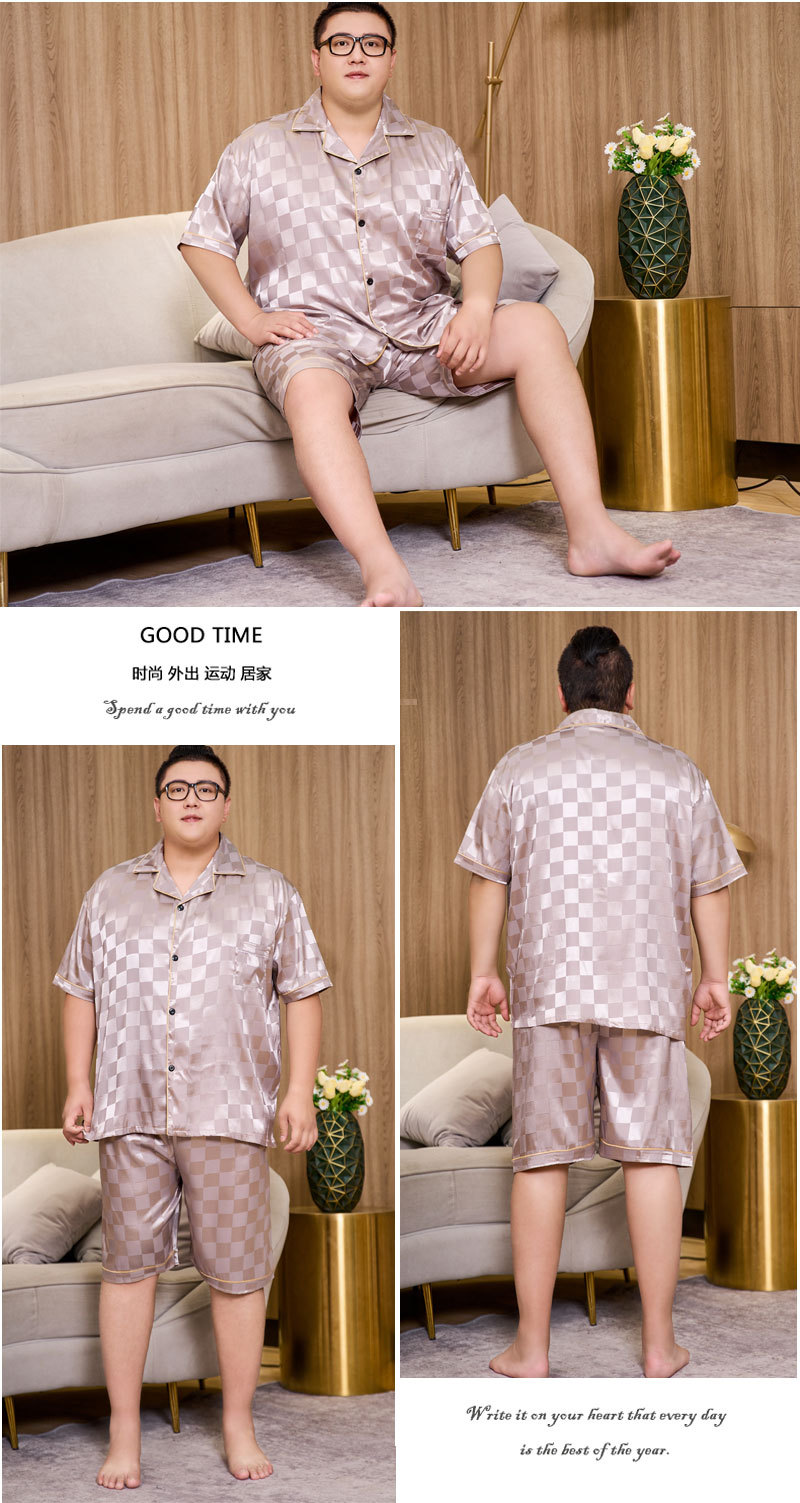 크로스 미러 대외 무역 플러스 사이즈 인공 실크 잠옷 남성 여름 반팔 반바지 실크 홈 착용 투피스 세트