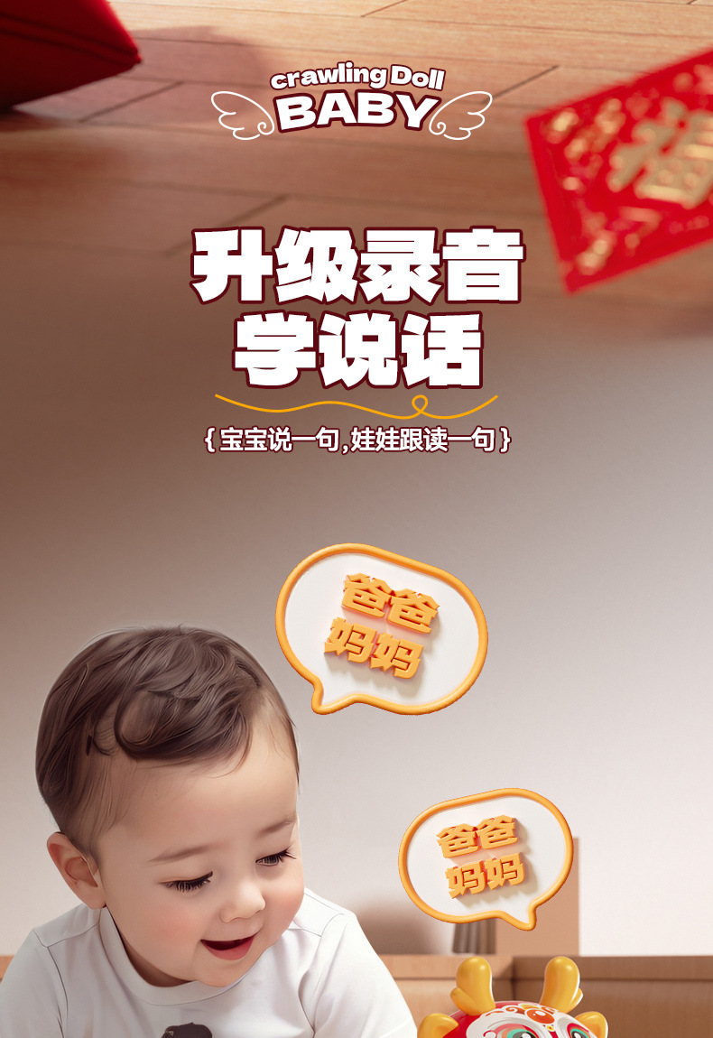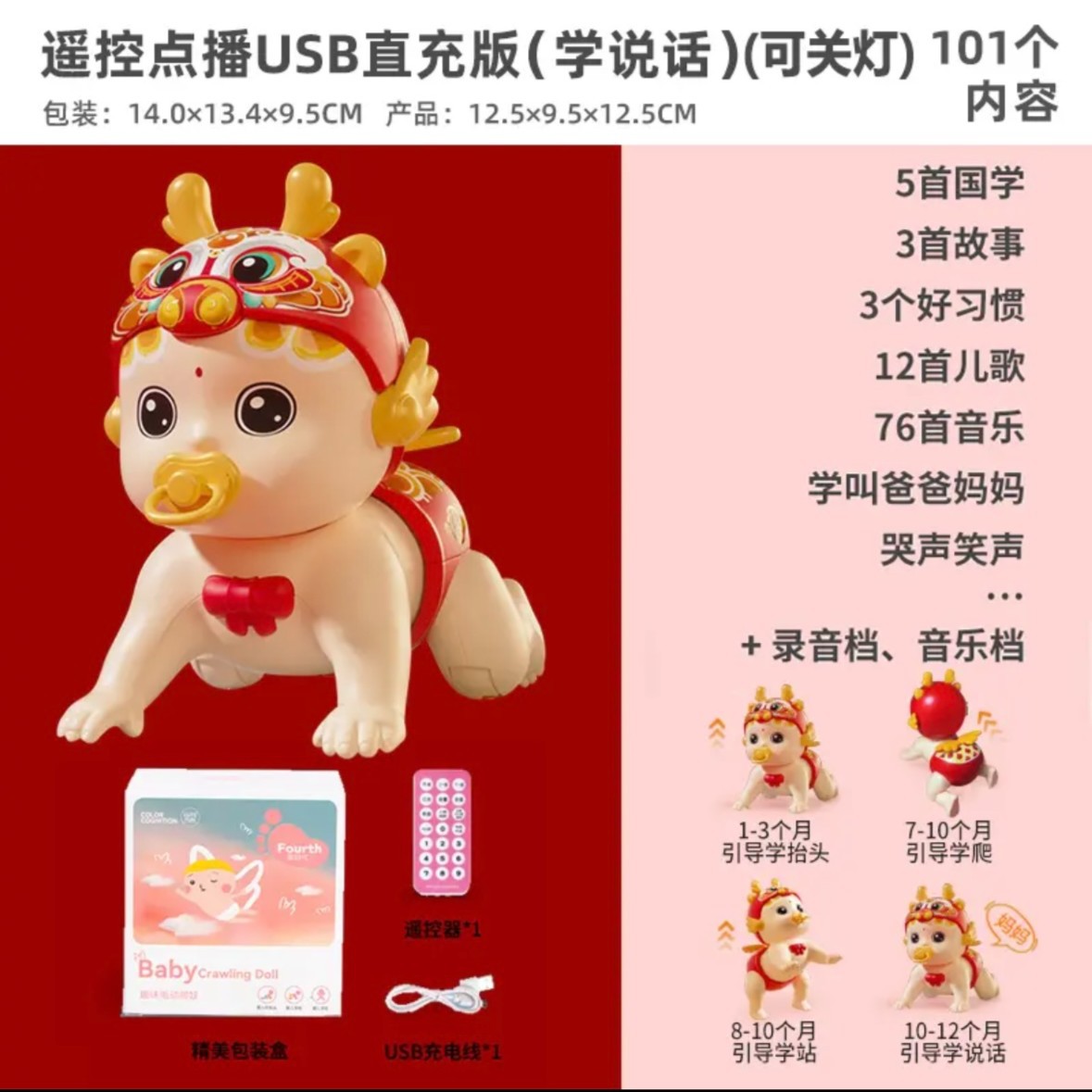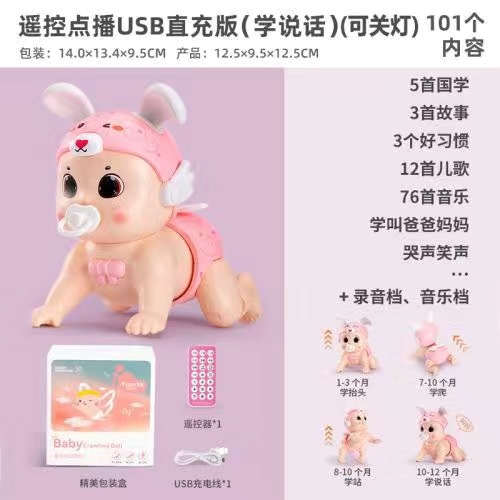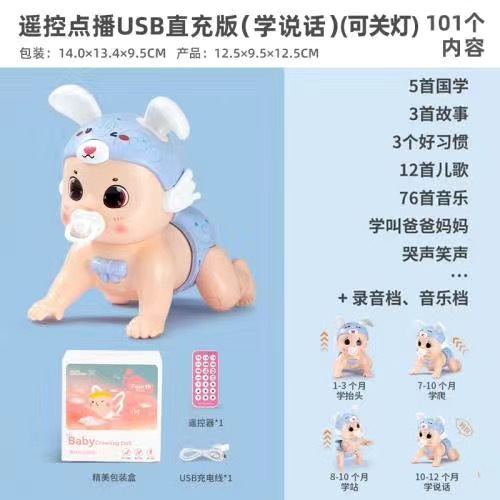 원격 제어 전기 아기 등반 충전 장난감 0-12 개월 열려있는 머리 정보 가이드 아기 말하는 머리는 설 수 있습니다