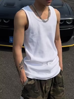미국 스포츠 조끼 남자 여름 높은 탄성 타이트 피트 캐주얼 민소매 양복 조끼 새로운 달리기 피트니스 언더 셔츠스토어 가기