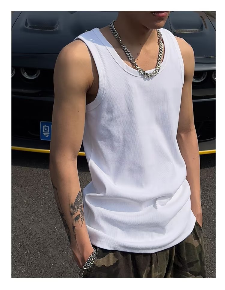 미국 스포츠 조끼 남자 여름 높은 탄성 타이트 피트 캐주얼 민소매 양복 조끼 새로운 달리기 피트니스 언더 셔츠