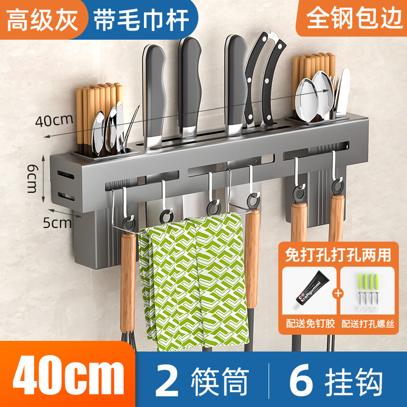 칼 홀더 벽에 장착 된 주방 용품 보관 아티팩트 다기능 보관 랙 야채 나이프 젓가락 걸이 랙 펀치 프리