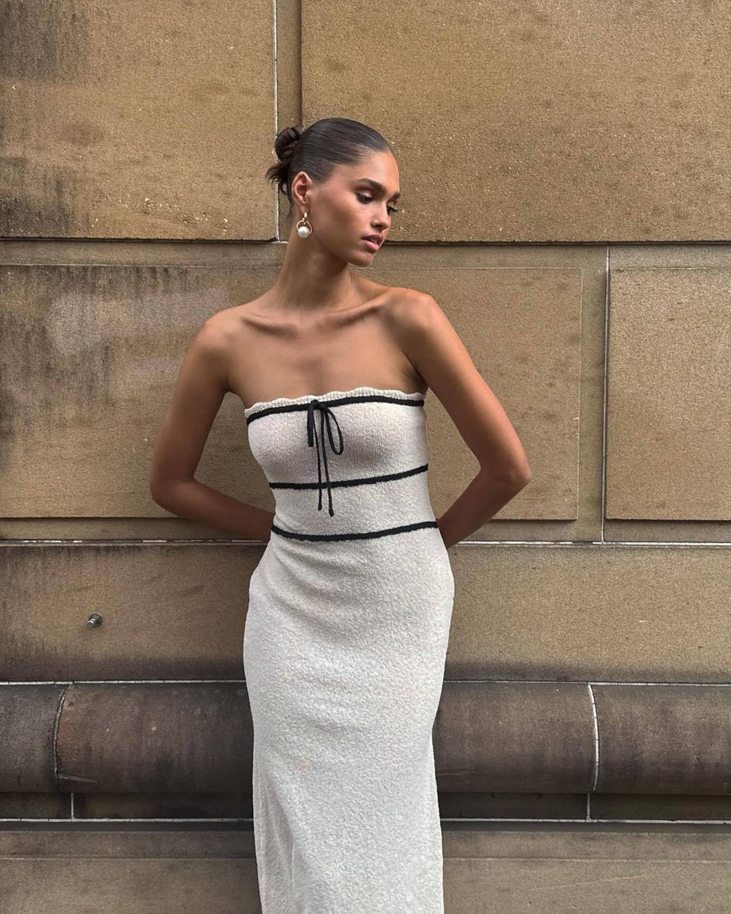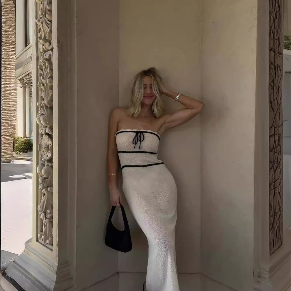 유럽과 미국의 국경 간 무역 여성복 튜브탑 니트 롱 드레스 봄 가을 롱 드레스