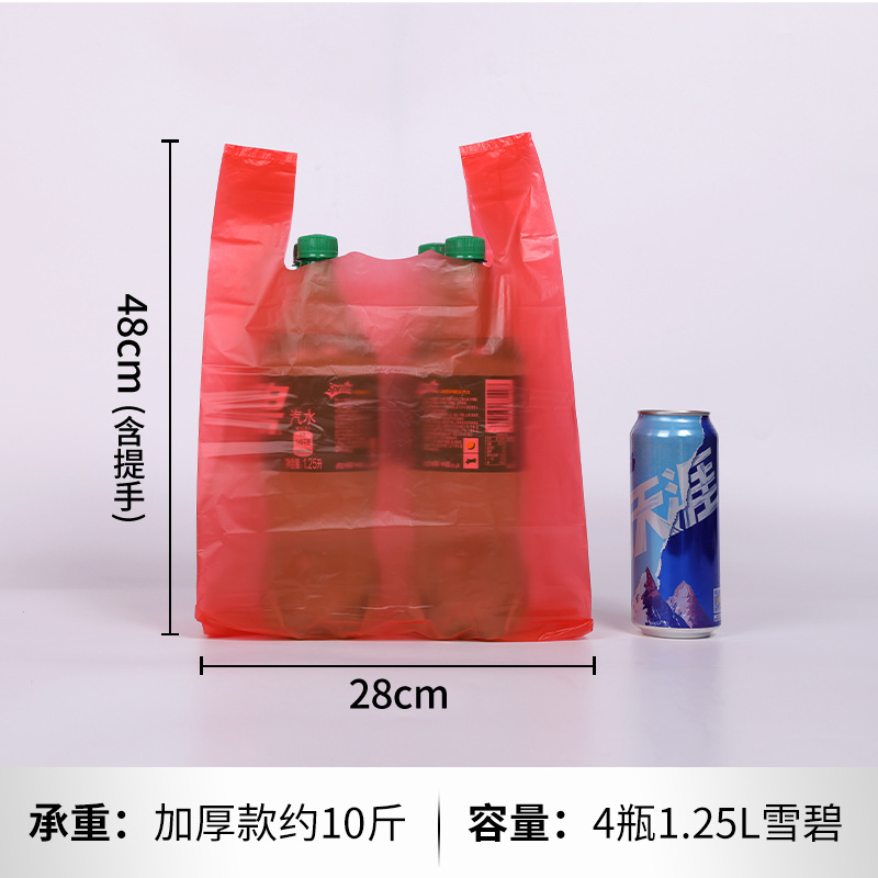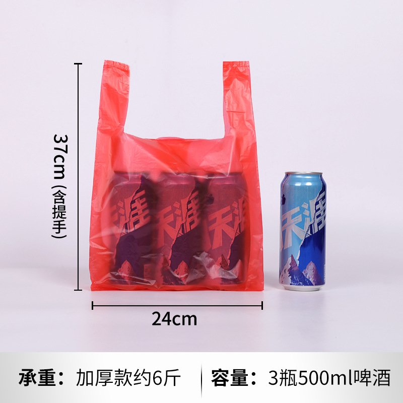 두꺼운 빨간색 비닐 봉투 일회용 포장 핸드백 편의 가방 포장 가방 도매 투명 식품 가방 가방스토어 가기