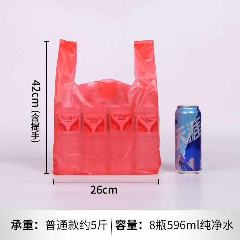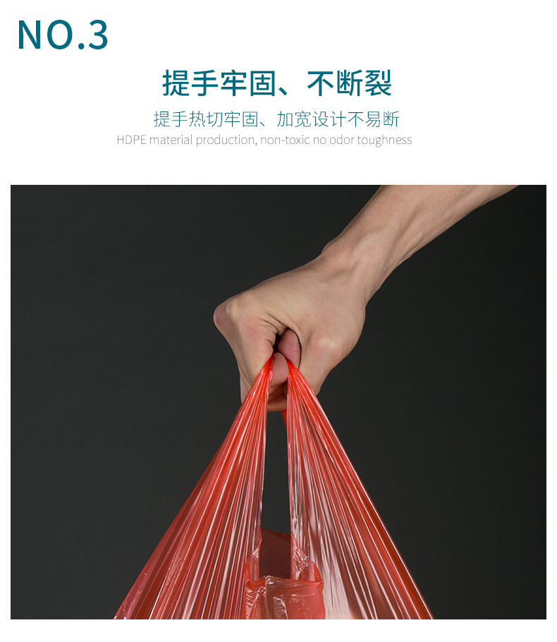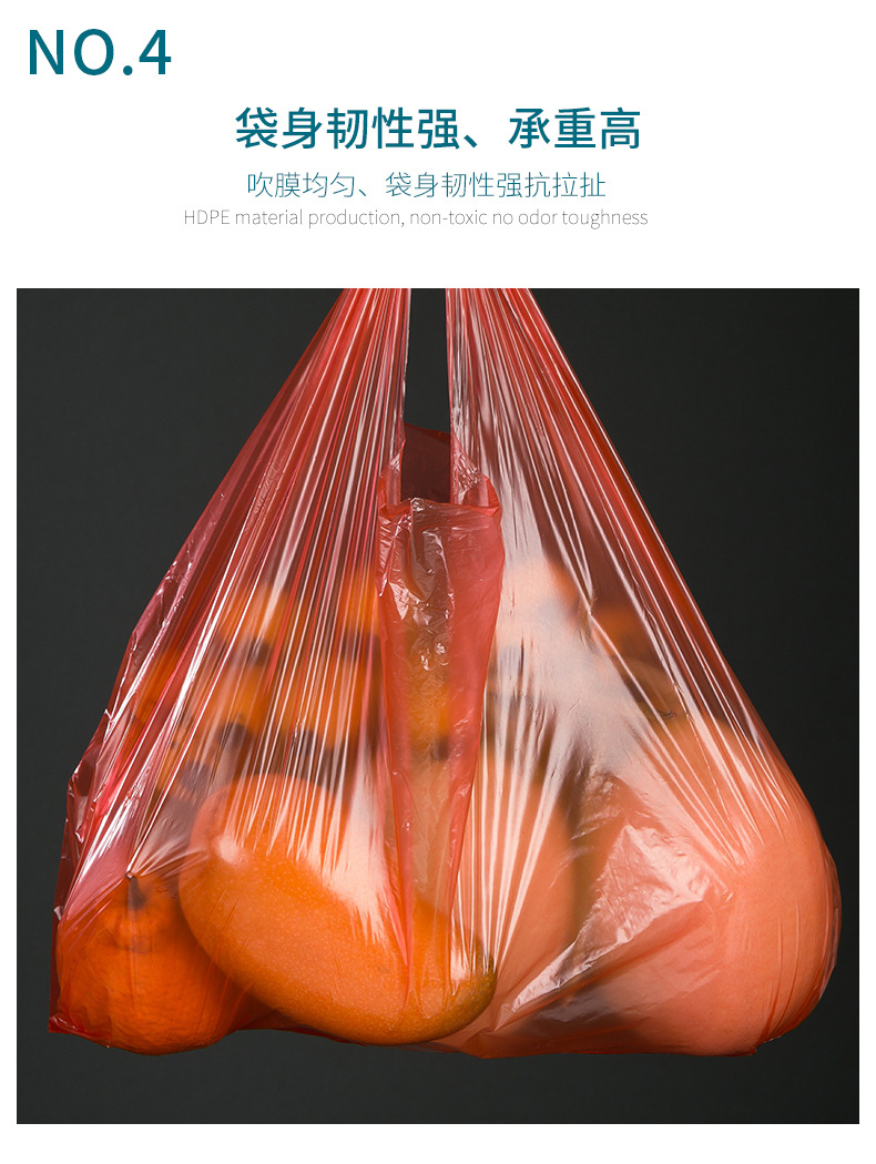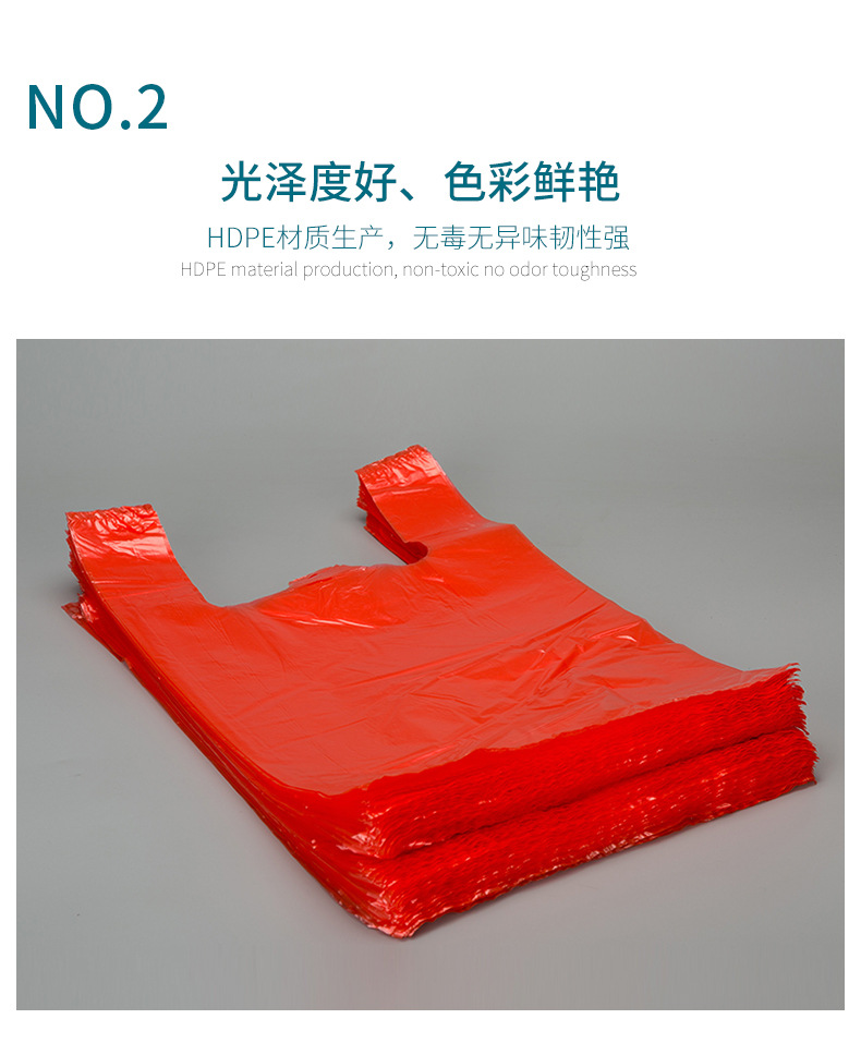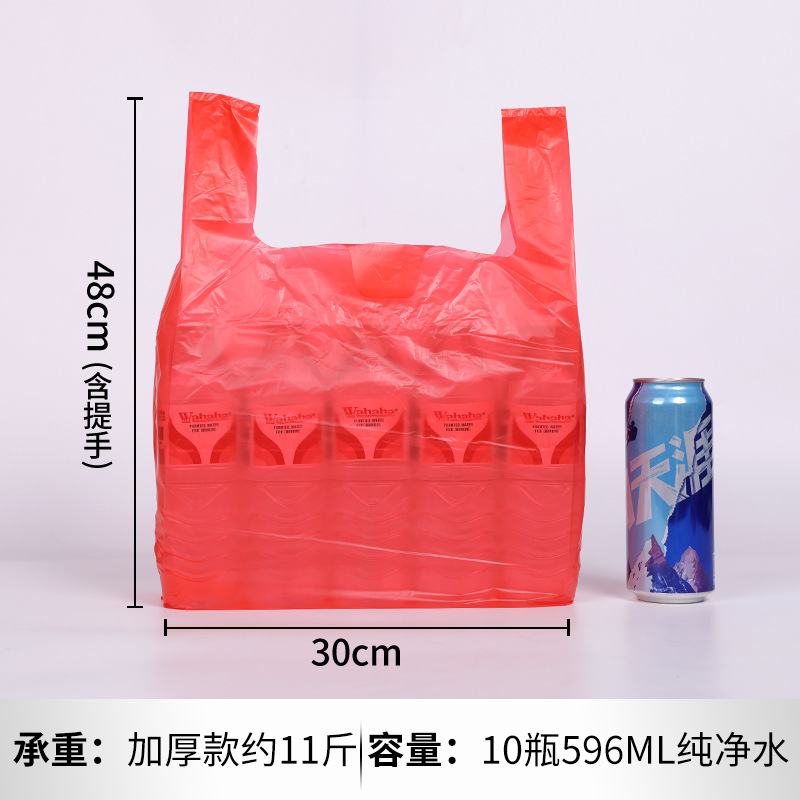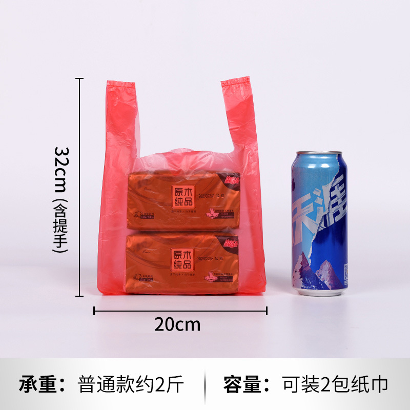 두꺼운 빨간색 비닐 봉투 일회용 포장 핸드백 편의 가방 포장 가방 도매 투명 식품 가방 가방