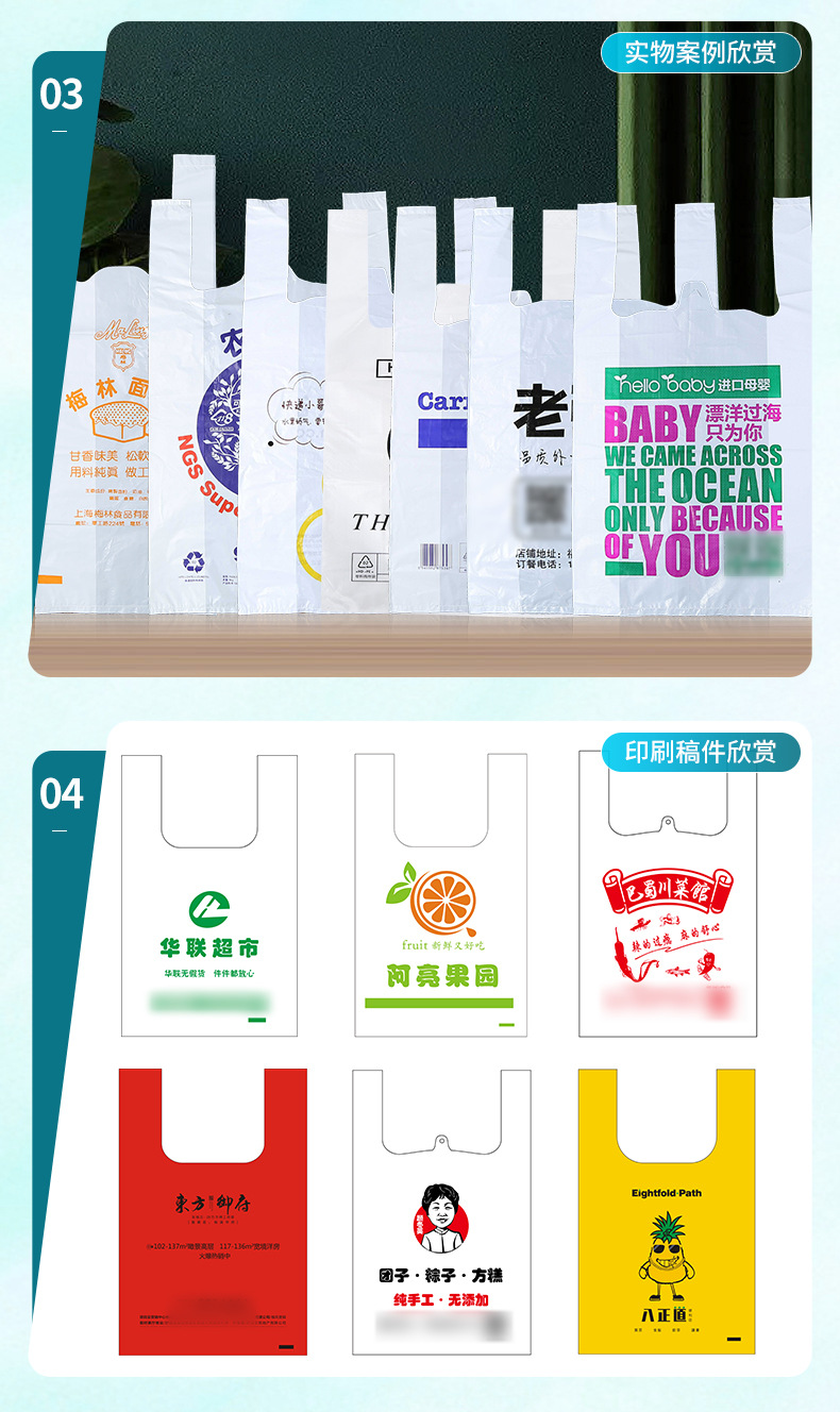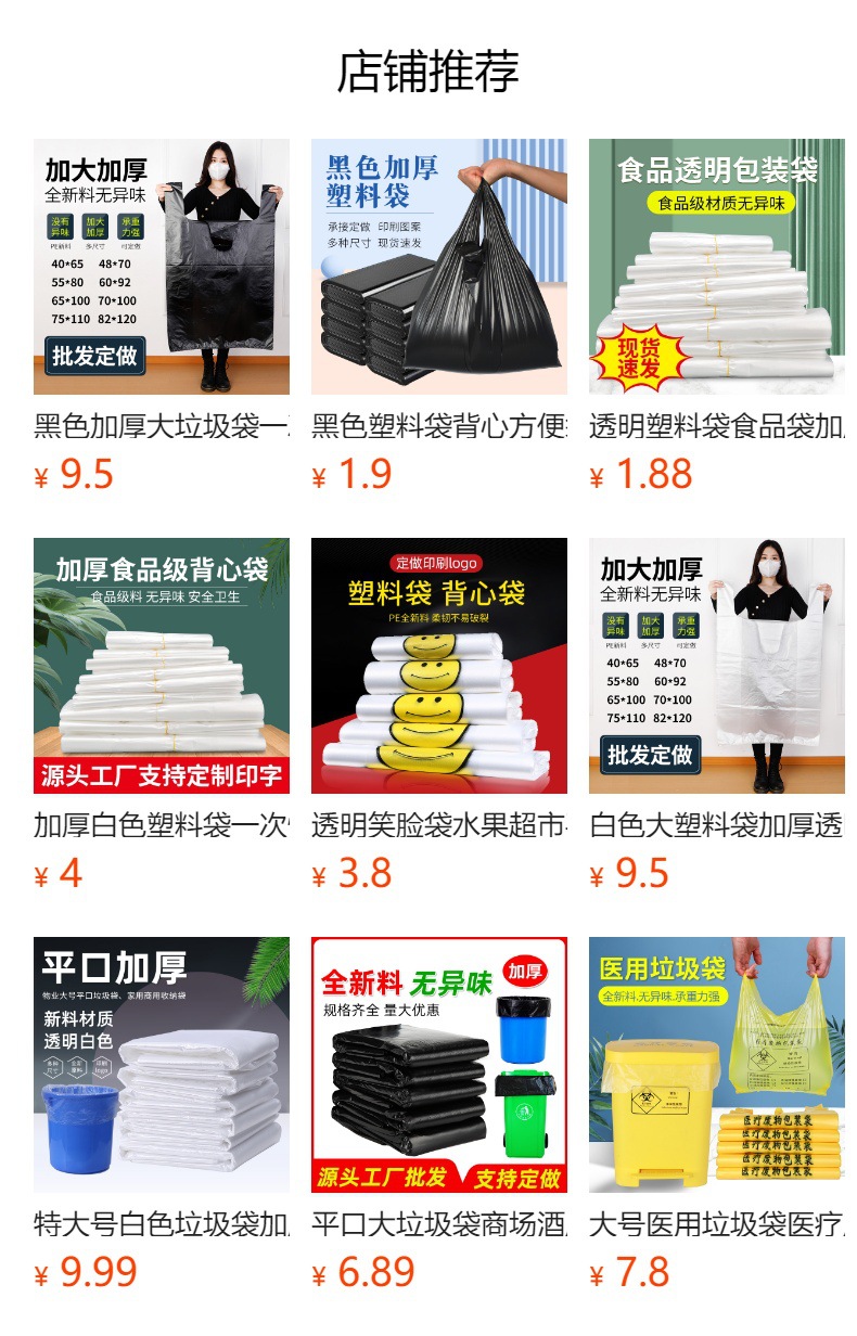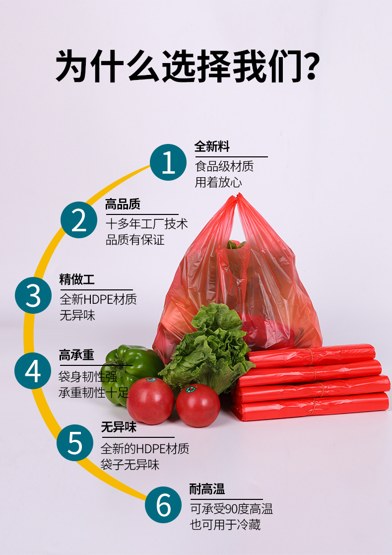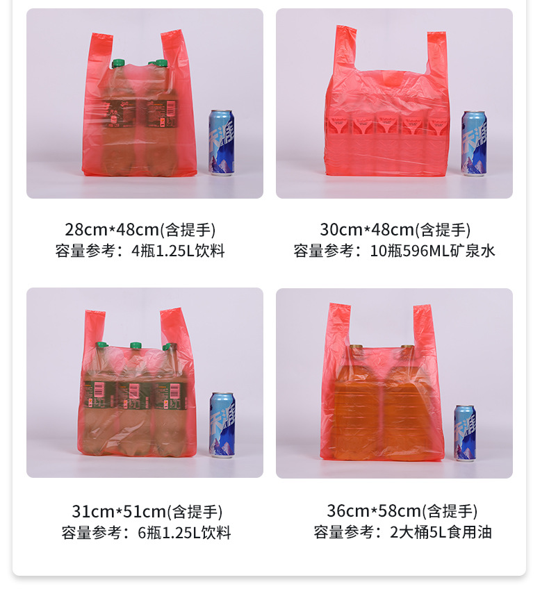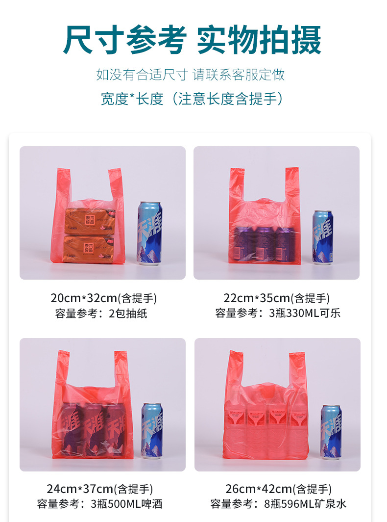 두꺼운 빨간색 비닐 봉투 일회용 포장 핸드백 편의 가방 포장 가방 도매 투명 식품 가방 가방