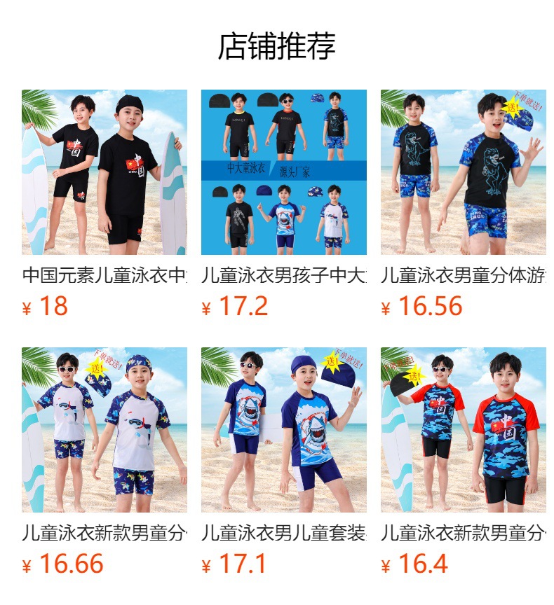 어린이 수영복, 남아 수영복, 중대형 어린이 온천 수영복, 자외선 차단, 속건성 수영복, 도매, 중대형 어린이 수영복스토어 가기