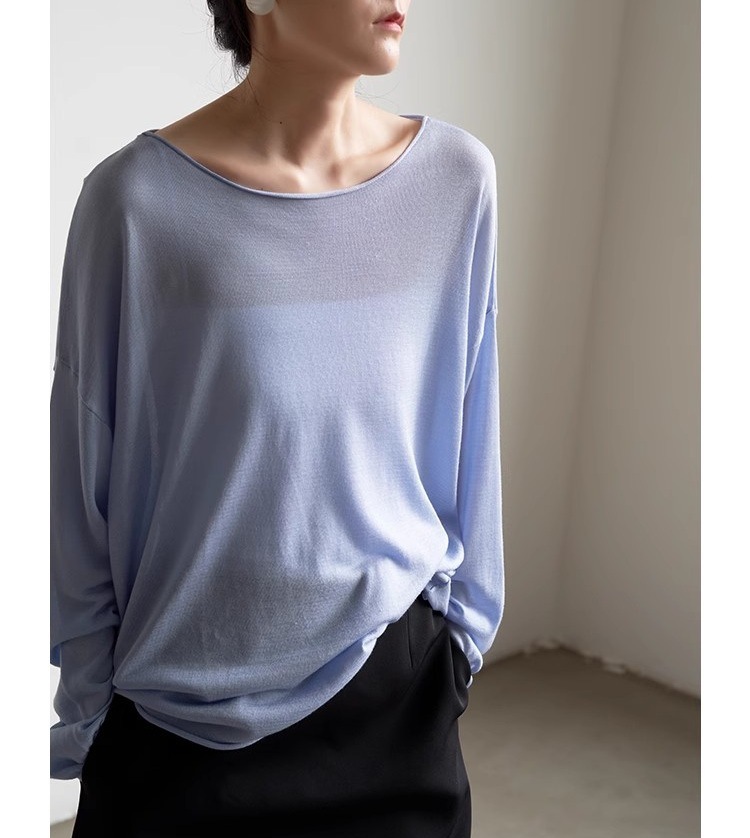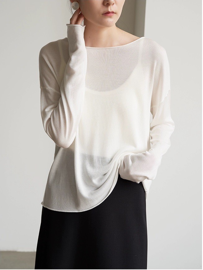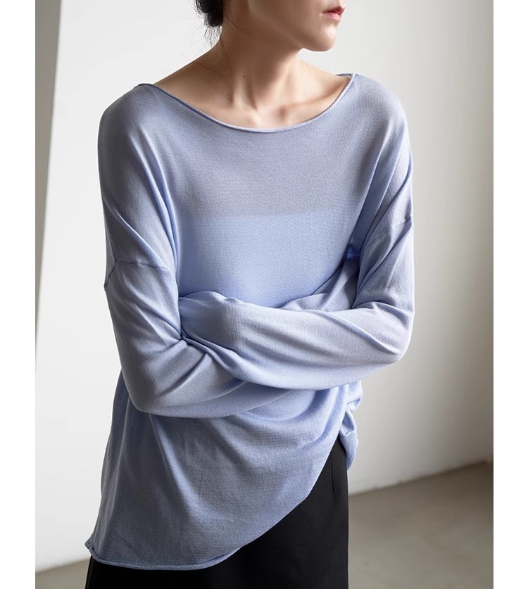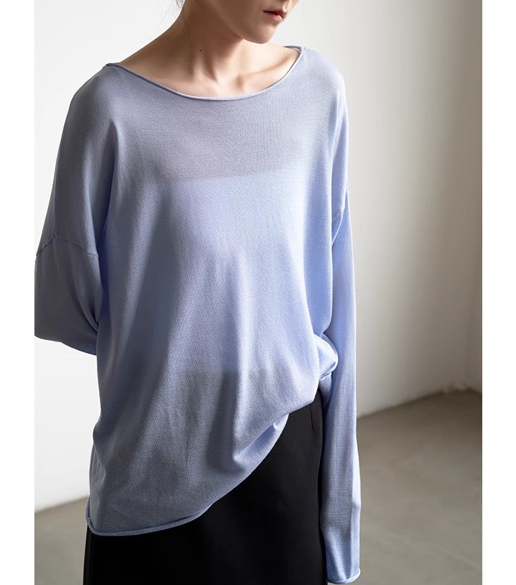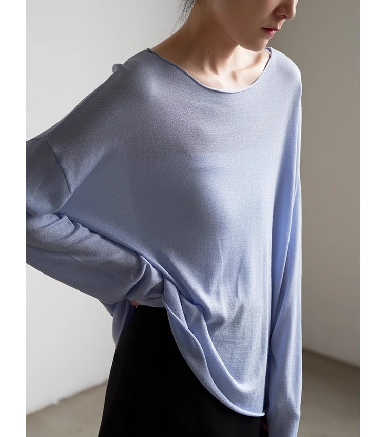 SS STUDIO 편안하고 피부 친화적인 아세테이트 텐셀 라이트 울 스웨터 여성용 긴팔 루즈 블라우스 자외선 차단 탑스토어 가기