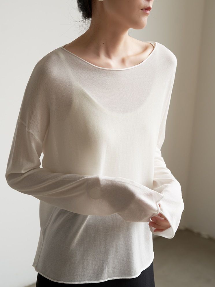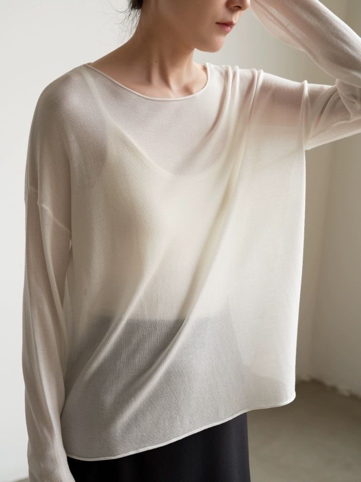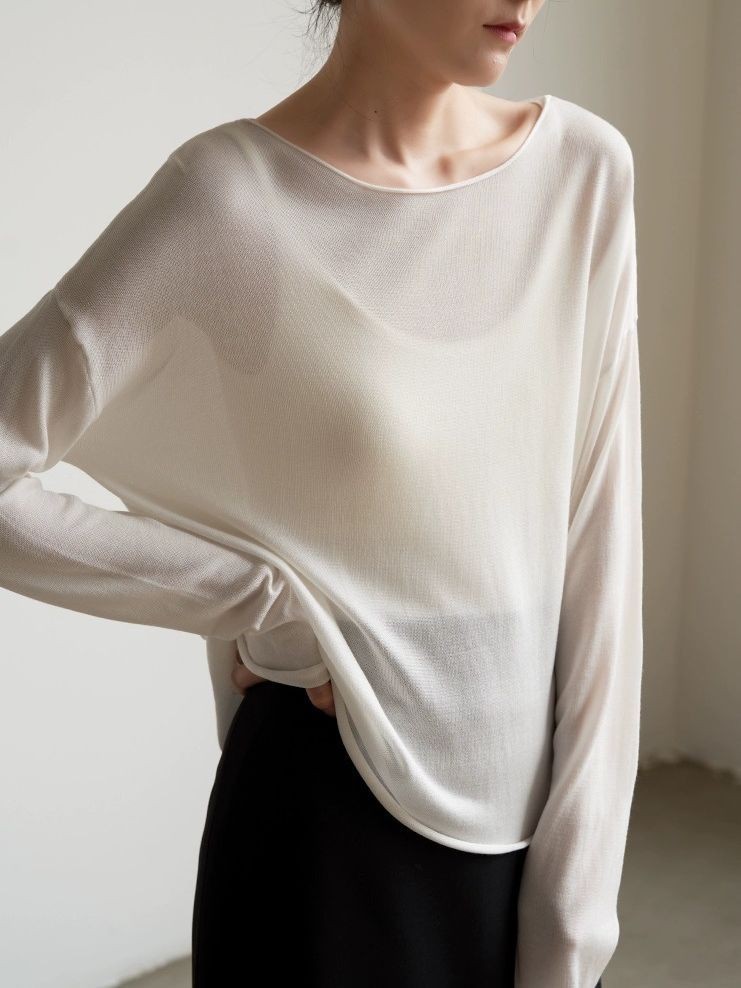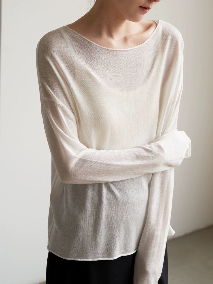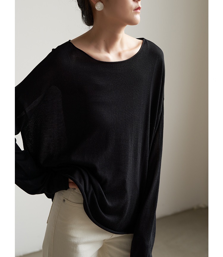 SS STUDIO 편안하고 피부 친화적인 아세테이트 텐셀 라이트 울 스웨터 여성용 긴팔 루즈 블라우스 자외선 차단 탑스토어 가기