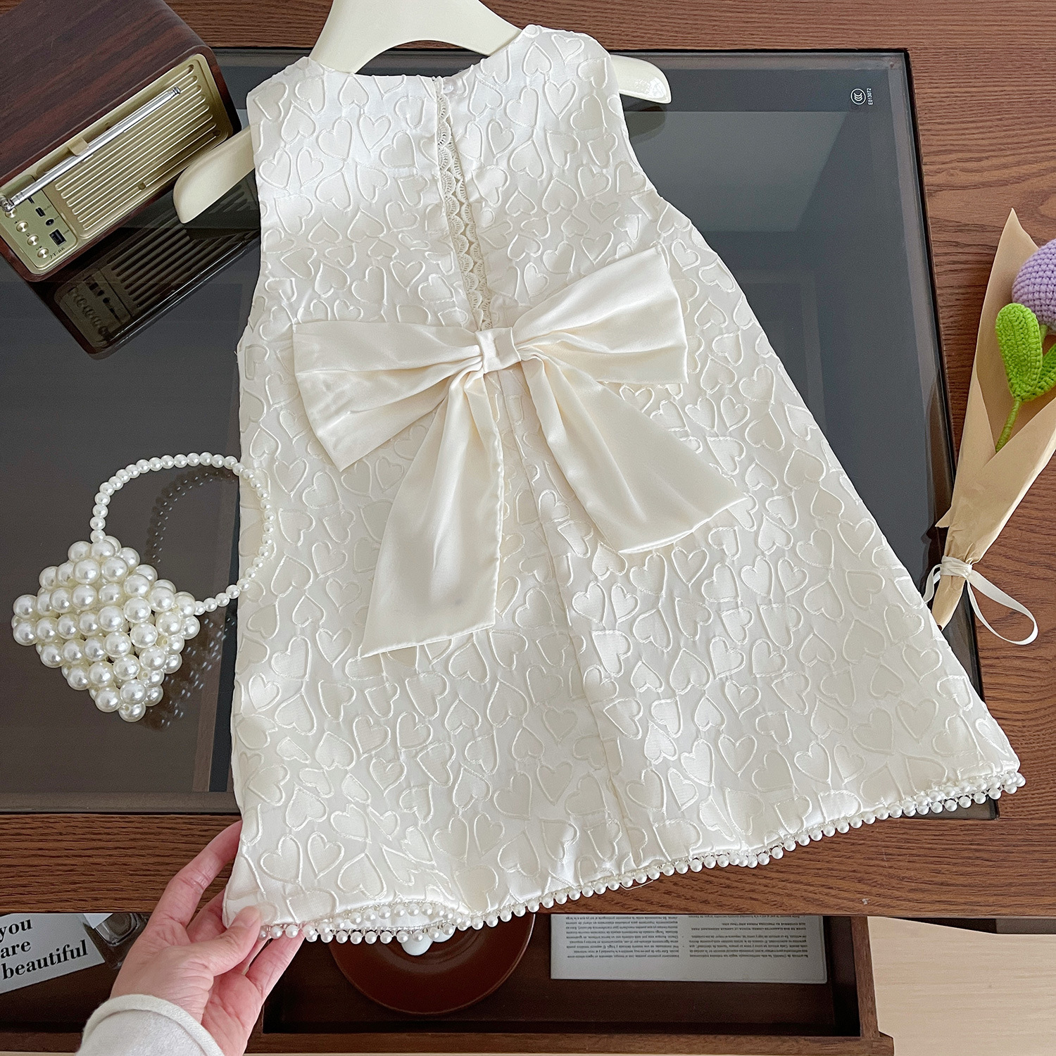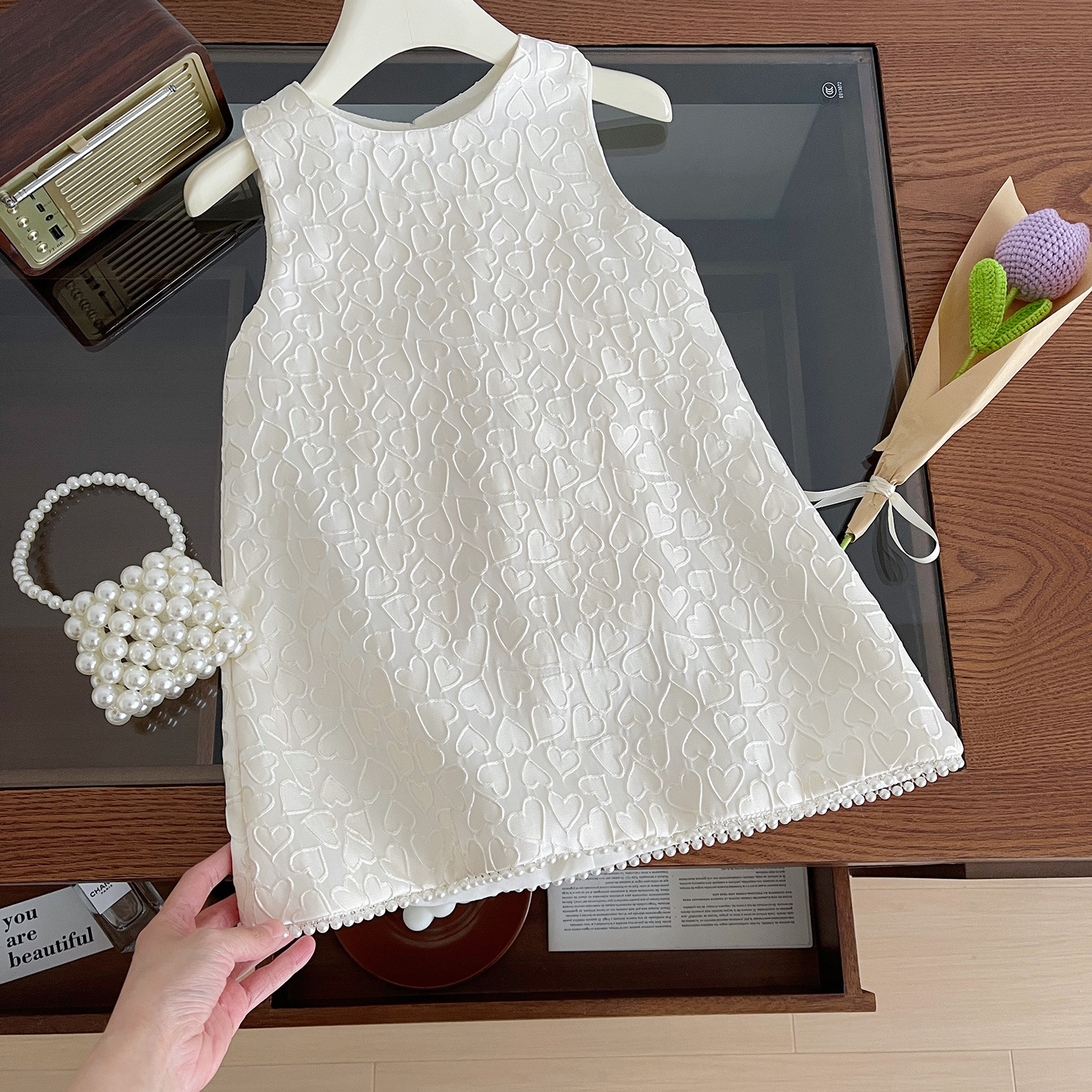 소녀 공주 원피스 2024 여름 새로운 한국식 어린이 민소매 활 진주 원피스 국경 간 배달